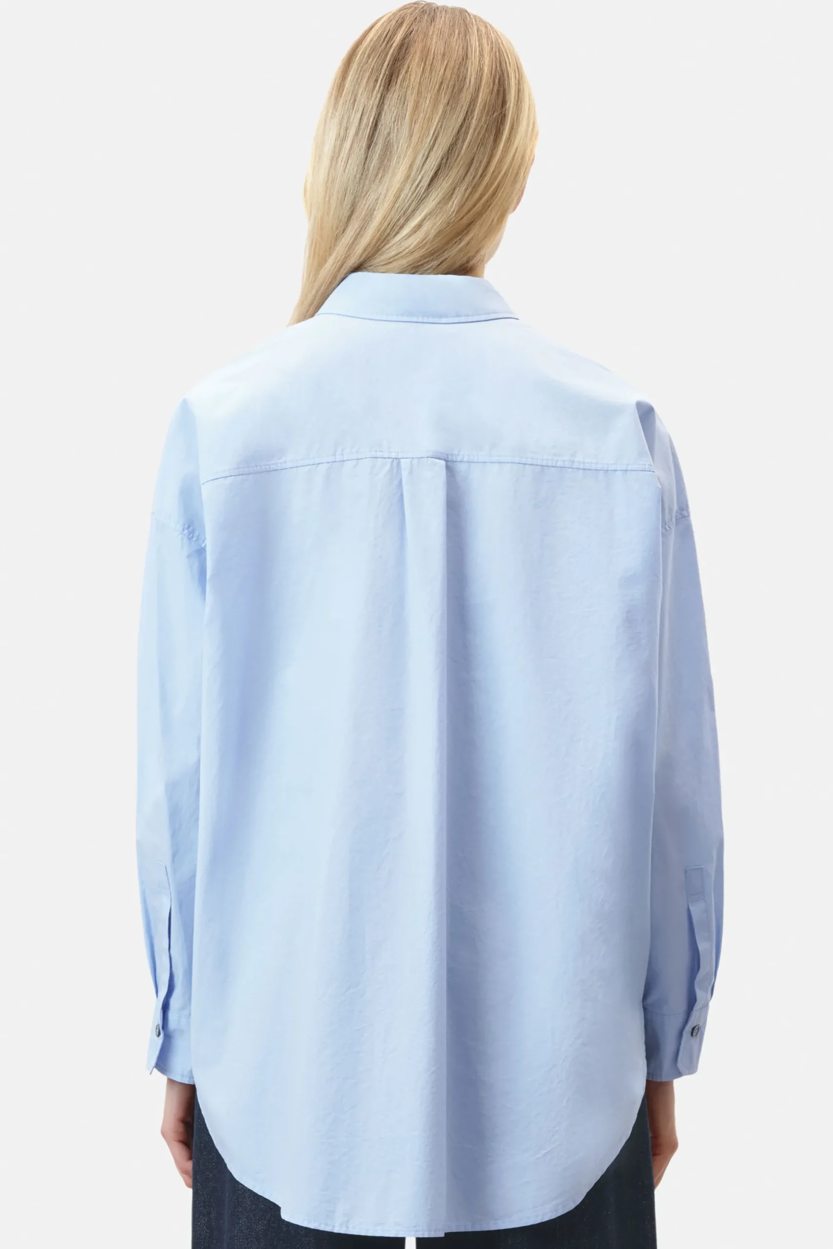 De klassieke AAKE blouse heeft een overhemdkraag, opgestikte borstzak en zijn oversized pasvorm.AAKE is gemaakt van klassieke losvallende popeline.