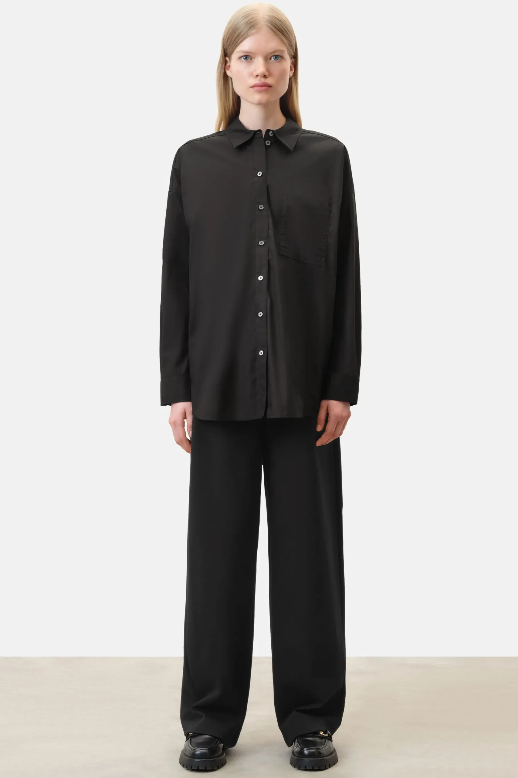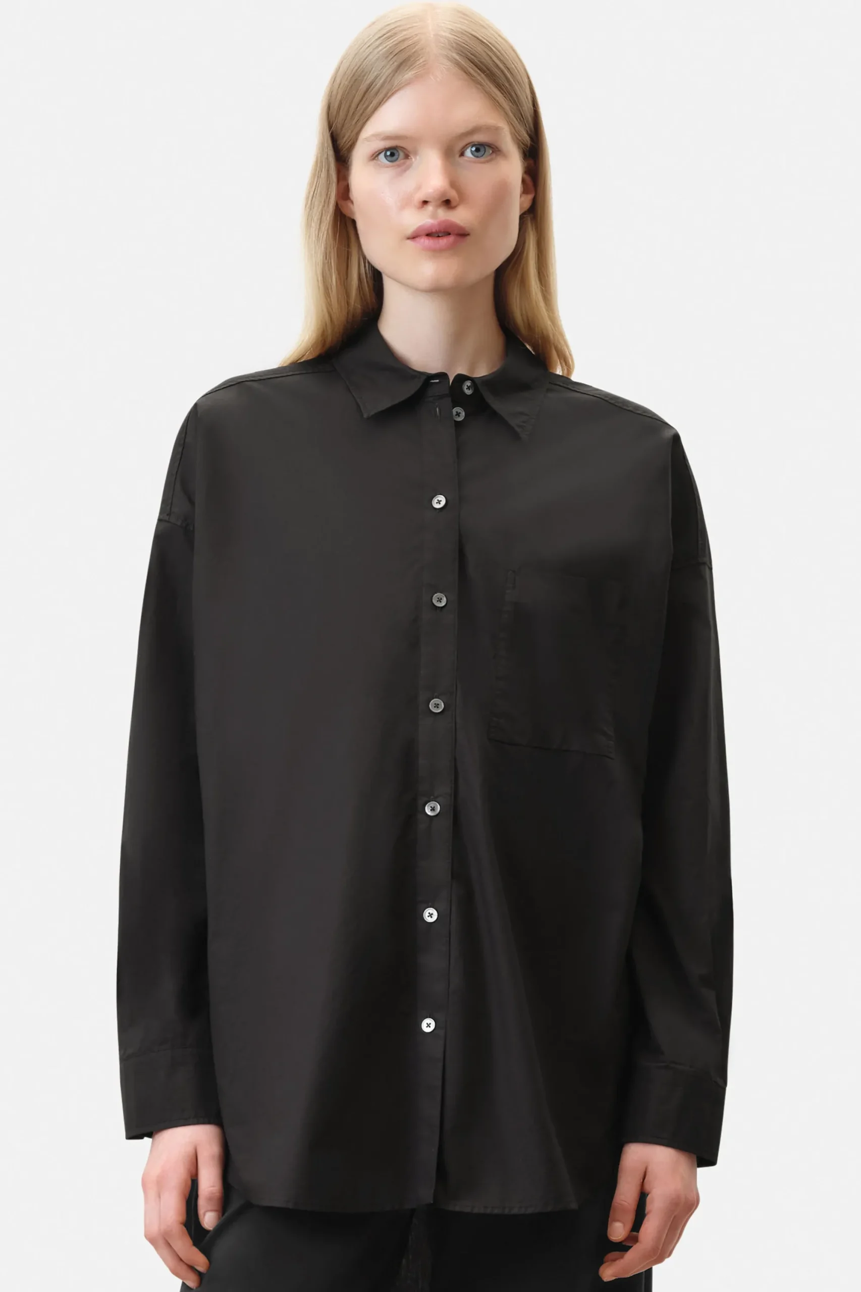 De klassieke AAKE blouse is voorzien van een overhemdkraag, opgestikte borstzak en zijn oversized pasvorm.AAKE is gemaakt van klassieke losvallende poplin.