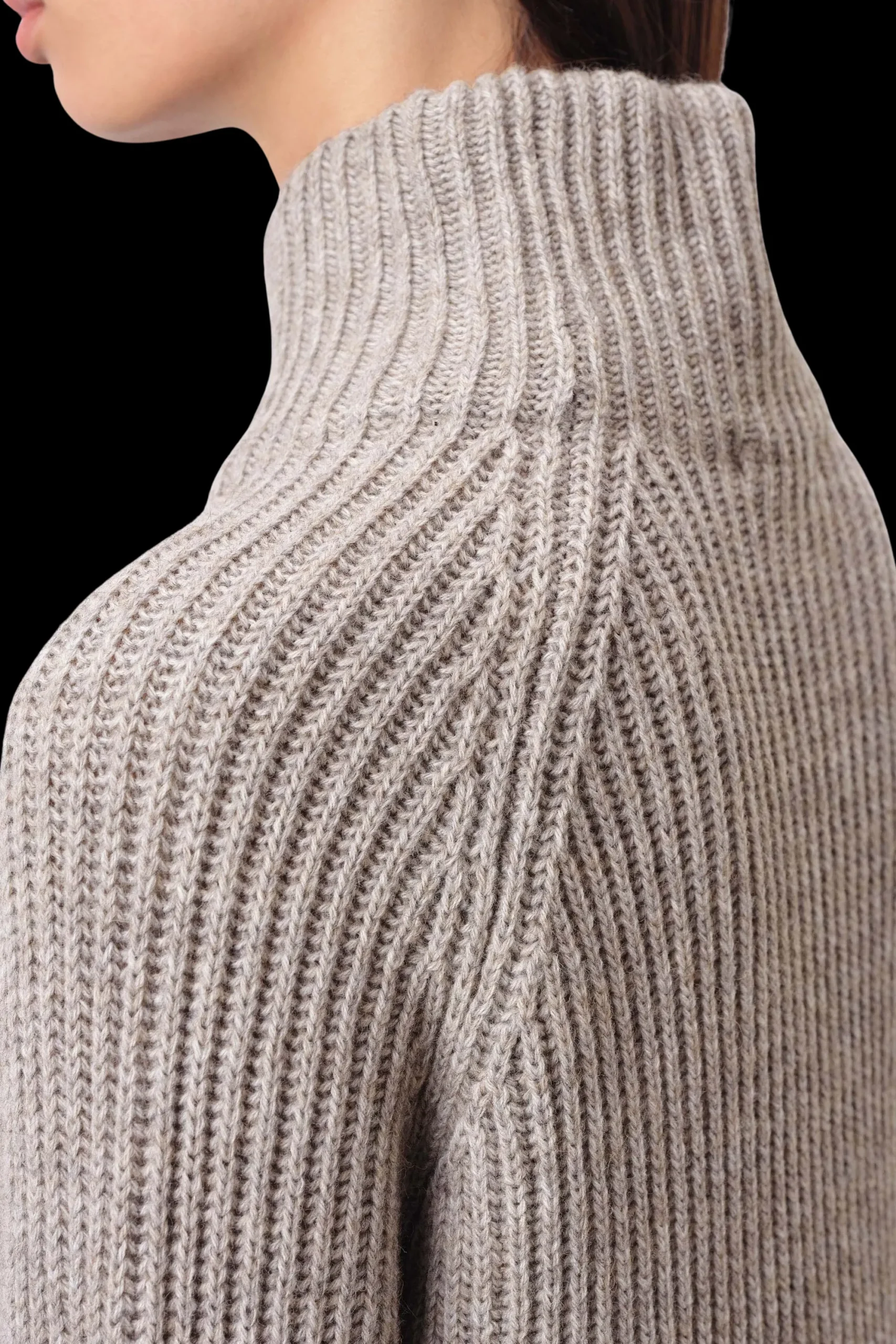 De volumineuze opstaande kraag maakt van ARWEN je betrouwbare metgezel op koude dagen. De raglanmouwen en rechte pasvorm maken het ook zeer comfortabel om te dragen. Gemaakt van ons kenmerkende wol-alpacagaren voor een bijzonder behaaglijk gevoel.