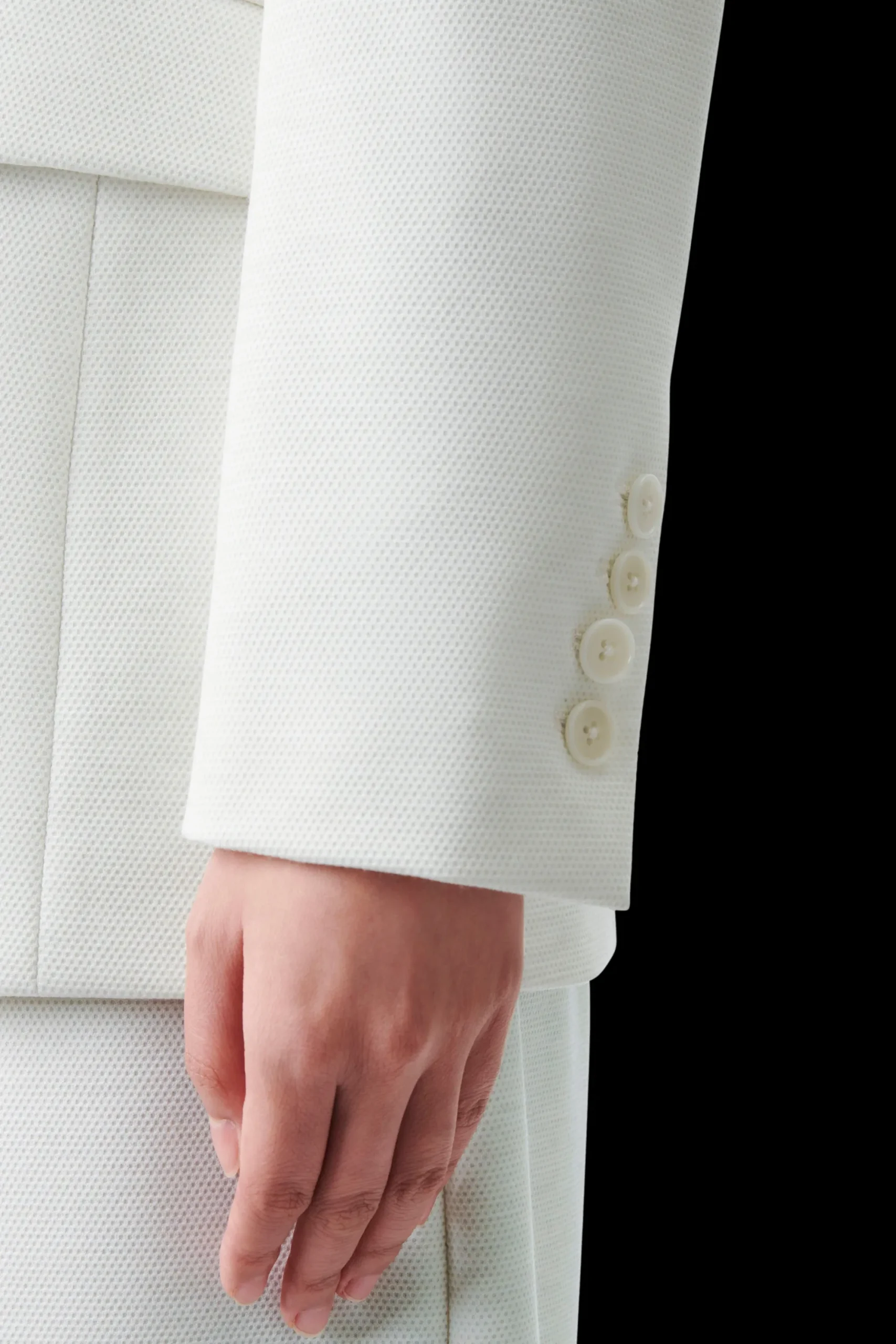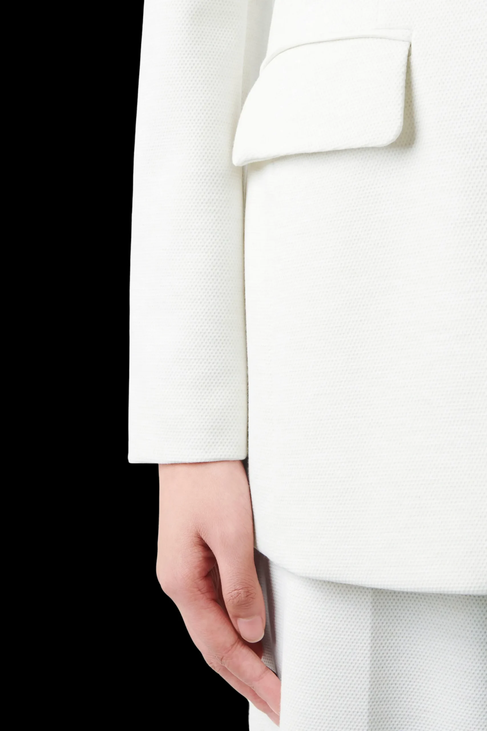 ATLIN_2 is een klassieke blazer met één knoop. De coupenaden zorgen voor een elegant silhouet en combineren dit met klassieke kleermakerselementen zoals de split aan de achterkant en de klepzakken. Gemaakt van jersey met een 3D-textuur.