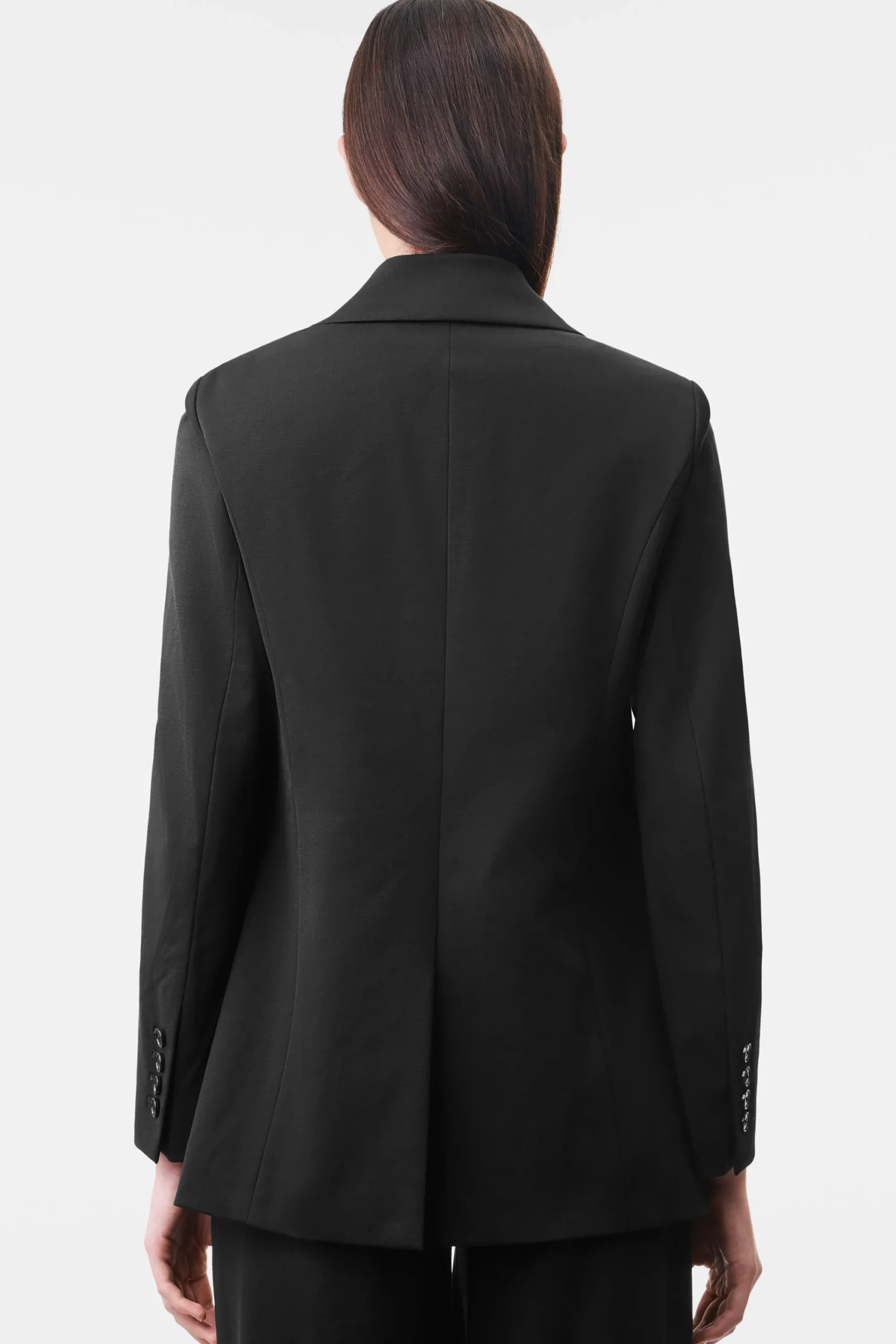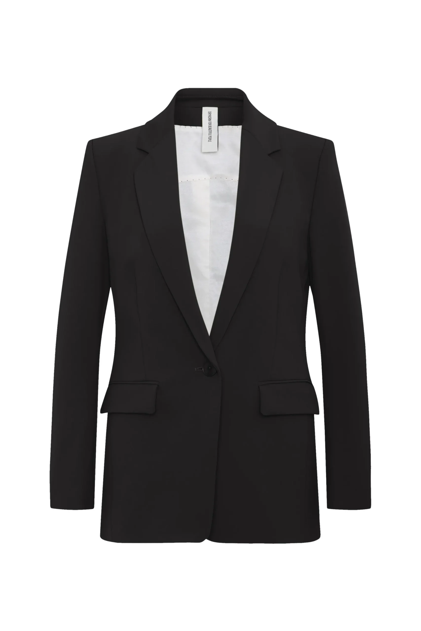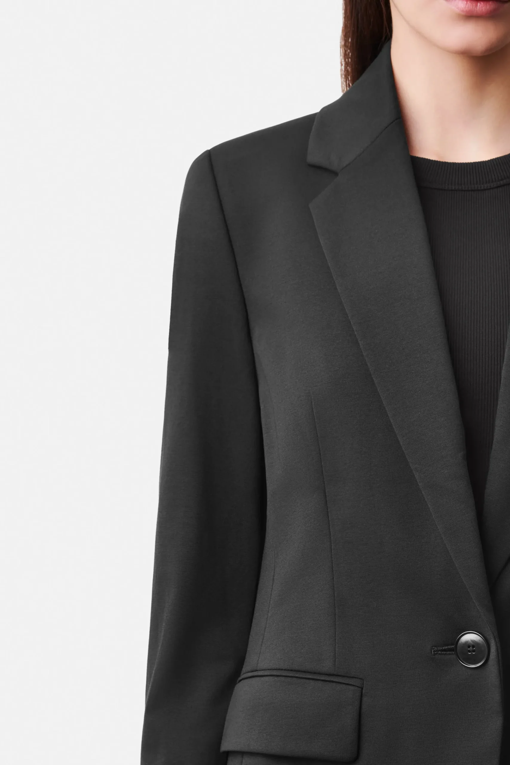 ATLIN_2 is een klassieke blazer met één knoop. De coupenaden zorgen voor een elegant silhouet en combineren dit met klassieke kleermakerselementen zoals de split aan de achterkant en de klepzakken. Gemaakt van Punto Milano-jersey.