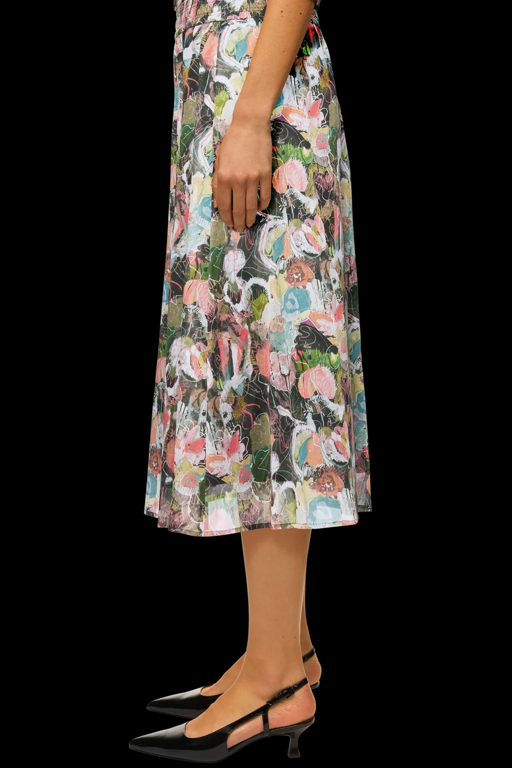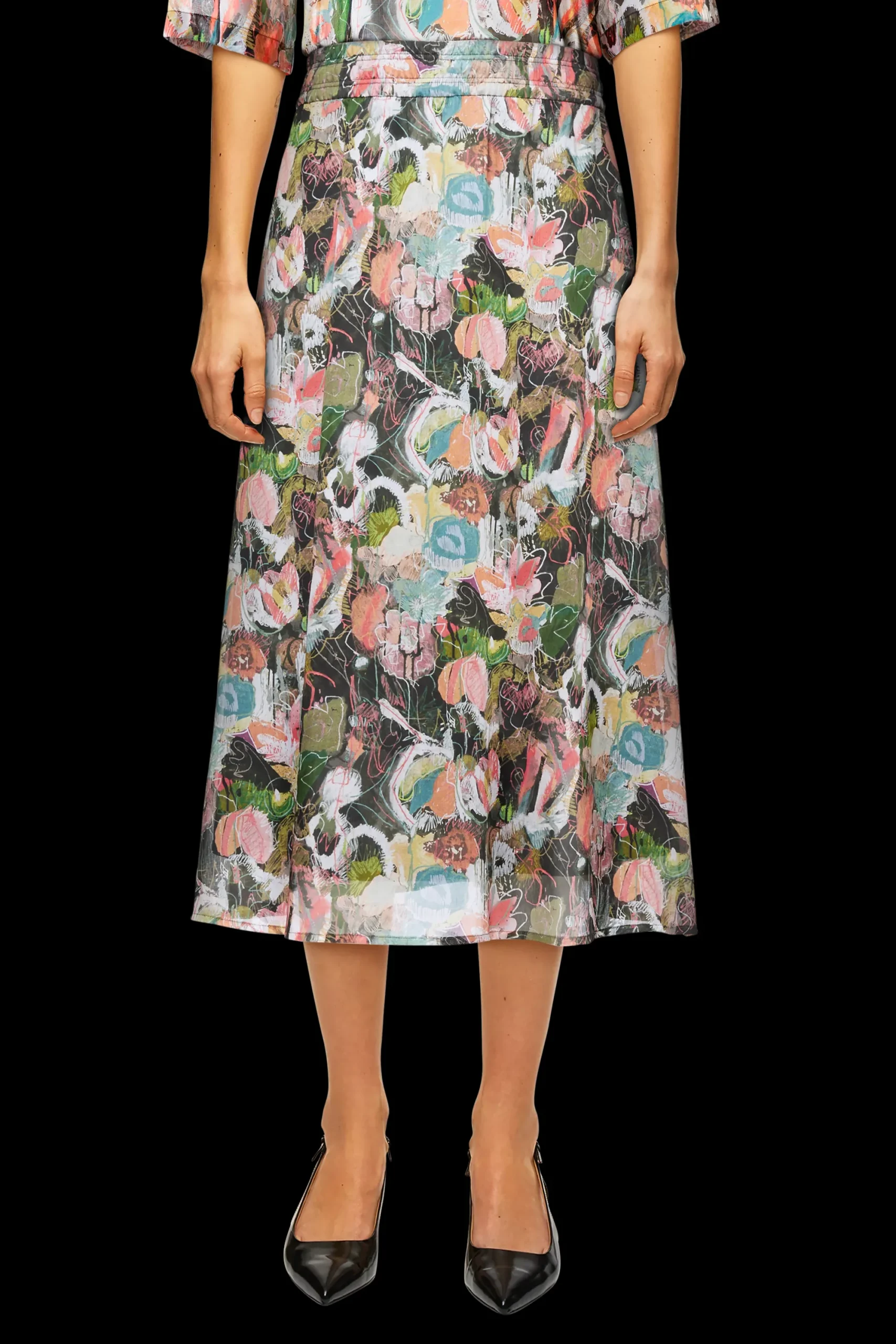 ATTRA is een uitlopende rok in midilengte met een elastische tailleband en de hoogwaardige bedrukte katoenen voile zorgt voor een aangenaam gevoel overdag.