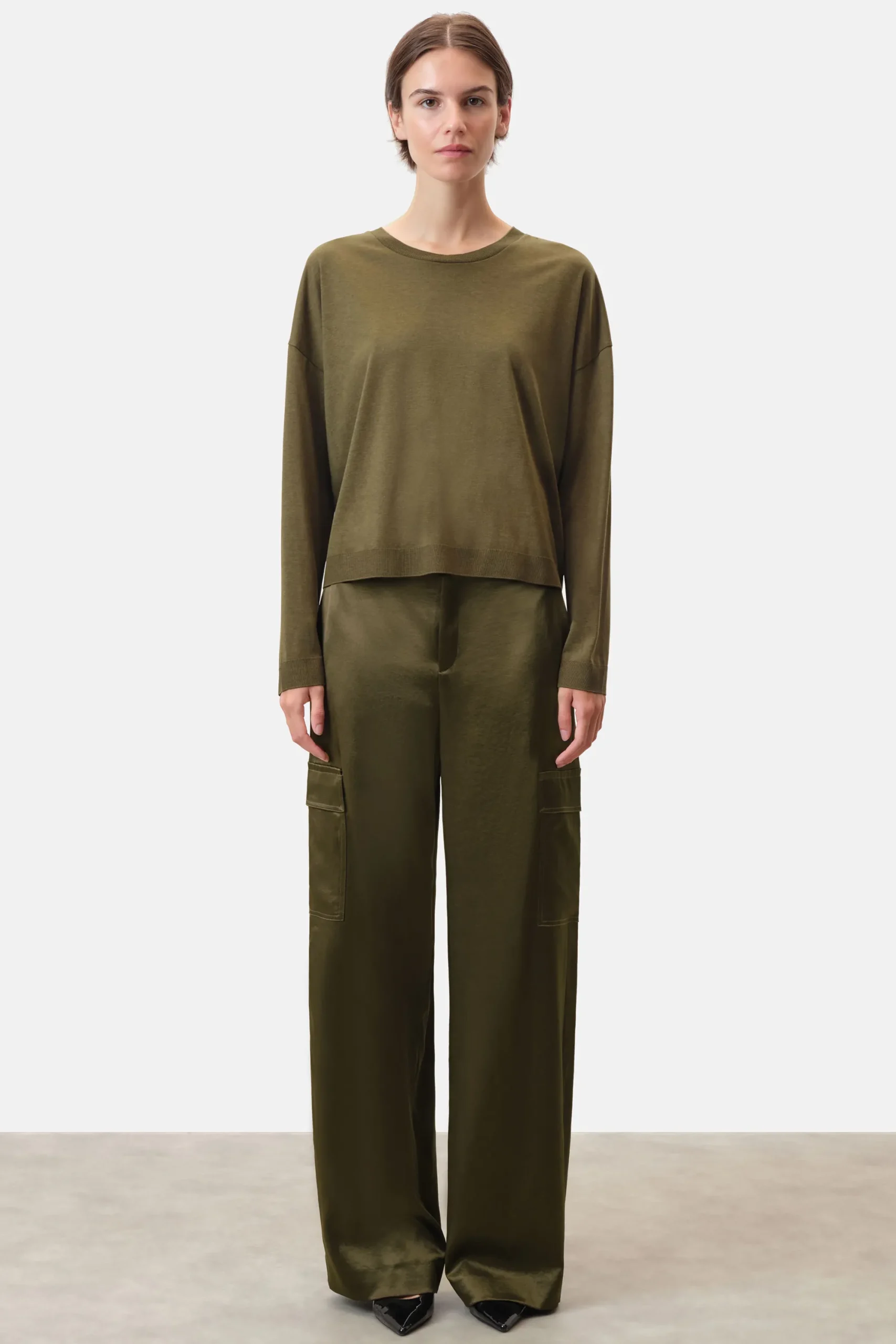 De casual longsleeve CESIDIE heeft een fijngebreide look, overlappende schouders en een ronde hals. CESIDIE is gemaakt van hoogwaardige Lyocell-katoenen jersey in een gebreide look.