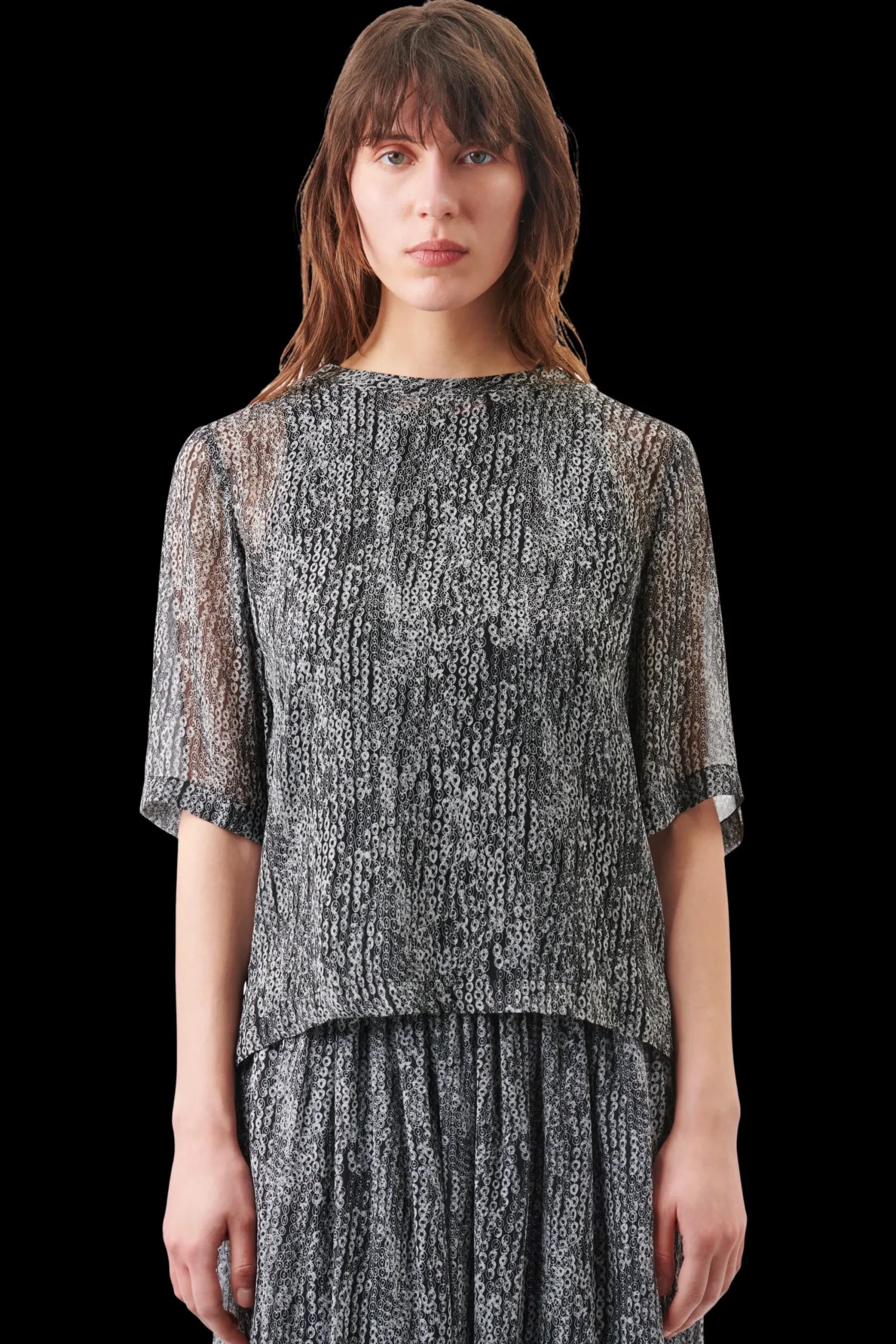 DIEDRA is een overhemdblouse in een klassieke pasvorm. Het heeft korte mouwen en een ronde halslijn en de hoogwaardige, vloeiende viscosecrêpe zorgt voor een aangenaam gevoel overdag.