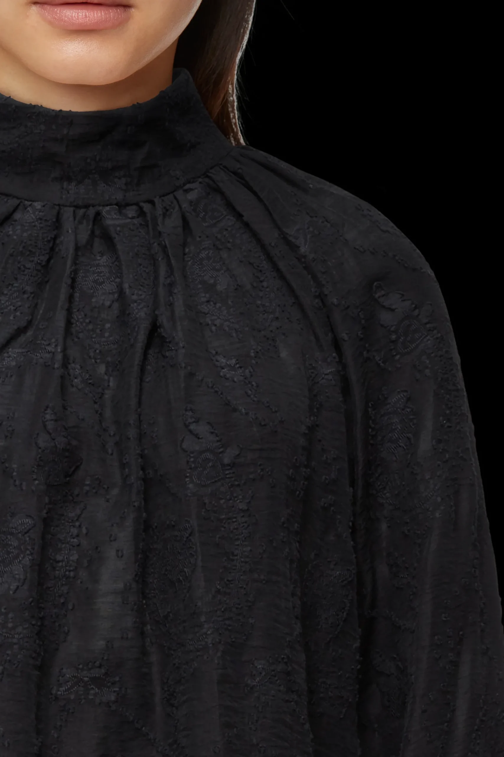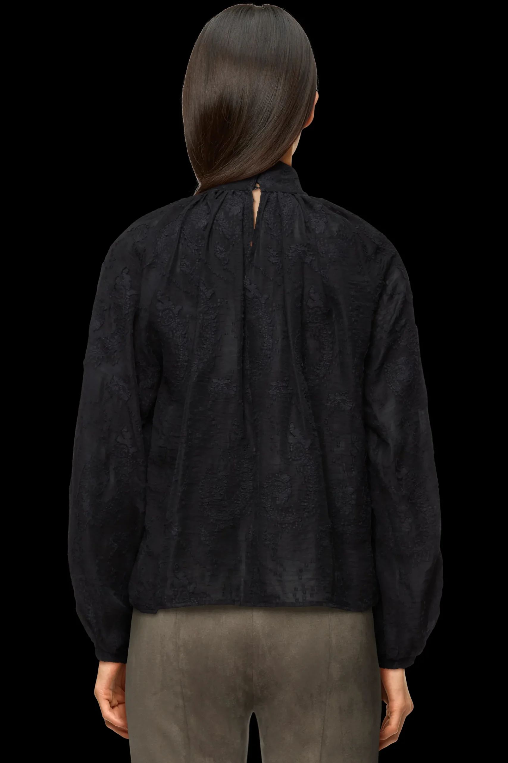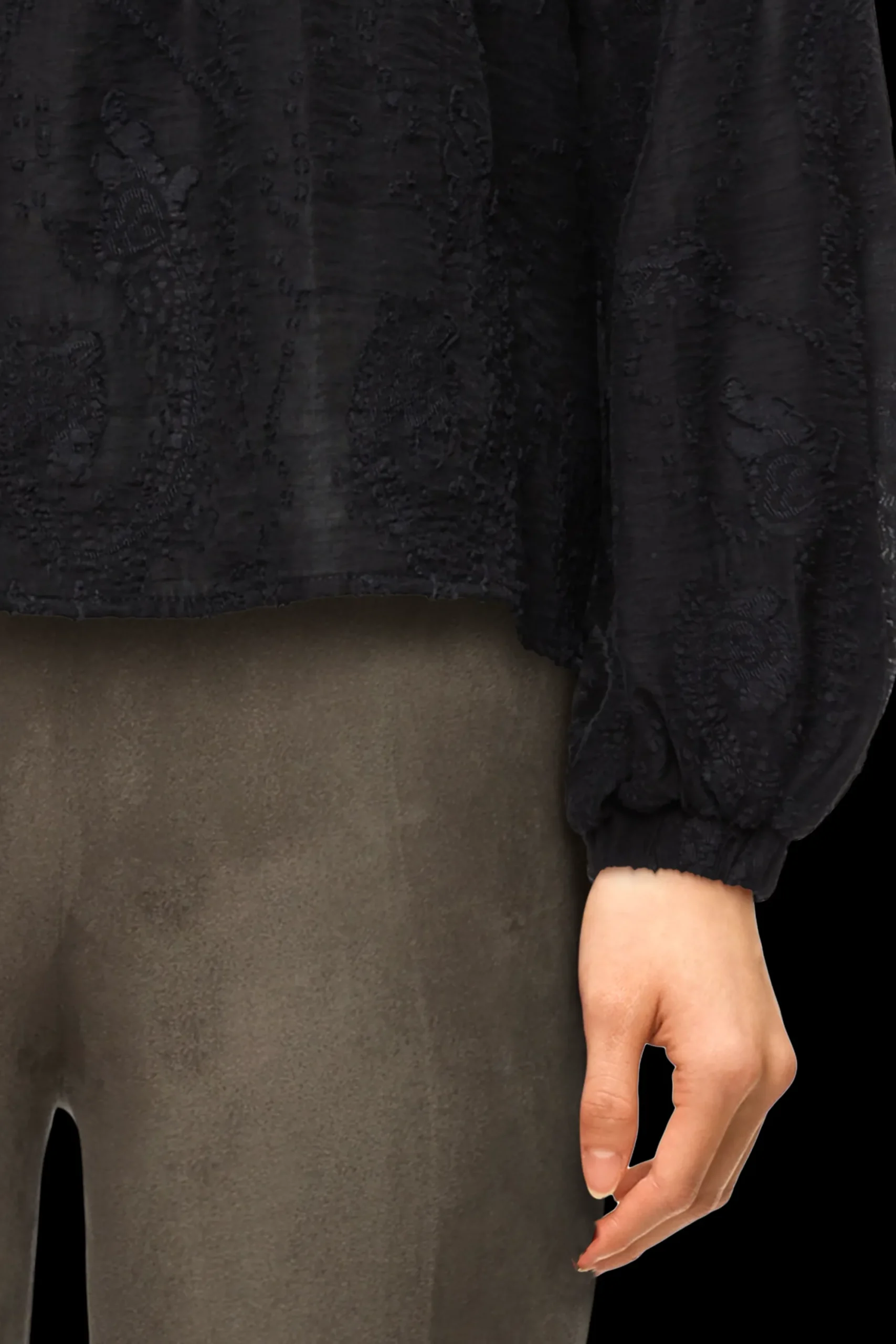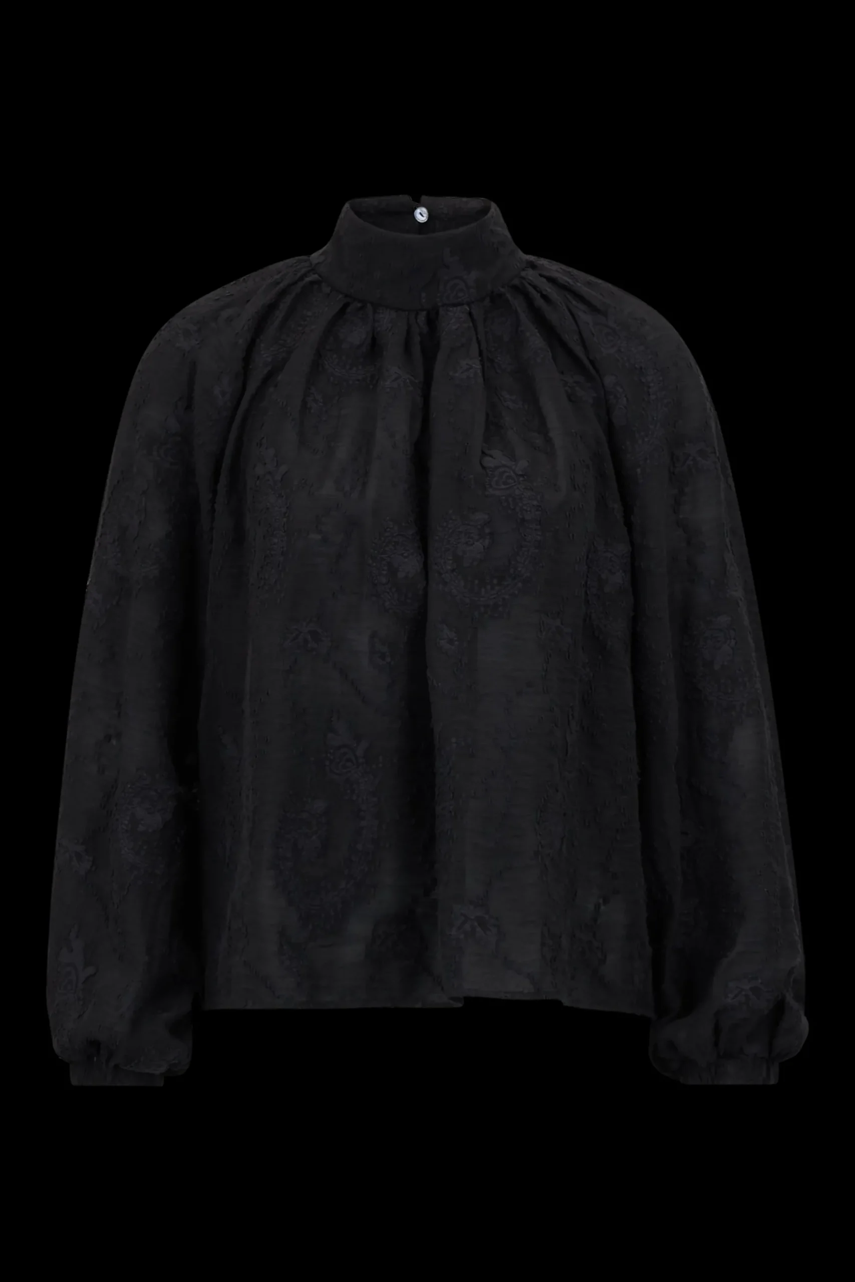 DUMONDA is een moderne boho blouse met een opstaande kraag en manchetten aan de mouwen.