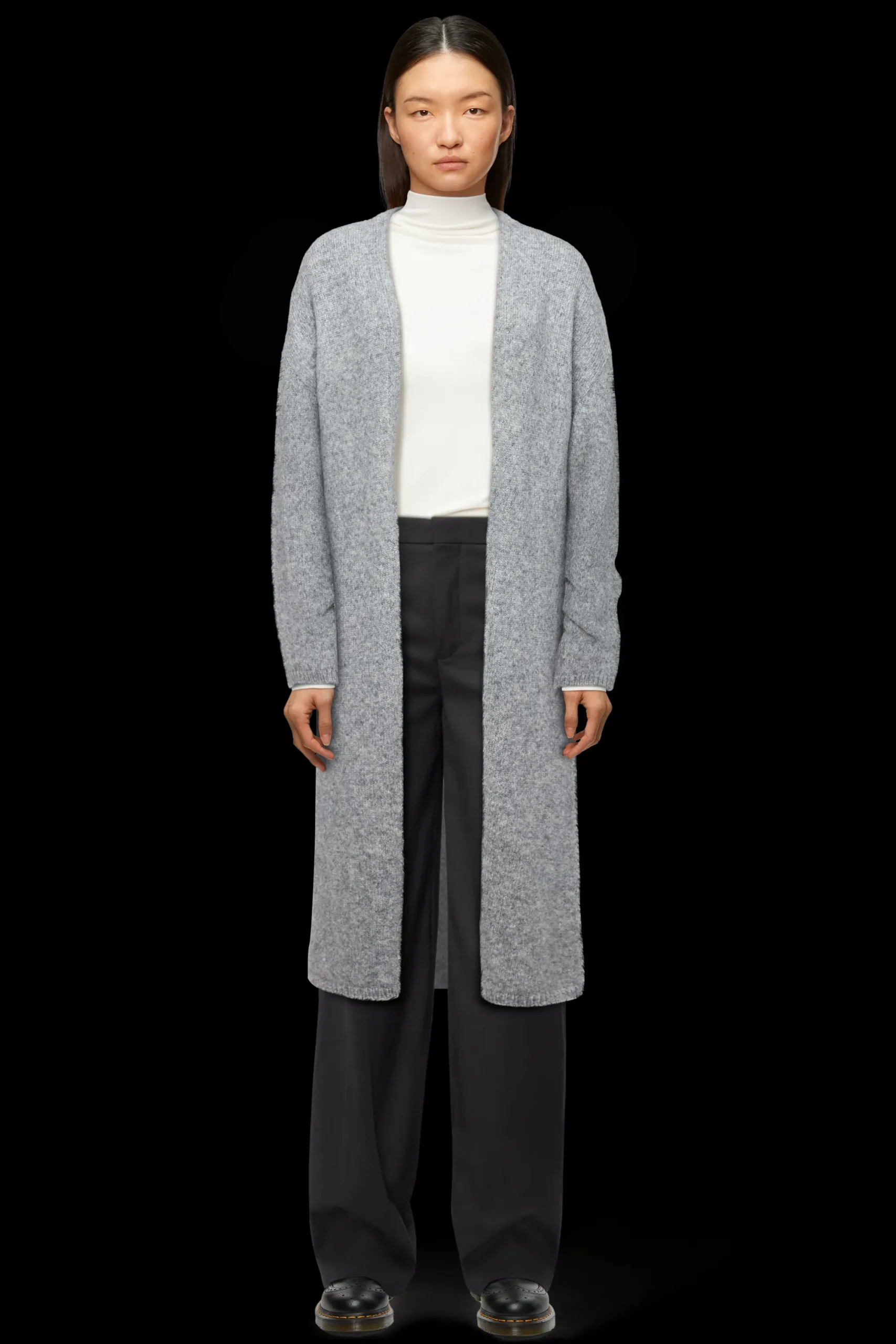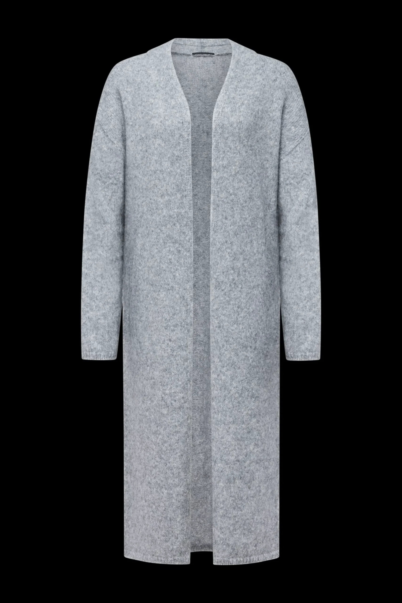 FABEANY is een gebreide jas zonder rits in midilengte en relaxte pasvorm.