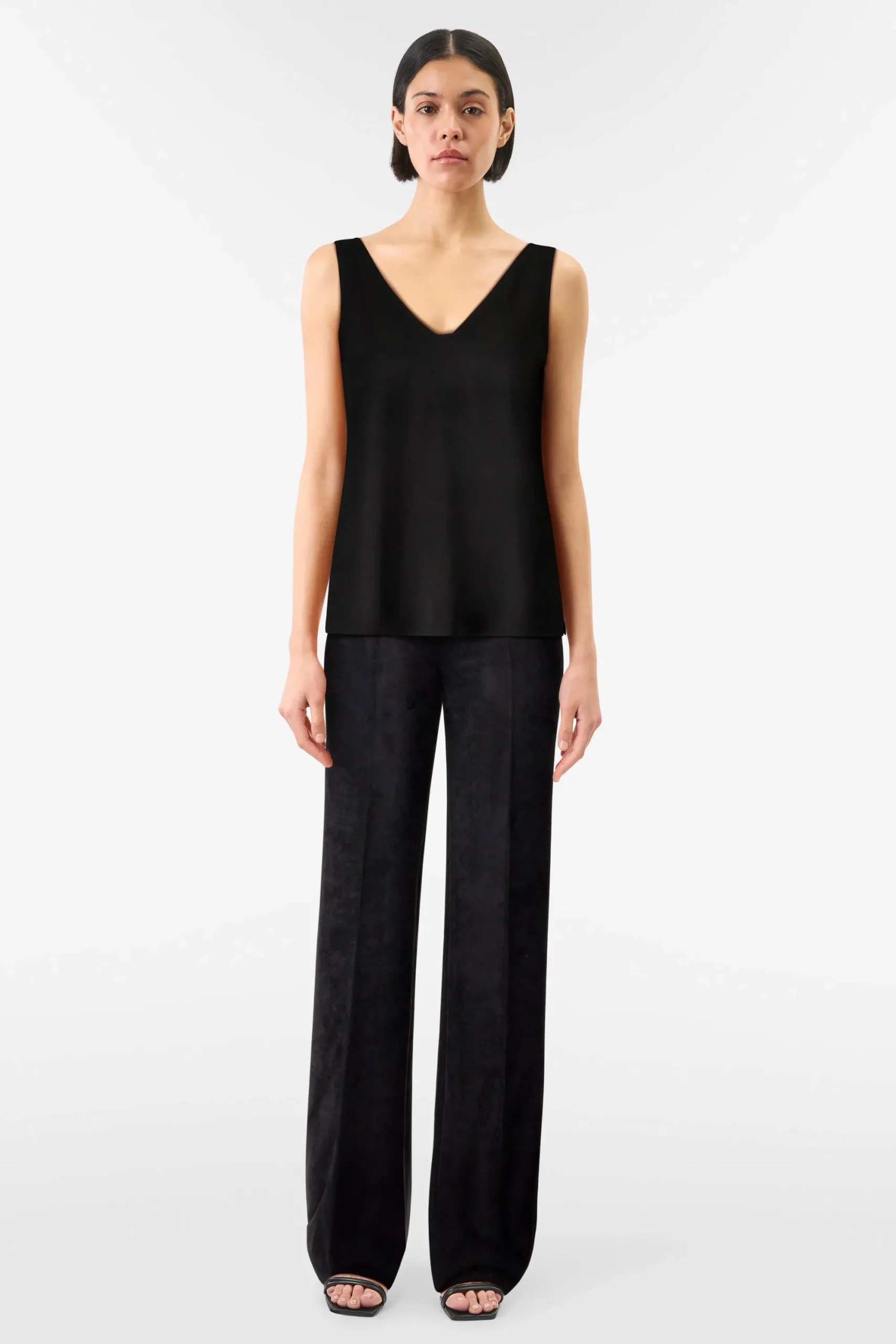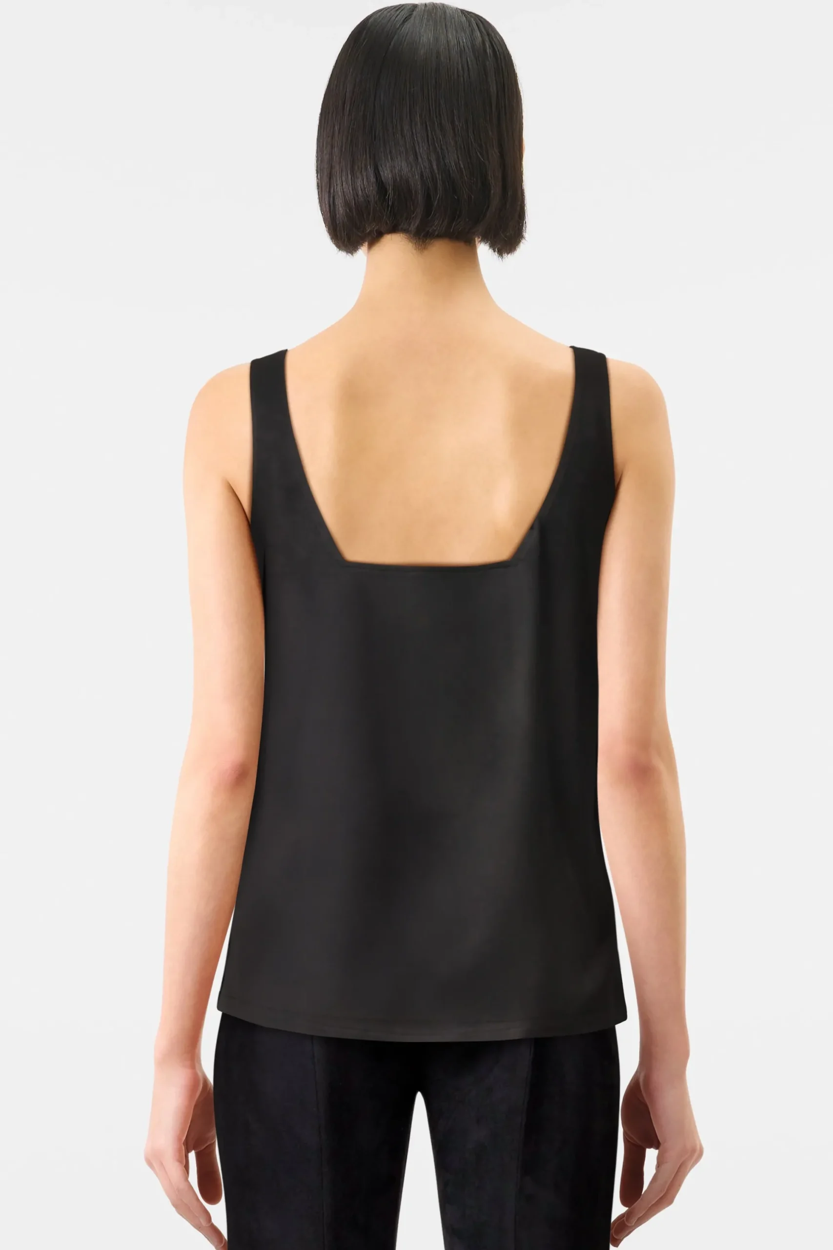 FALYA is een mouwloze top in een klassieke pasvorm. Het bijzondere detail is de diepe rughalslijn. Gemaakt van delicaat satijn.