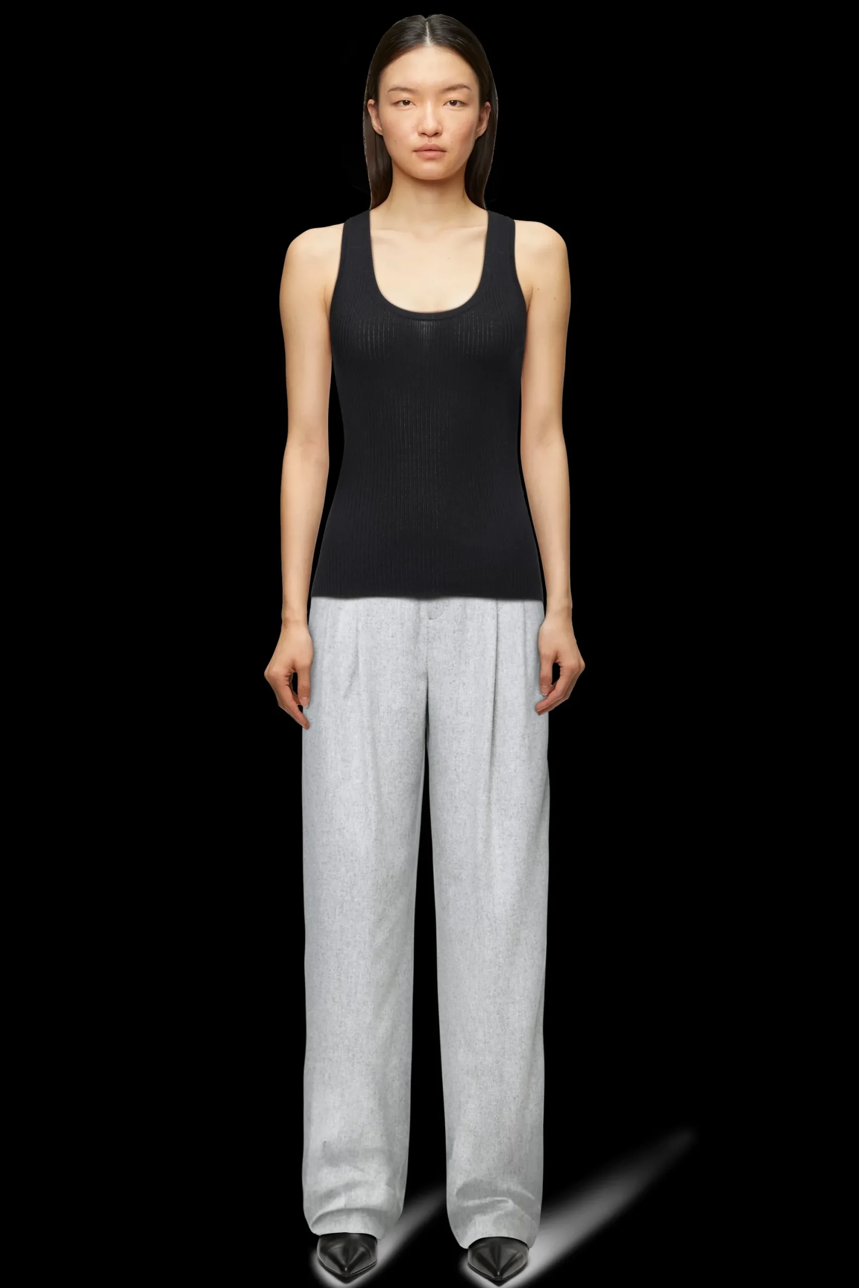 JIMA is een geribde gebreide tanktop met een aansluitende pasvorm en een vrouwelijke halslijn.