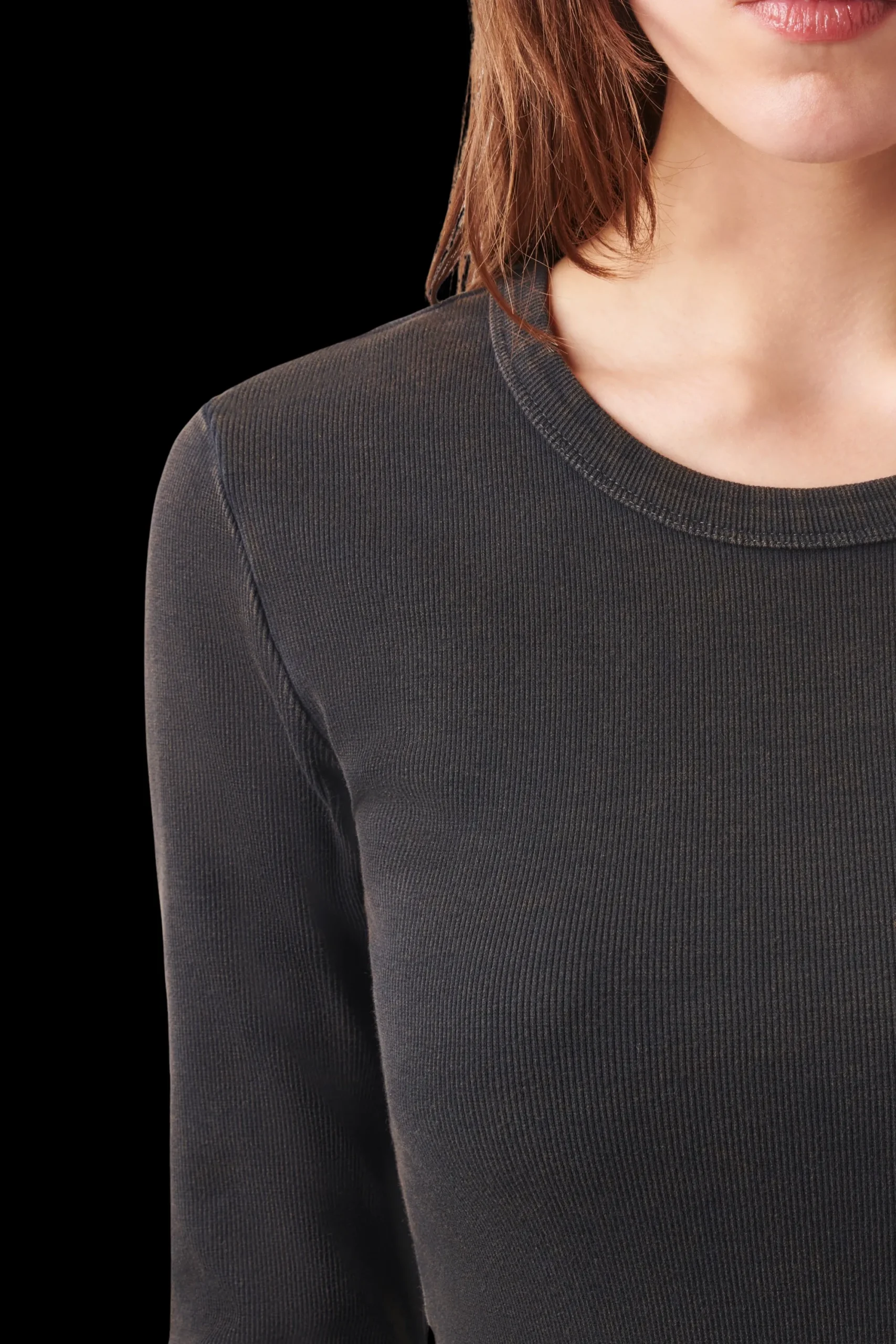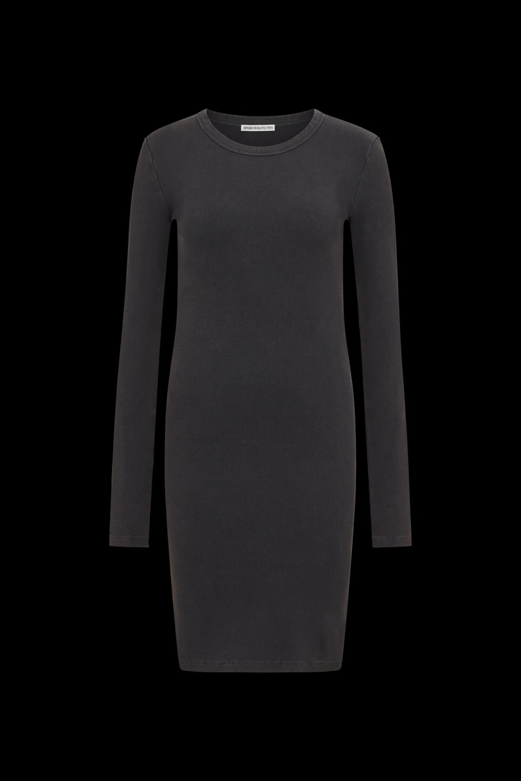 KLARY is een slim-fit jurk met lange mouwen gemaakt van ribkatoen van hoge kwaliteit, geverfd met een speciaal verfproces.