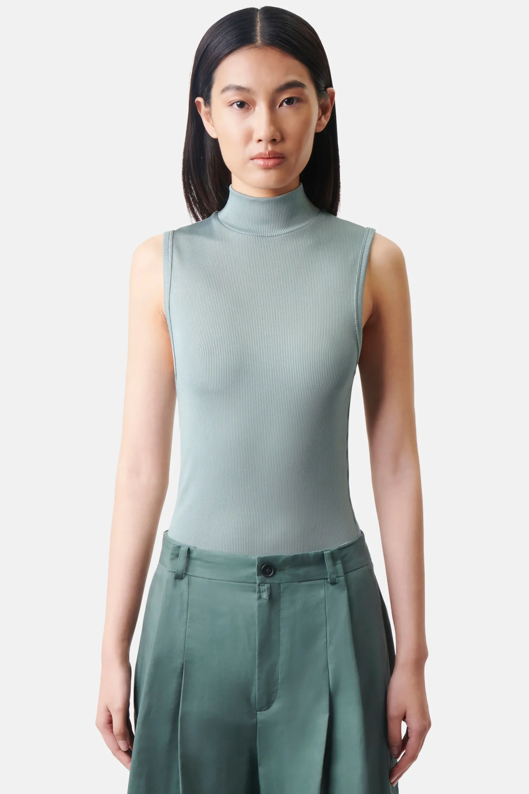 LARAN is een slanke, mouwloze jersey top in een normale pasvorm met een opstaande kraag. LARAN is gemaakt van een vloeiende viscosemix die soepel en vloeiend aanvoelt.