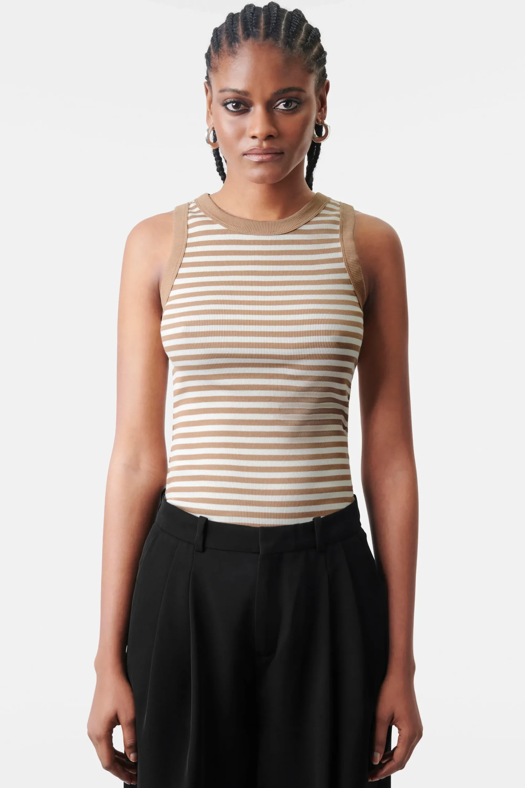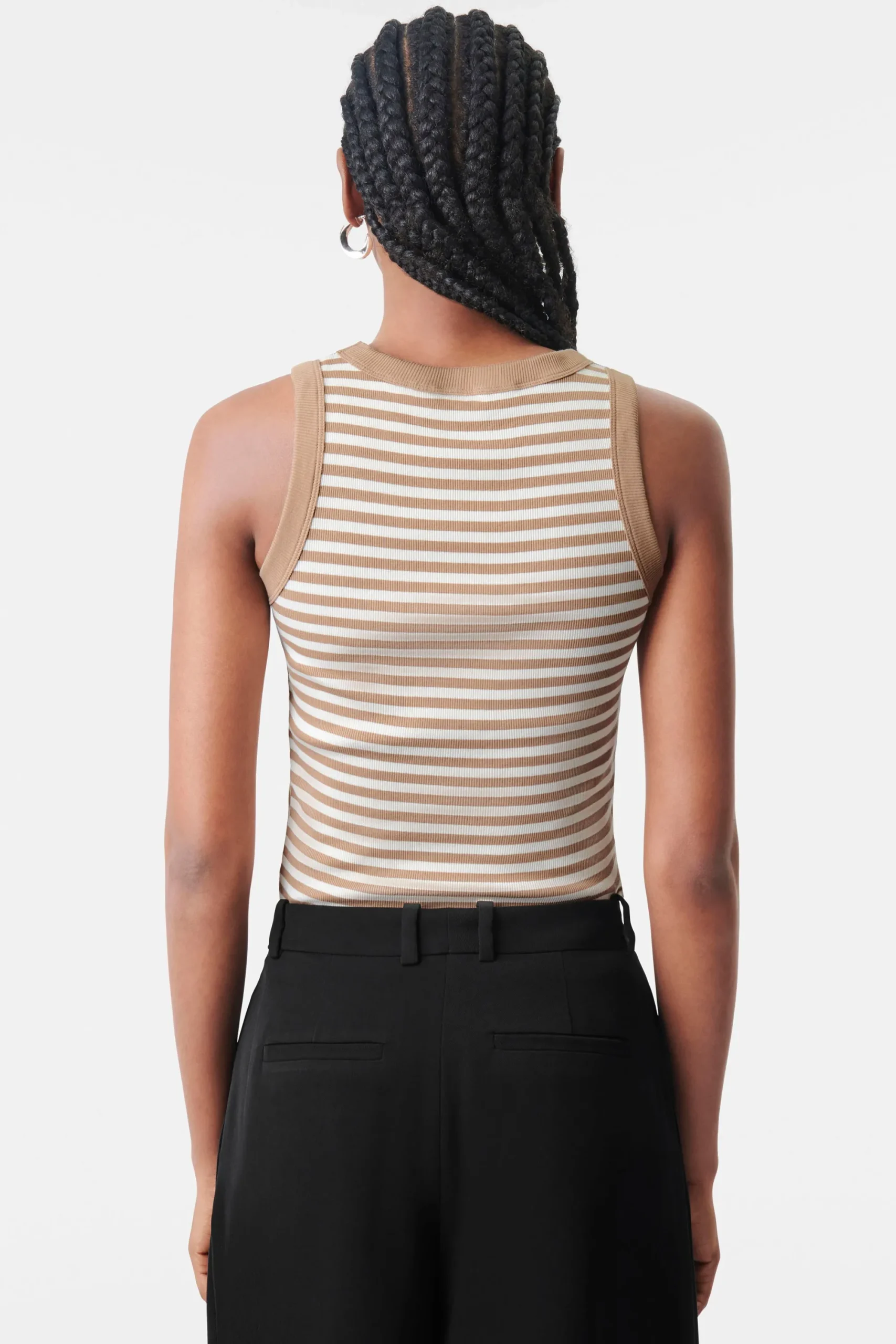 OLINA is een klassieke sportieve tanktop met een fijne geribde structuur. De aansluitende pasvorm en het tijdloze ontwerp maken het een perfecte dagelijkse essential. Katoen is van nature zacht en comfortabel om te dragen. OLINA is gemaakt van gestreepte ribkatoen.