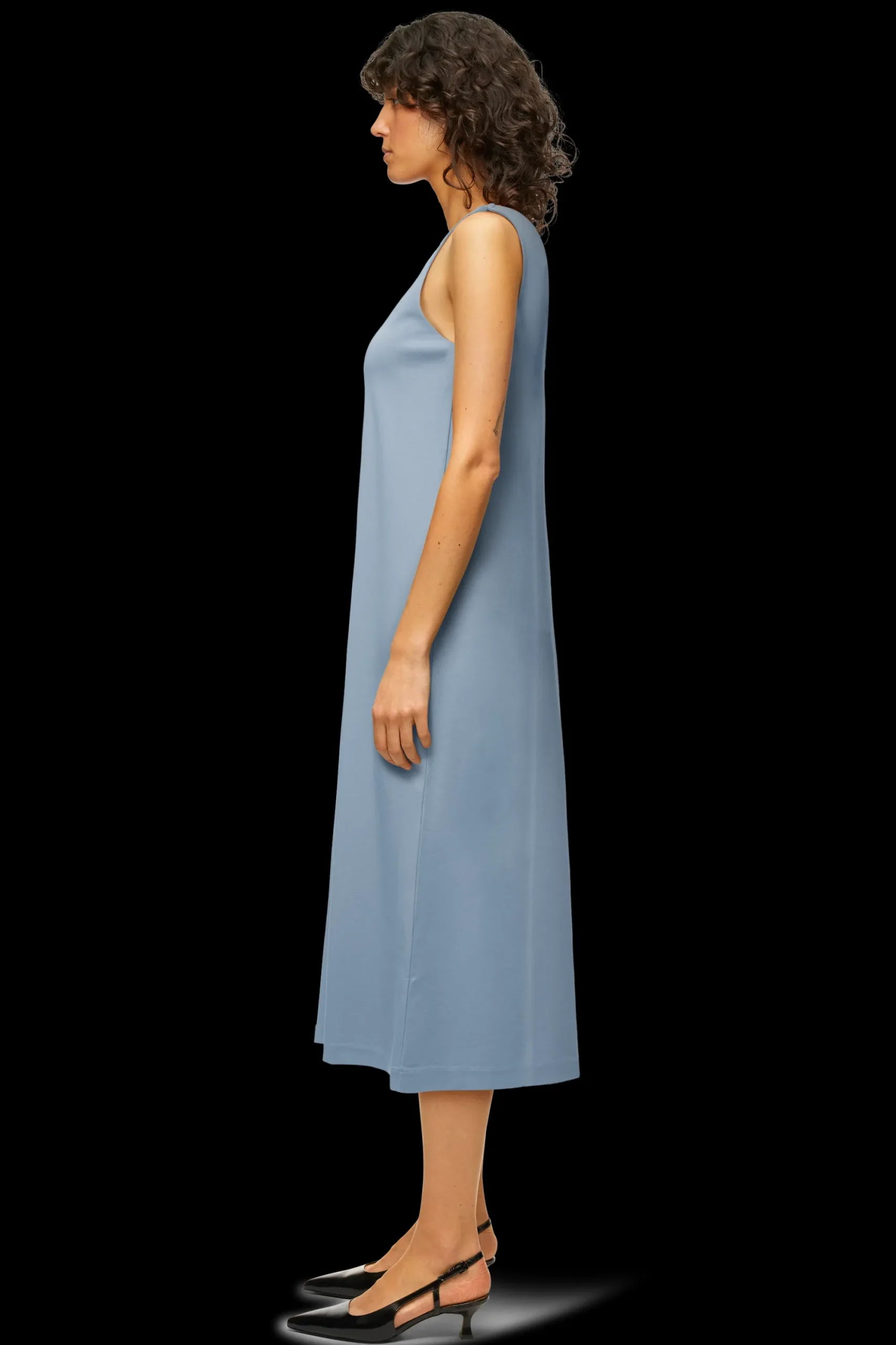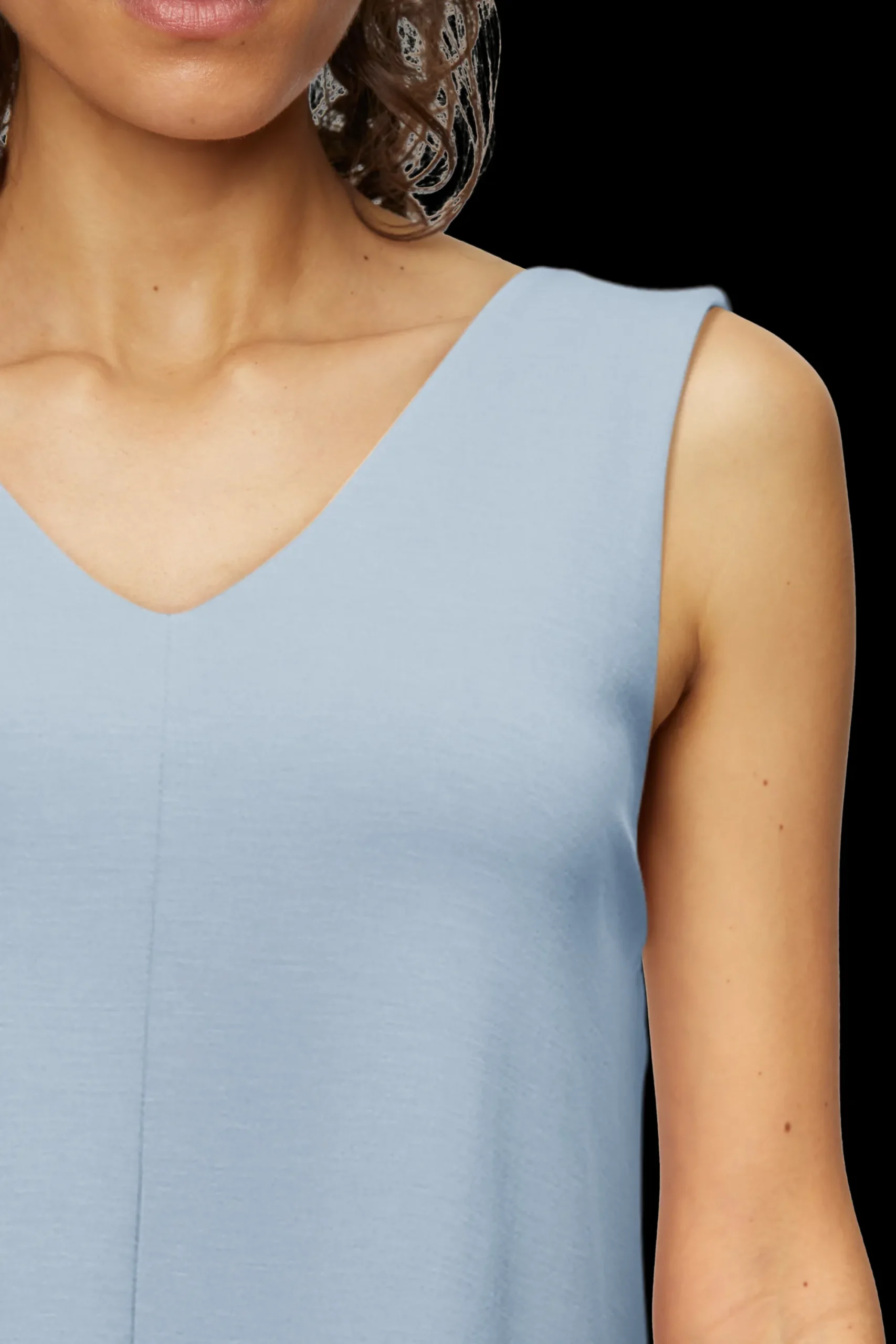 RESIMA is een mouwloze jersey jurk met een V-hals. De casual pasvorm geeft de jurk een modern silhouet. De hoogwaardige, zachte lyocellmix ziet er clean uit en is comfortabel om te dragen.