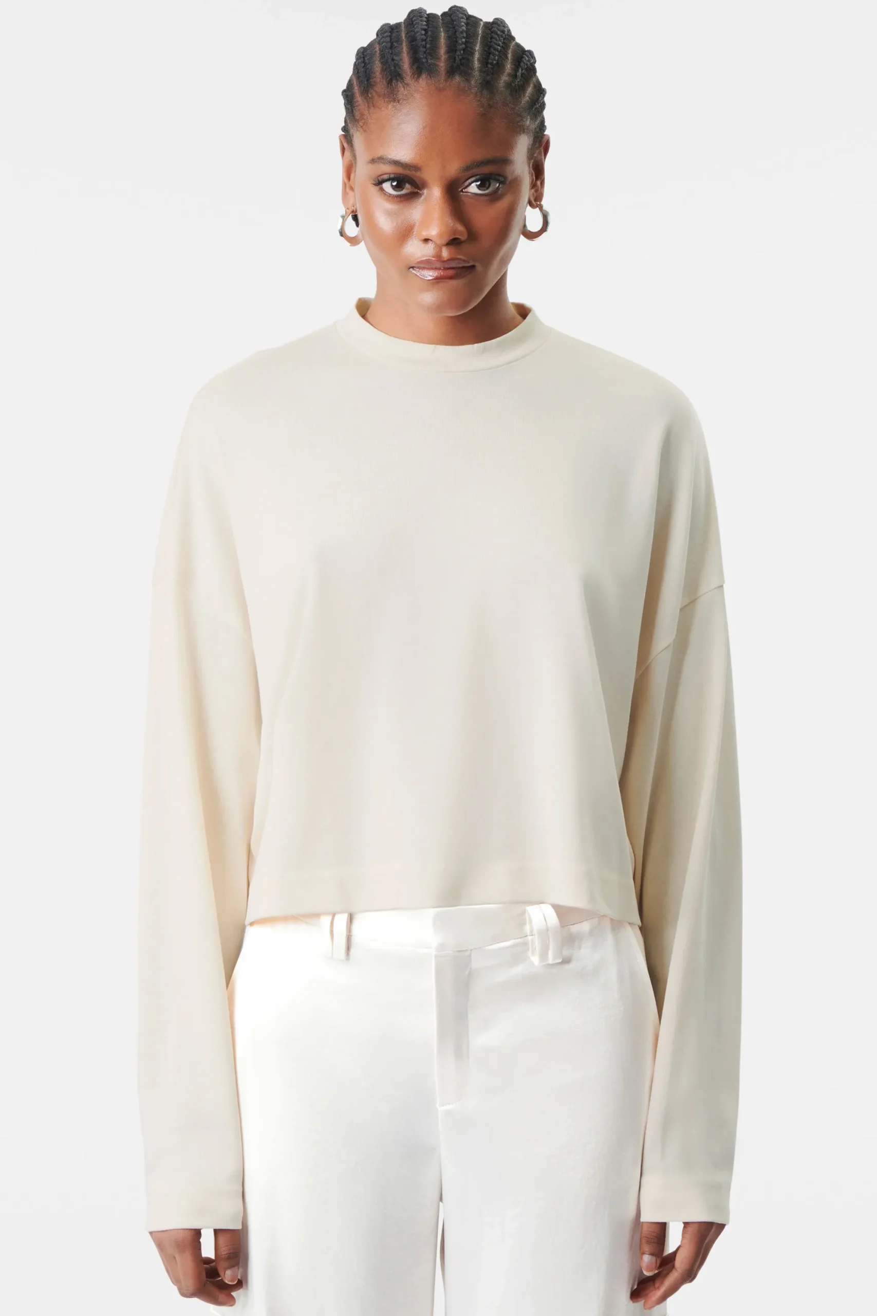 ROLIN is een casual top met lange mouwen in een relaxte pasvorm. Het heeft een cropped fit en dropped shoulders. Gemaakt van een zuivere lyocell/katoenmix.