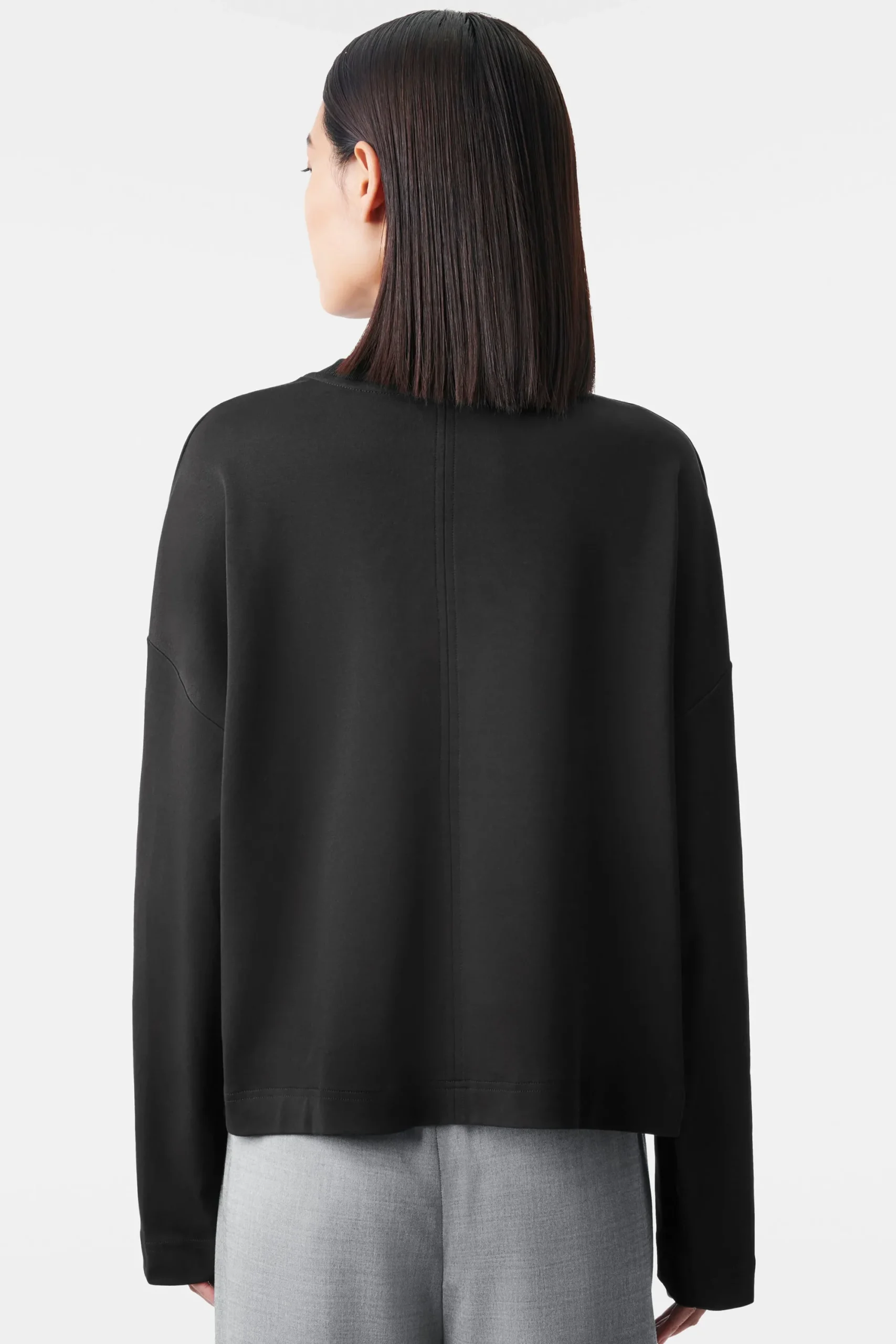 VASSANI is een vrouwelijk en licht getailleerd sweatshirt met een ronde hals. De zachte interlockjersey is gemaakt van biologisch katoen.