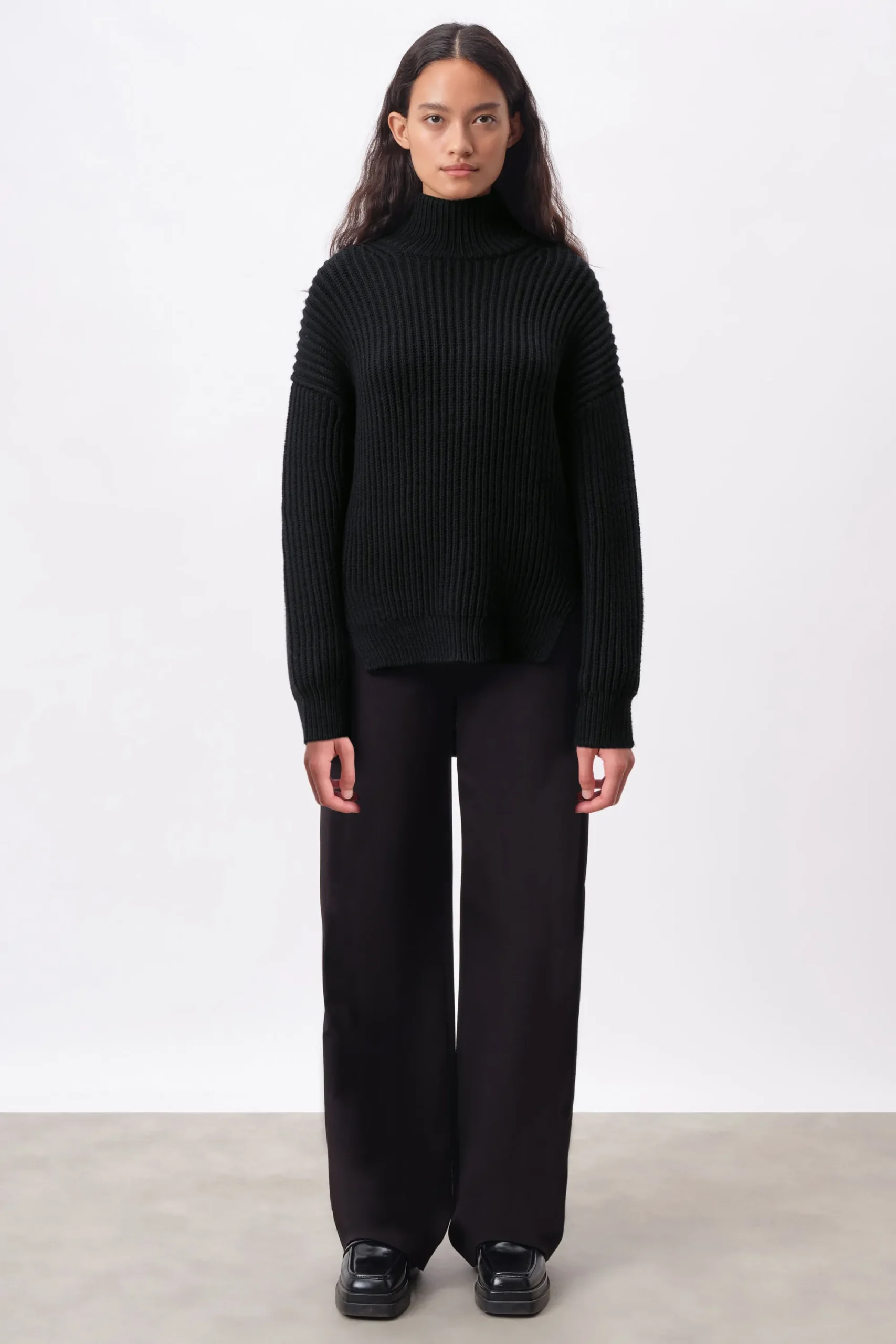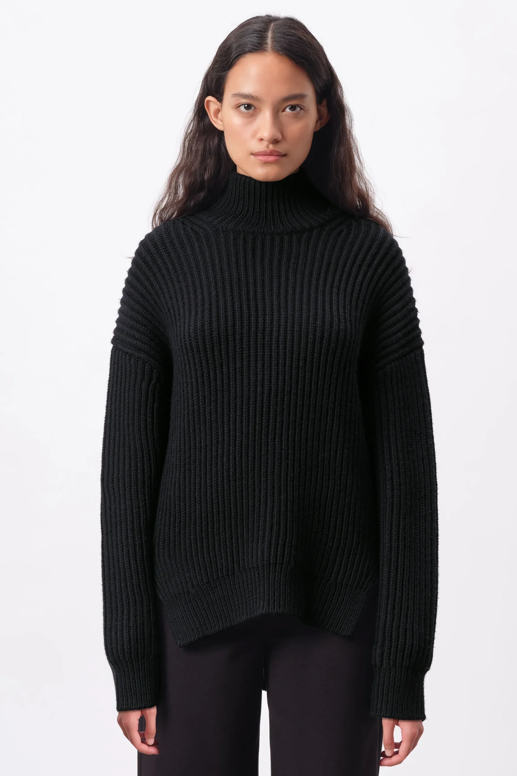 VIORIKA is een modieuze coltrui met zijsplitten. Deze trui combineert comfort en stijl op een elegante manier. Hij is veelzijdig en een must-have voor je herfst- en wintergarderobe. VIORIKA is gemaakt van grove scheerwol.