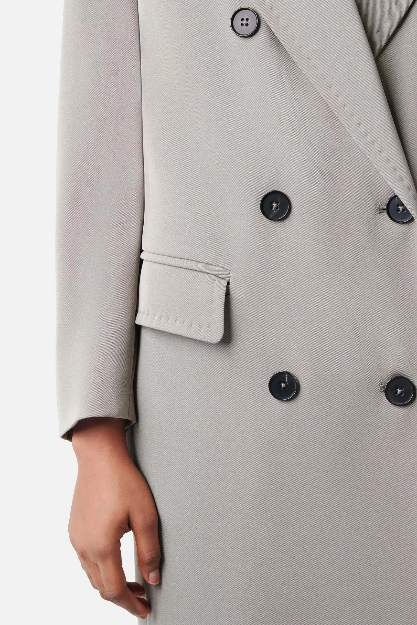 WORCESTER is een stijlvolle blazerjas met een opvallend schouderaccent. Het double-breasted ontwerp geeft de jas een elegante look, terwijl de opgestikte zakken praktische opbergruimte bieden. De reverskraag rondt het klassieke ontwerp af en geeft de jas een tijdloze touch. WORCESTER is de perfecte keuze voor een chique en verfijnde look, zowel op kantoor als bij speciale gelegenheden. Gemaakt van vloeiende techno-twill met een vintage look.