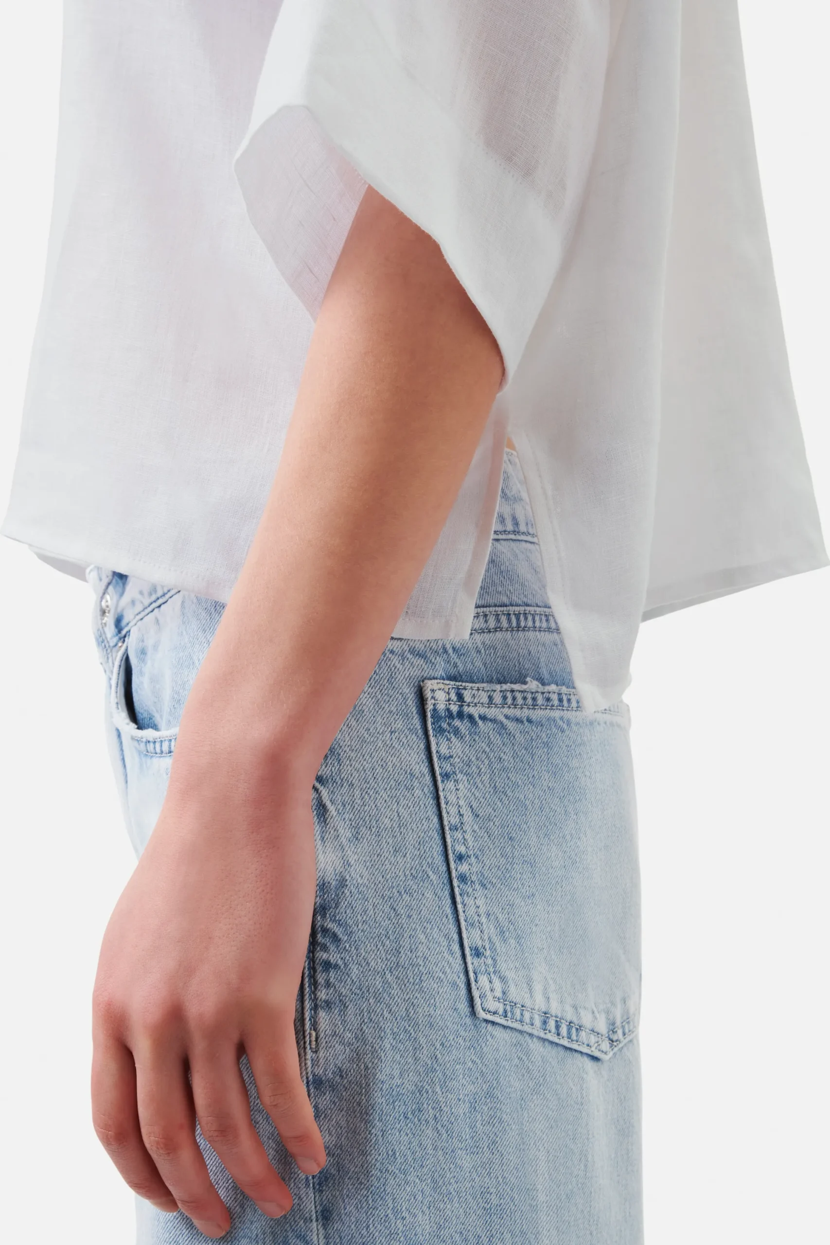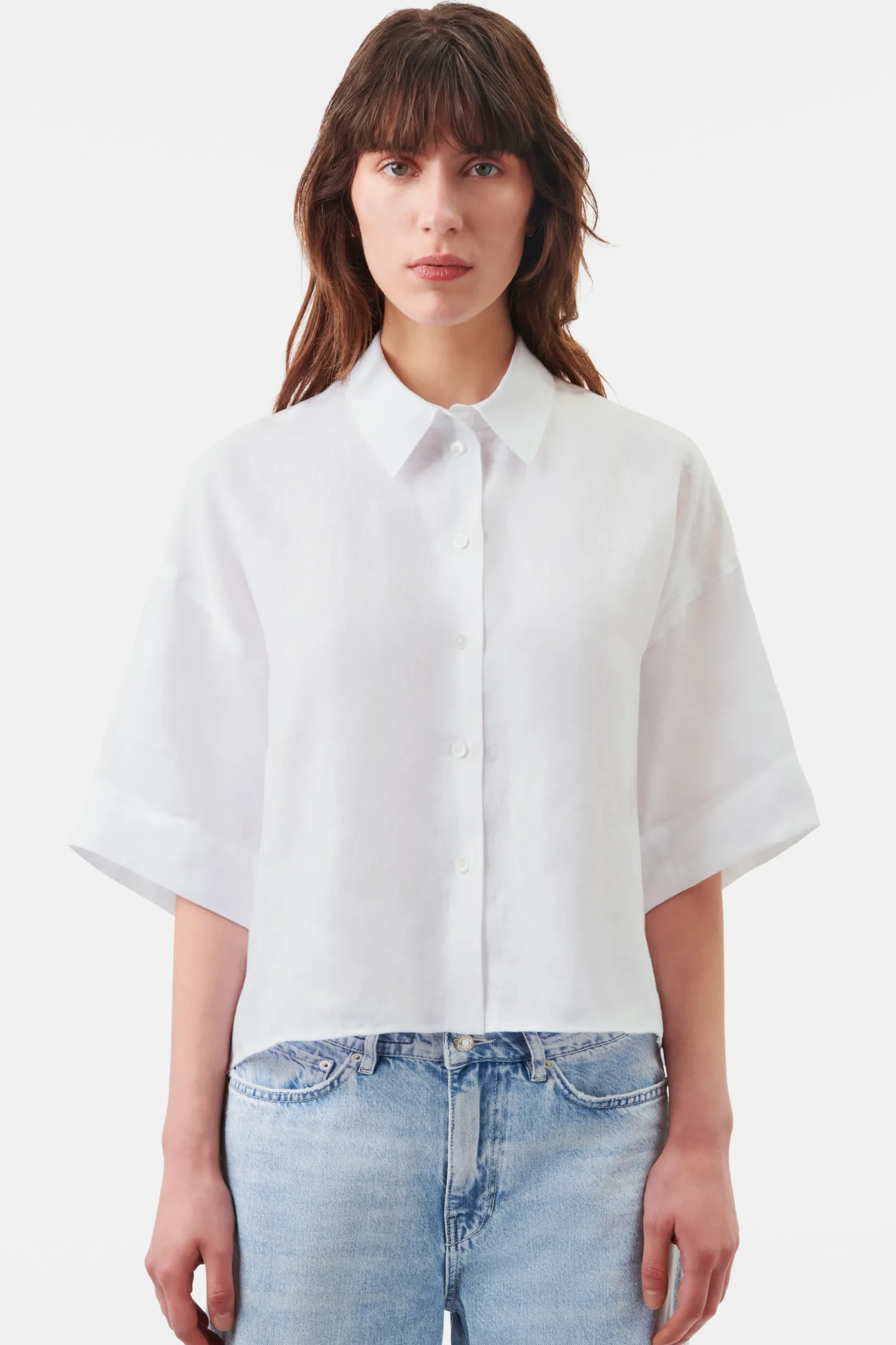 YARIKA is een boxy overhemdblouse in een oversized pasvorm. Hij heeft 3/4 mouwen, een knoopsluiting en splitjes in de zijnaad als detail. YARIKA is gemaakt van zomers linnen.