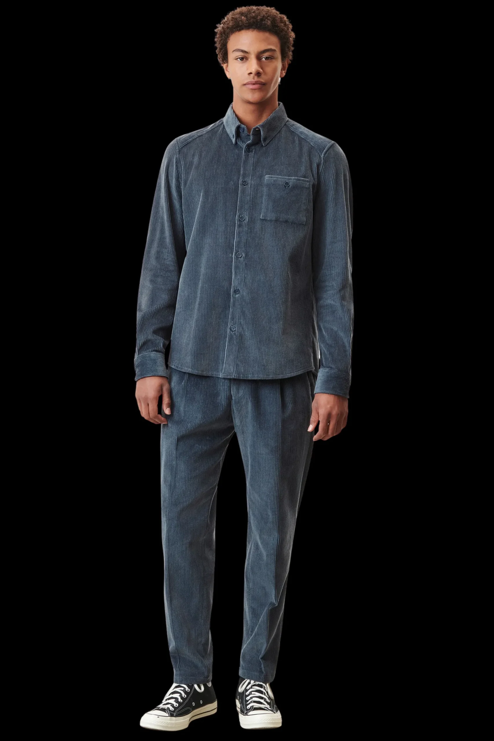 Met LIET krijg je een button down overhemd in casual pasvorm en opgestikte borstzakken met knopen. De binnenkant van de kraag heeft een klein lusje. LIET is gemaakt van ribfluweel met een geribde afwerking.