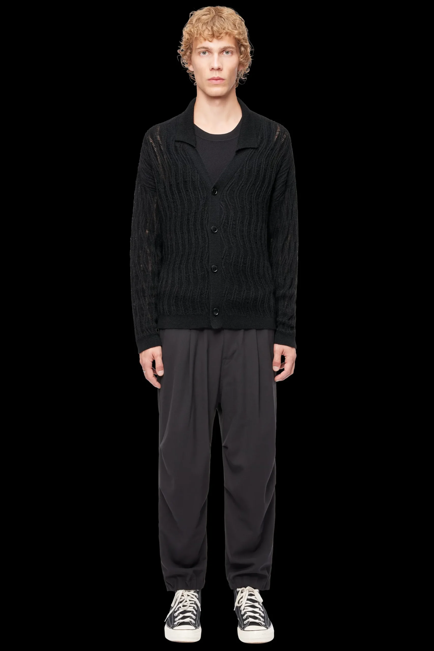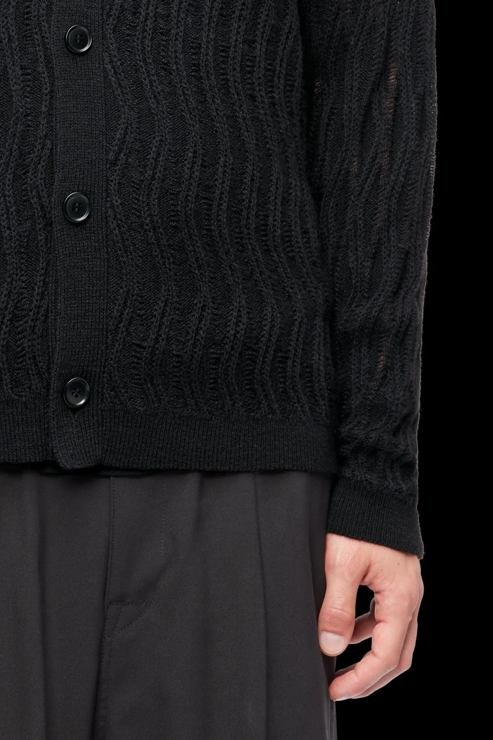 NAFTAN is een modern vest met een kraag. De wolmix met extravagant breipatroon en open structuur maakt het comfortabel om te dragen.