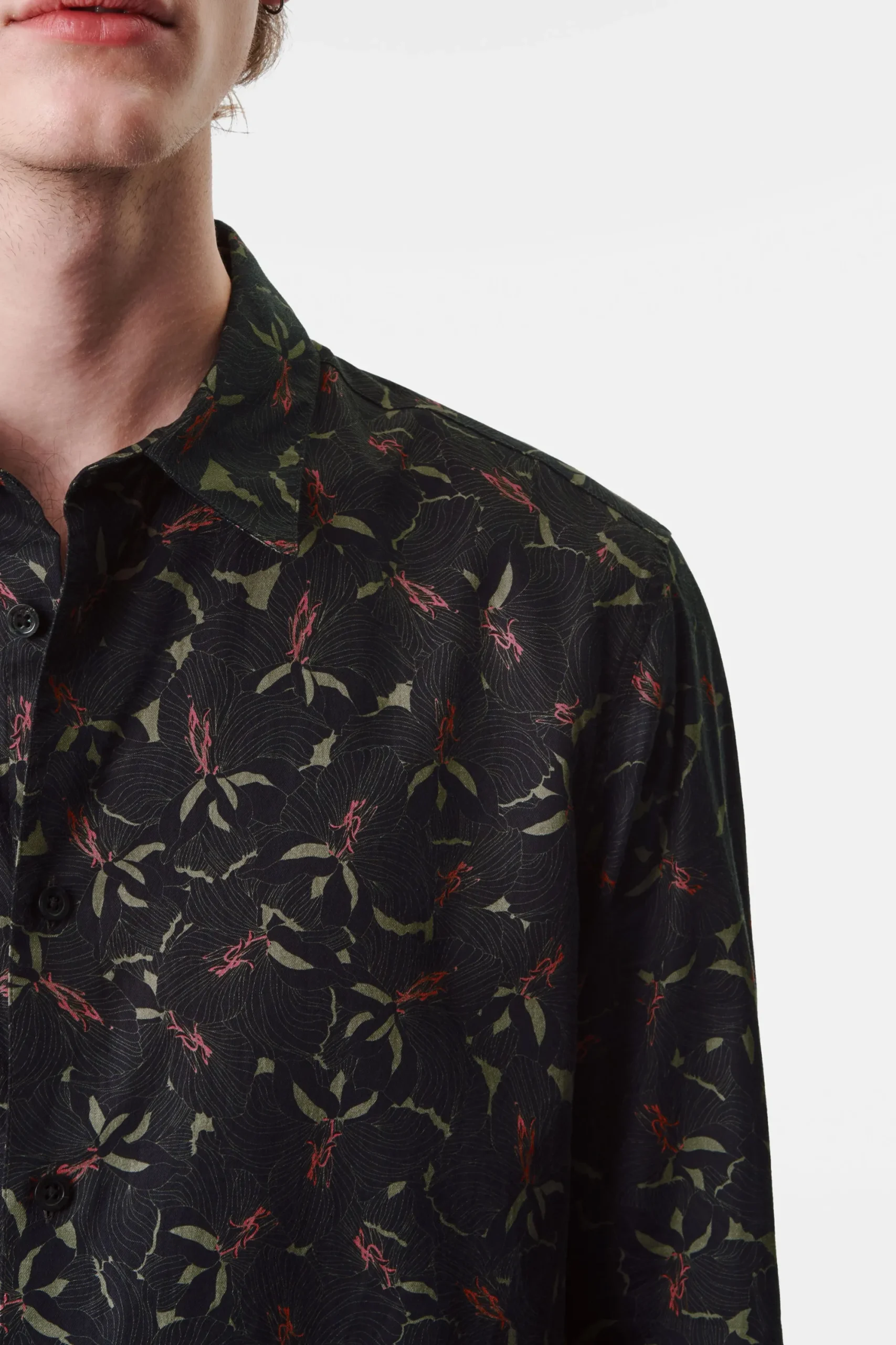 De manchetten van dit overhemd zijn licht afgerond en de pasvorm is iets langer vergeleken met een business overhemd. RAMIS is gemaakt van puur katoen. Bedrukt met onze kenmerkende hibiscusprint.