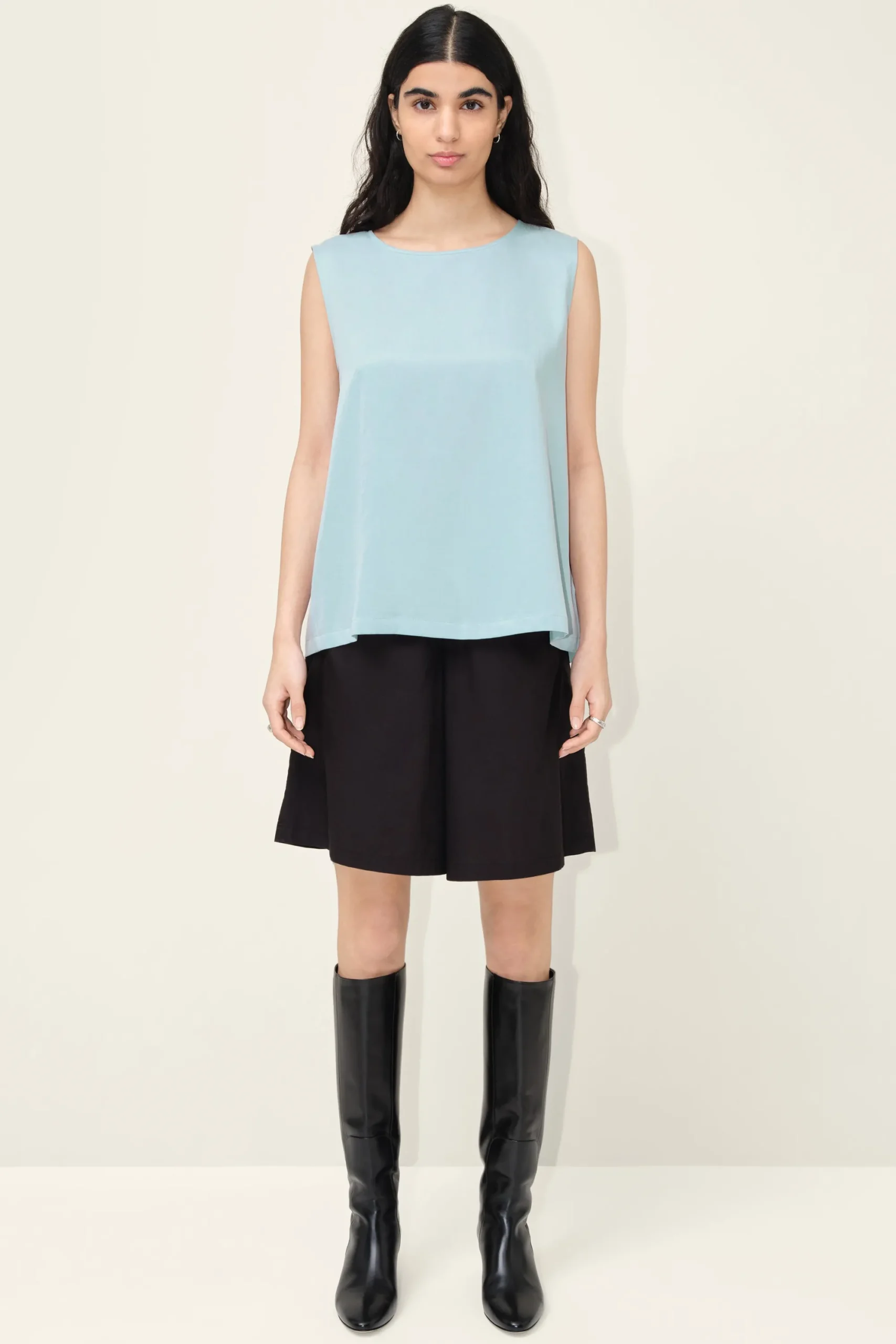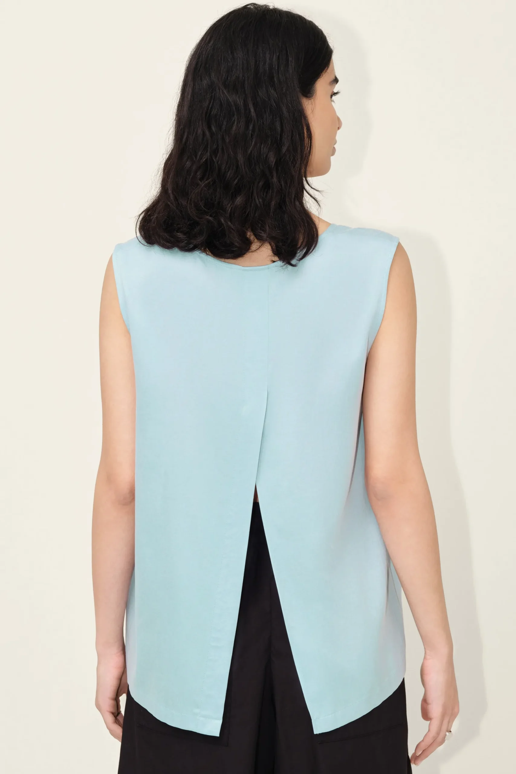 ALINUA is een vrouwelijke shirt-blouse met rugsplit en ronde hals.ALINUA is gemaakt van licht vloeiende cupro-kwaliteit.
