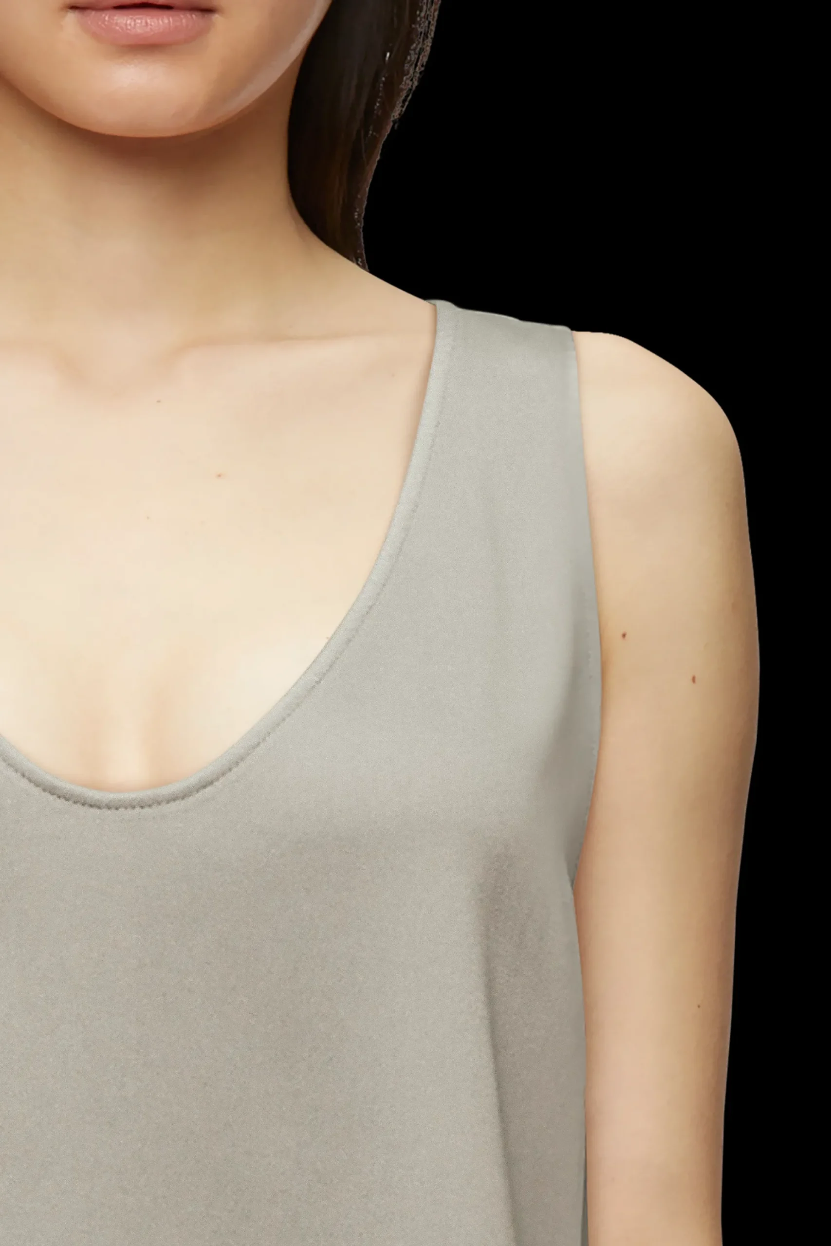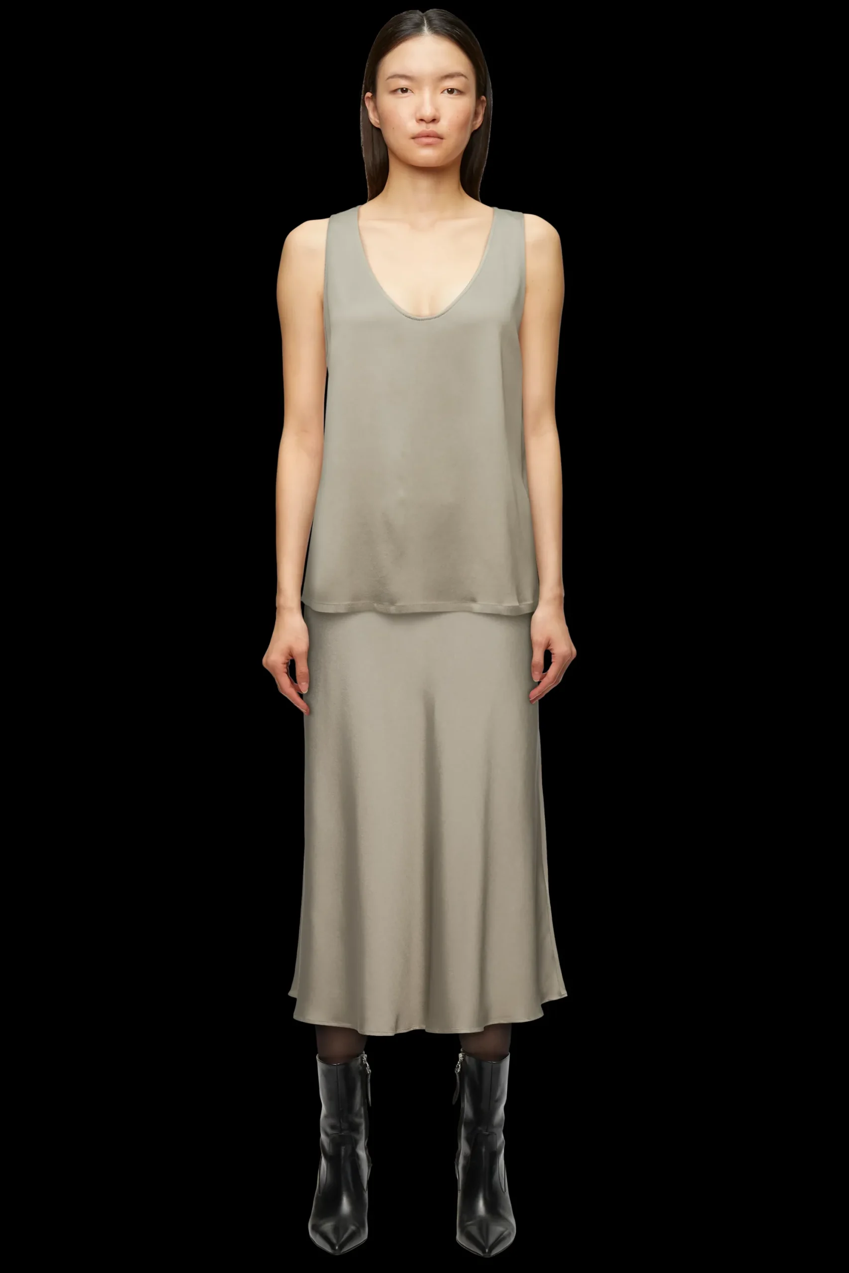 AMINAH is een top met een diepe halslijn en een klassieke pasvorm. Gemaakt van vloeiend satijn van hoge kwaliteit.