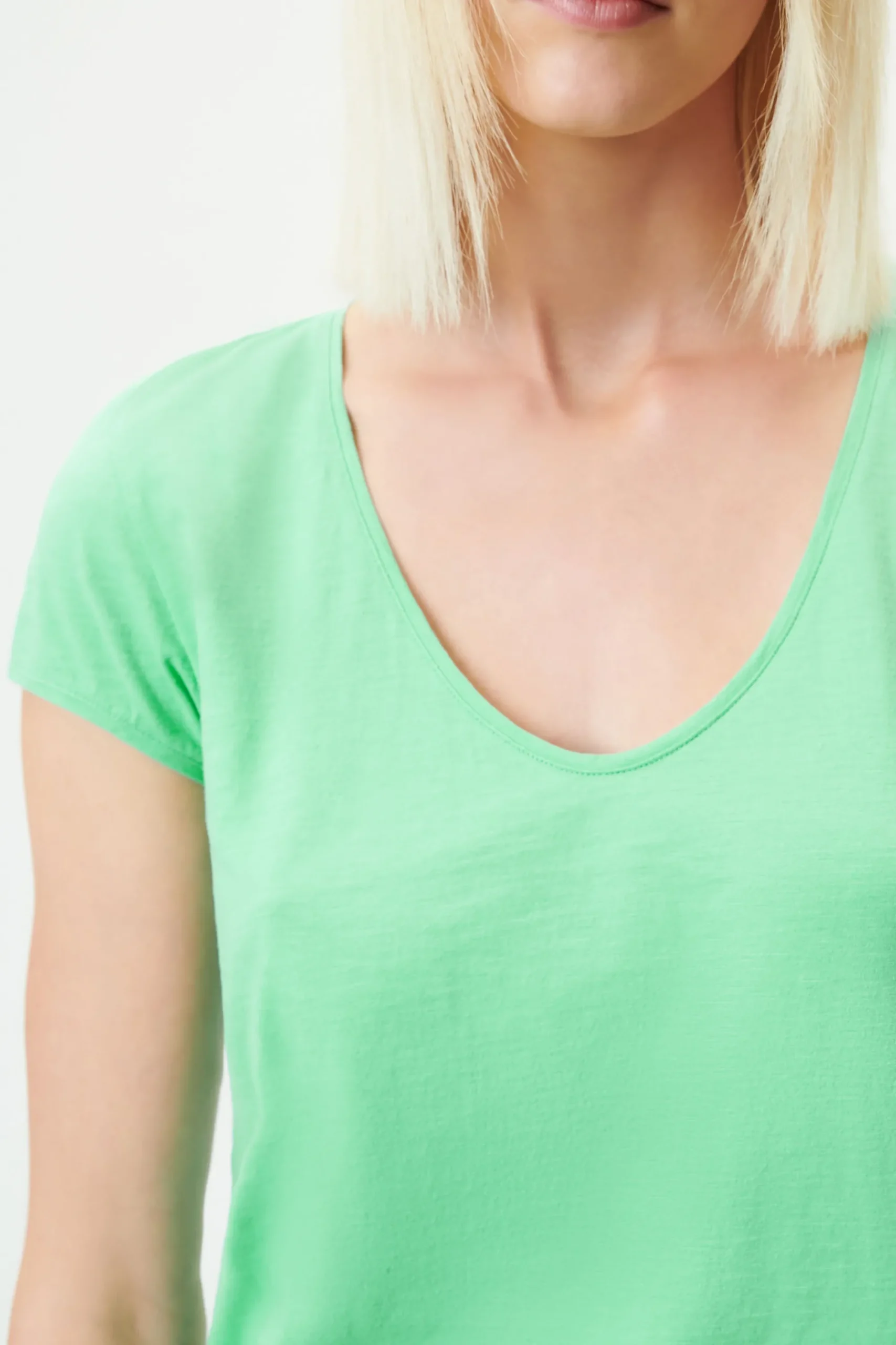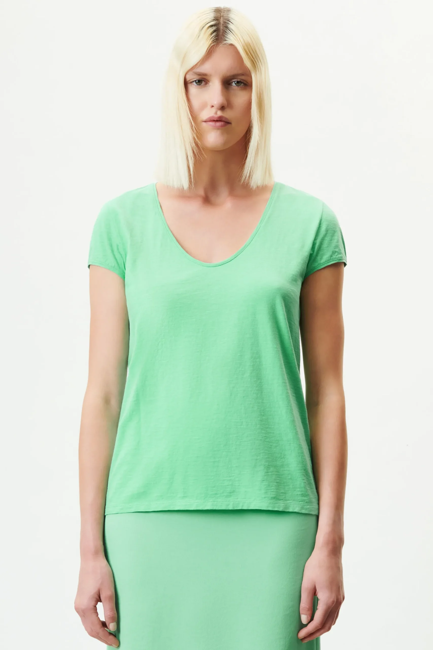 AVIVI is een klassiek T-shirt met een V-hals en een getailleerde pasvorm.AVIVI is gemaakt van zomerse jersey van SZ-garen.