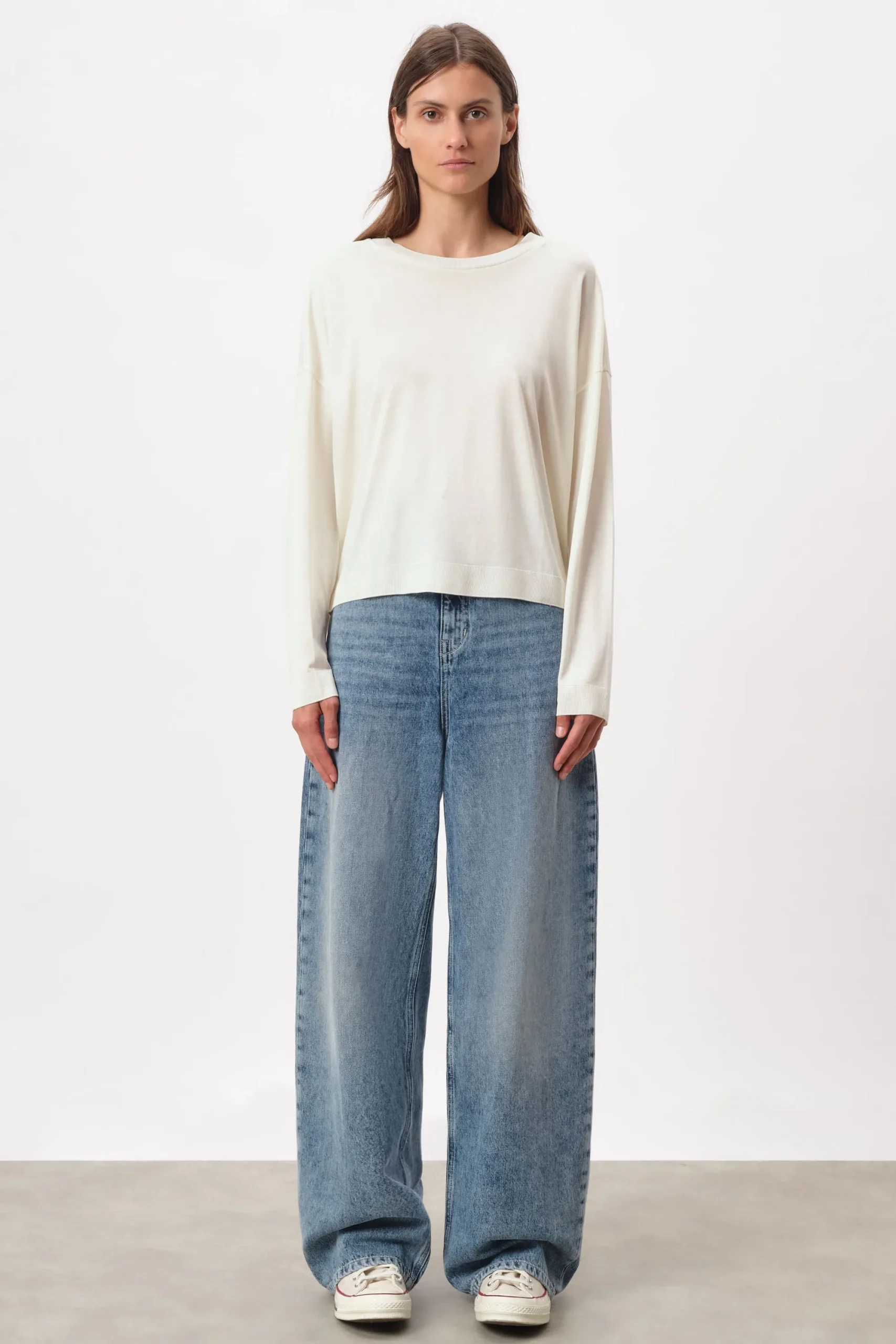 De casual longsleeve CESIDIE wordt geleverd met een fijngebreide look, overgesneden schouders en ronde hals.CESIDIE is gemaakt van hoogwaardige lyocell-katoenjersey in een gebreide look.