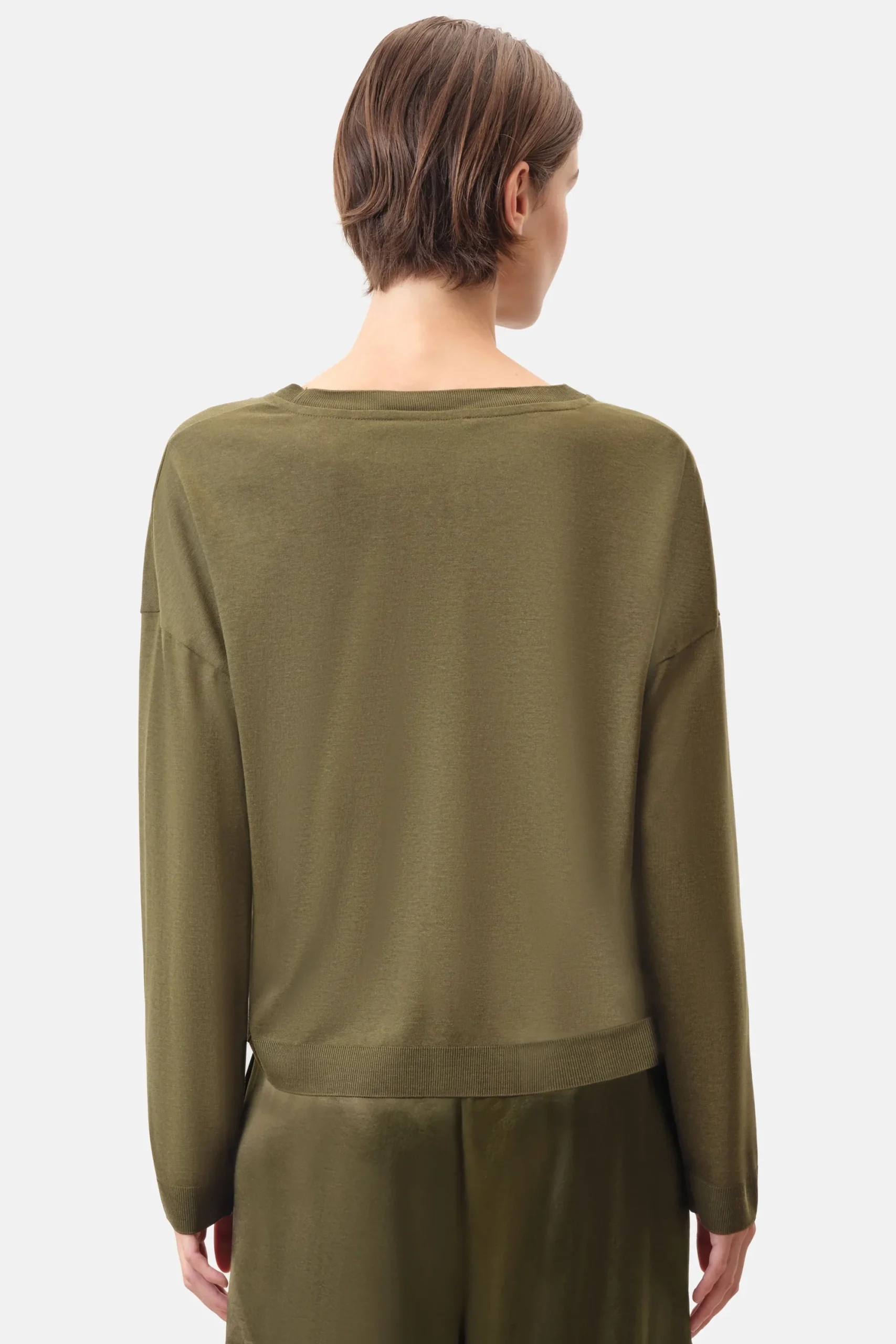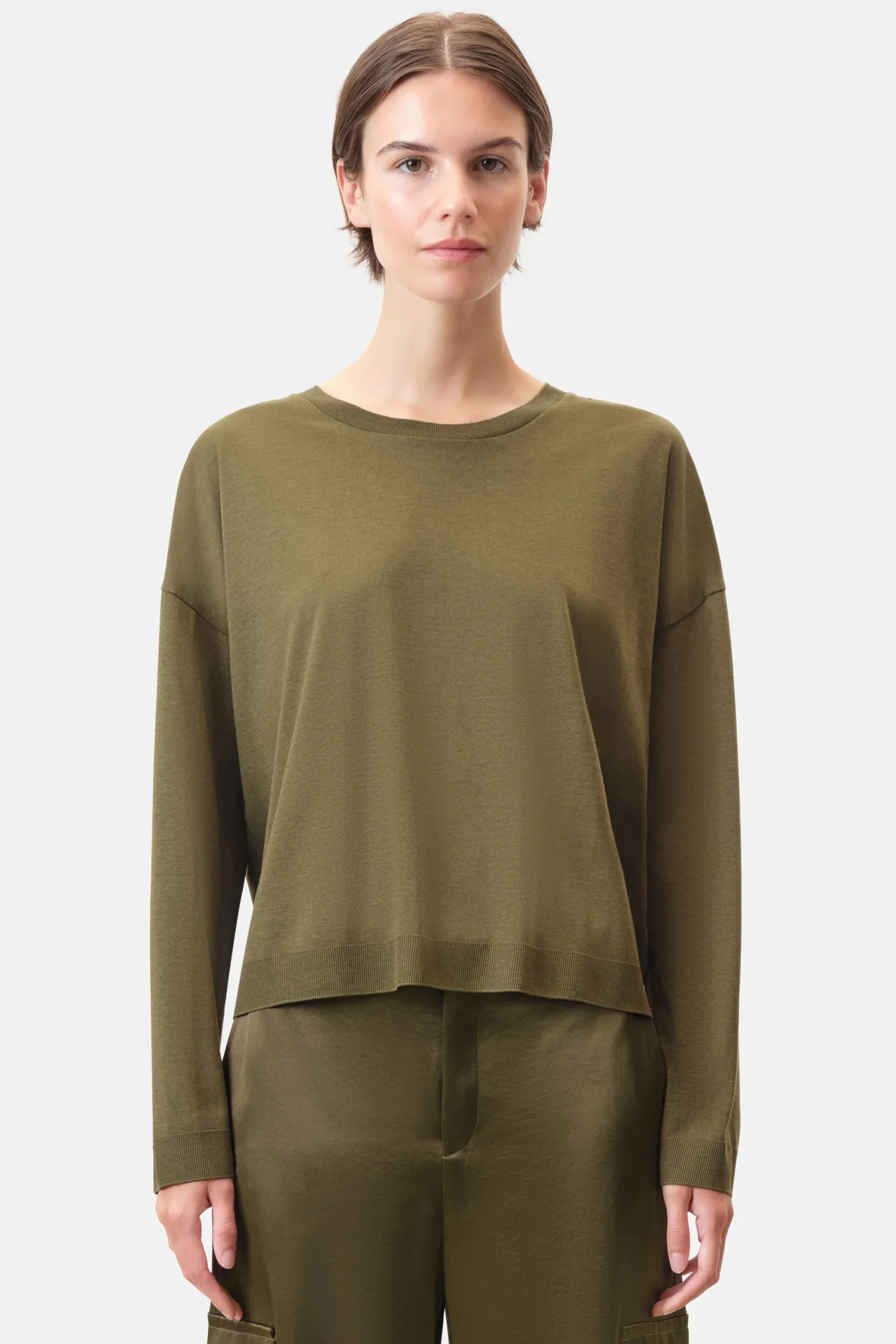 De casual longsleeve CESIDIE heeft een fijngebreide look, overlappende schouders en een ronde hals. CESIDIE is gemaakt van hoogwaardige Lyocell-katoenen jersey in een gebreide look.