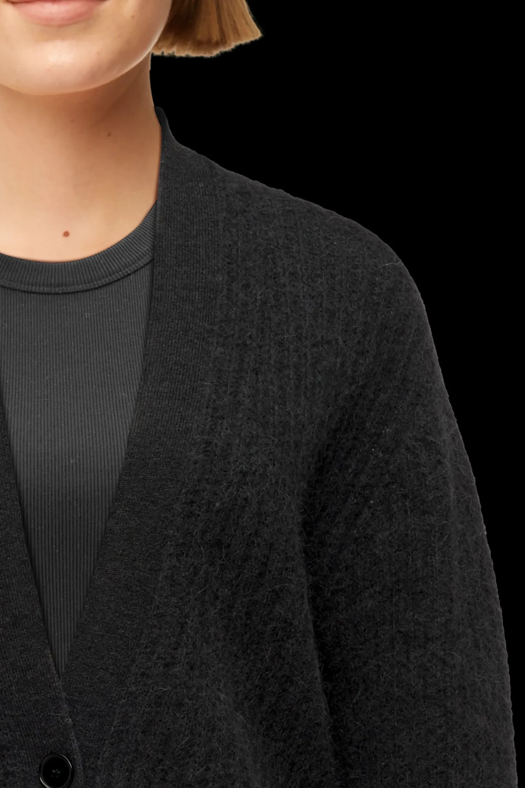 COOPIE is een casual vest met knopen dat op verschillende manieren gecombineerd kan worden. De luxe suri alpacamix is erg zacht en maakt het bijzonder comfortabel om te dragen.
