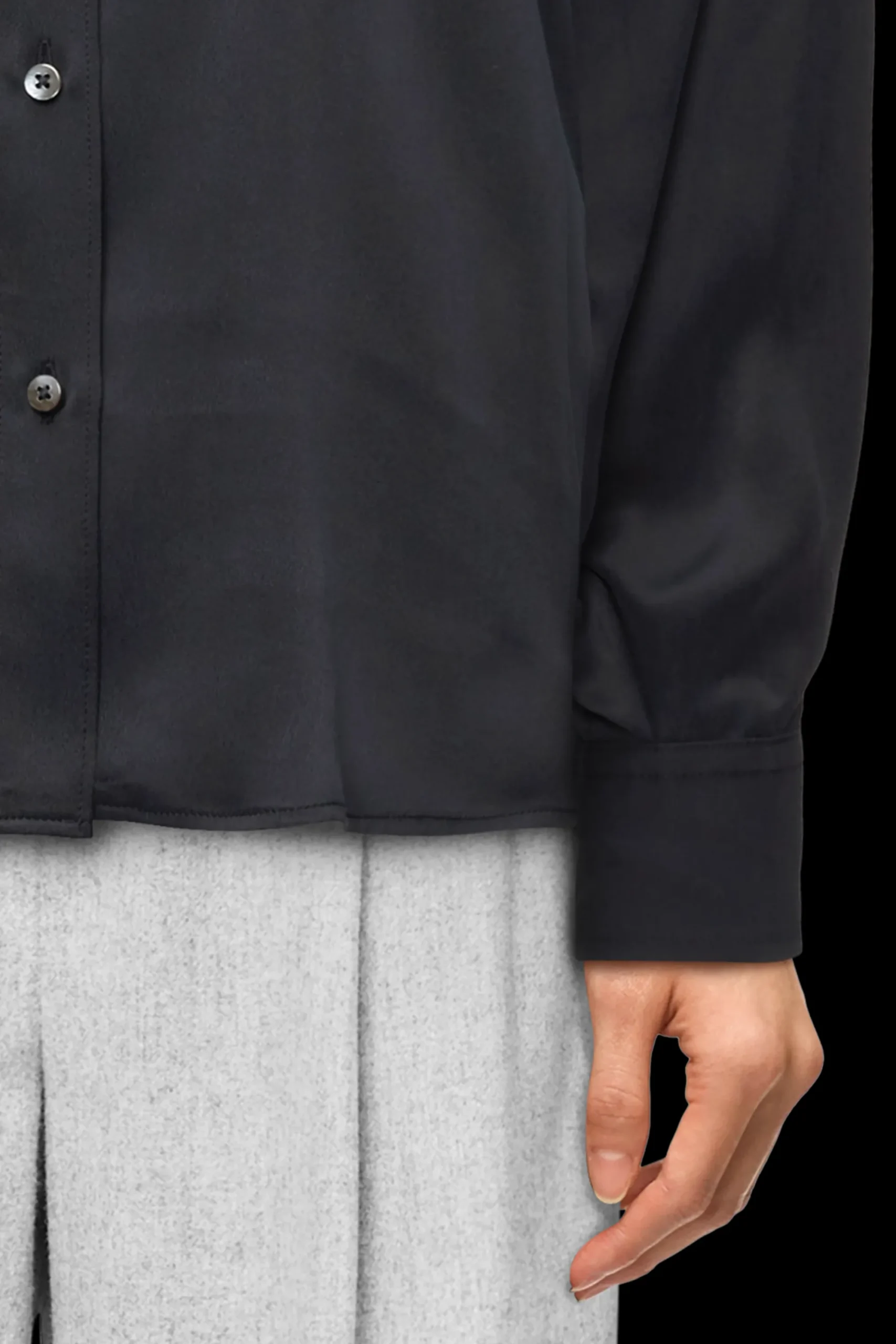 DHYANA is een klassieke overhemdblouse en is door zijn cleane look echt onmisbaar voor elke dag. Dit is een hoogwaardige stof van 100% zijde, die zorgt voor een luxe en comfortabel gevoel. De samenstelling draagt bij aan een aangenaam draagcomfort. Het enzymatische wasproces geeft de stof een gewassen look en een zacht gevoel.