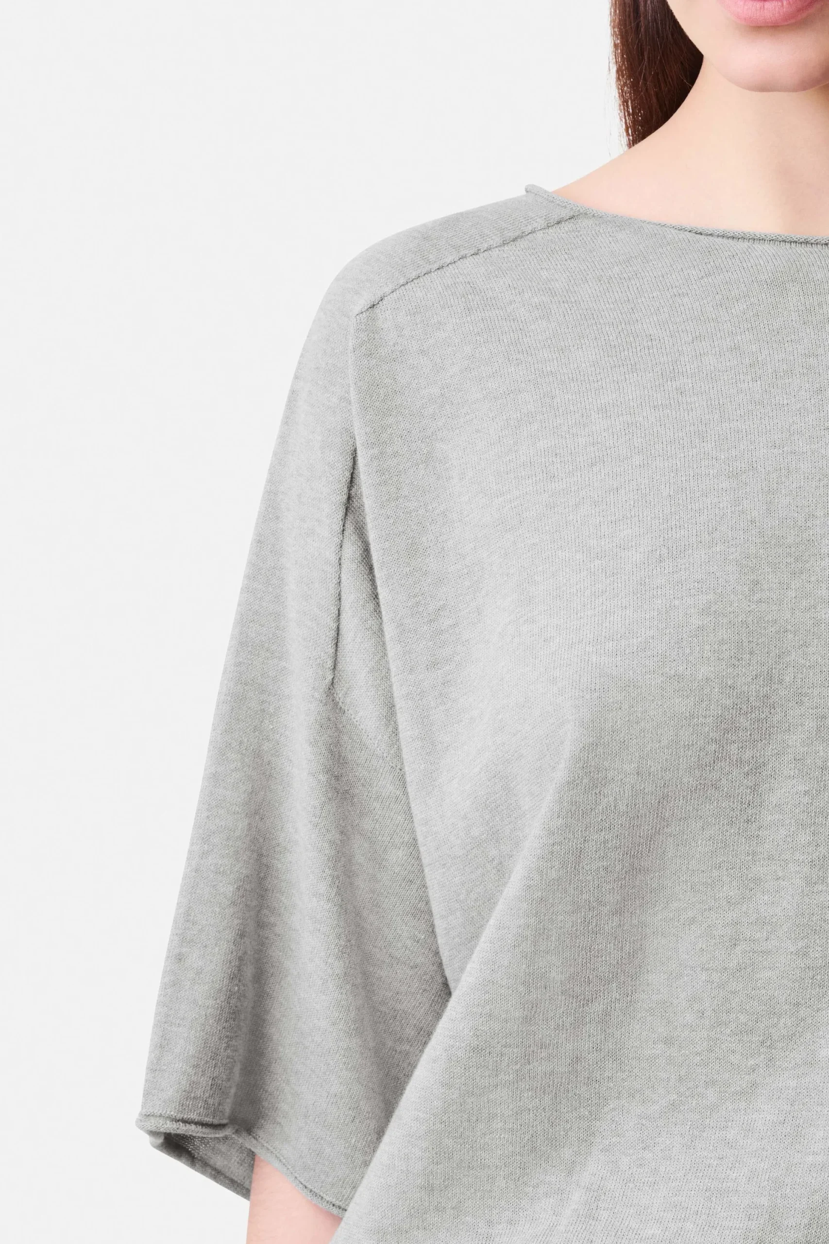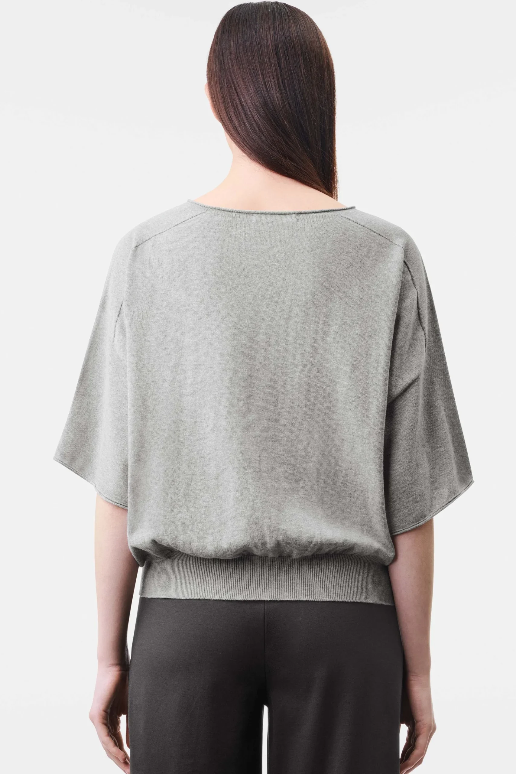 DILARY is een casual gebreid T-shirt in een bijgesneden, oversized pasvorm. Het heeft korte mouwen en een ronde halslijn. Gemaakt van katoenen crêpe.