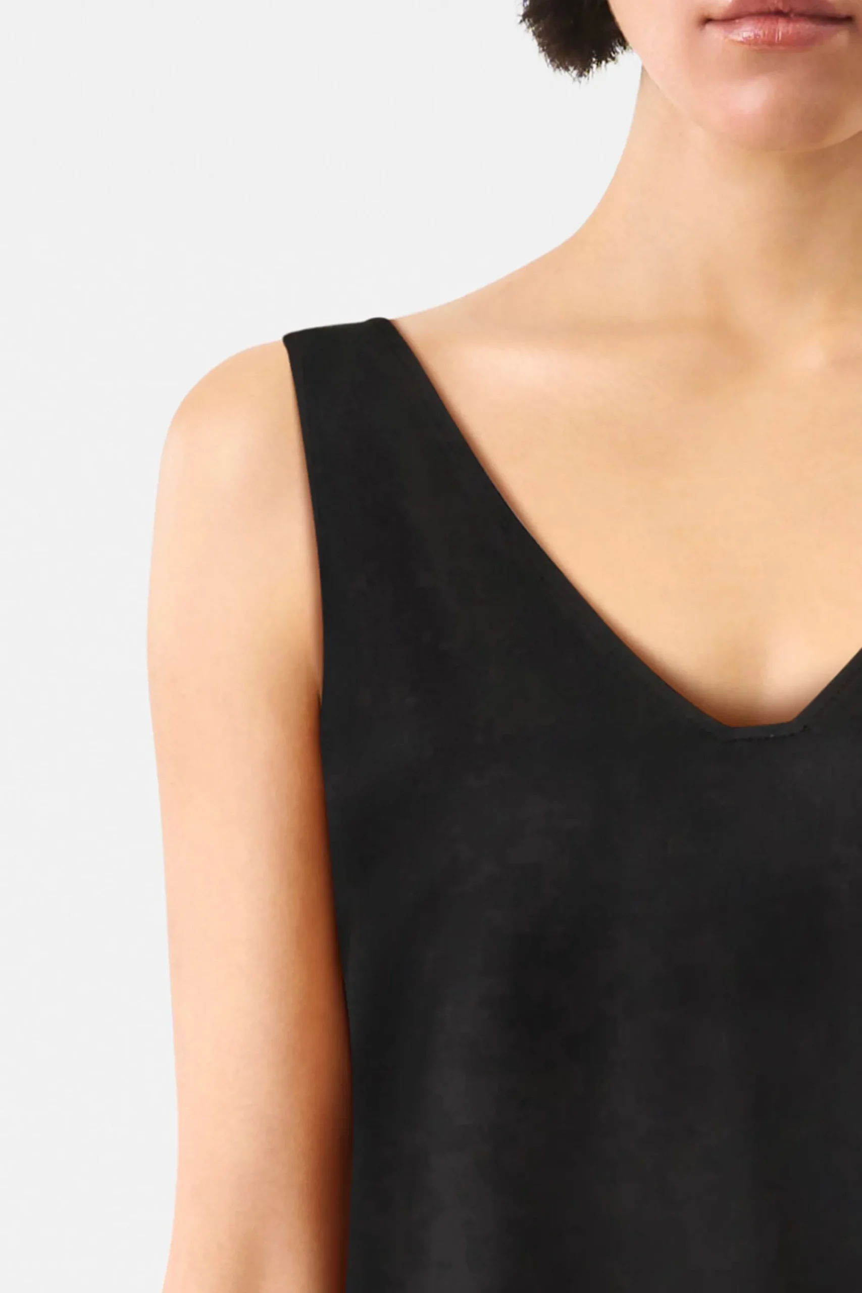 FALYA is een mouwloze top in een klassieke pasvorm. Het bijzondere detail is de diepe rughalslijn. Gemaakt van delicaat satijn.