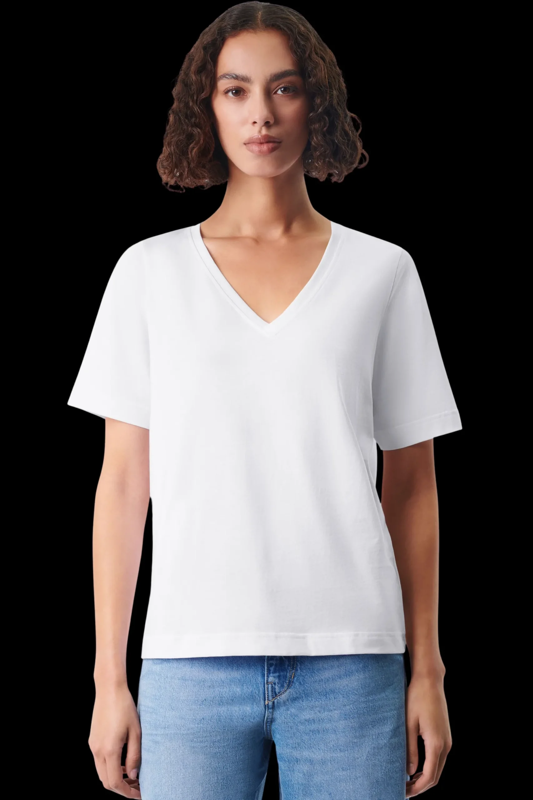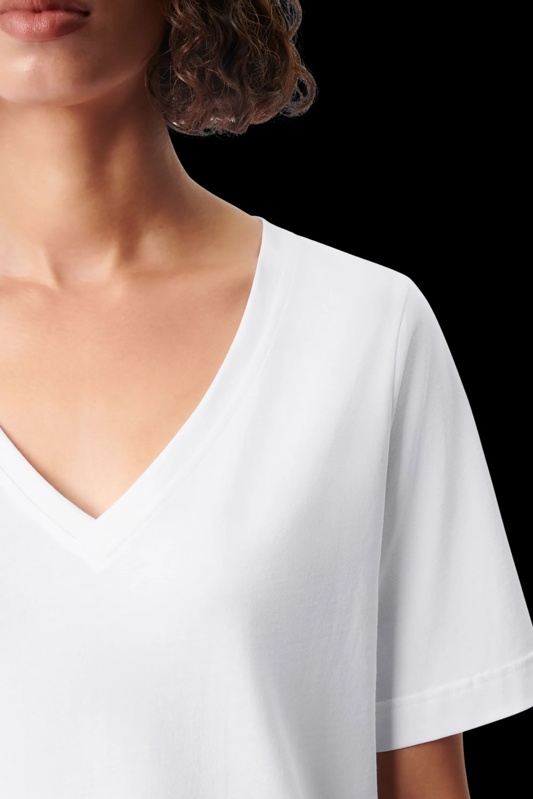 JACINA is een getailleerd T-shirt met een V-hals. De perfecte pasvorm maakt het een echte alledaagse essential en de hoogwaardige, zachte jerseystof van zuiver katoen biedt ultiem comfort en een perfecte pasvorm.