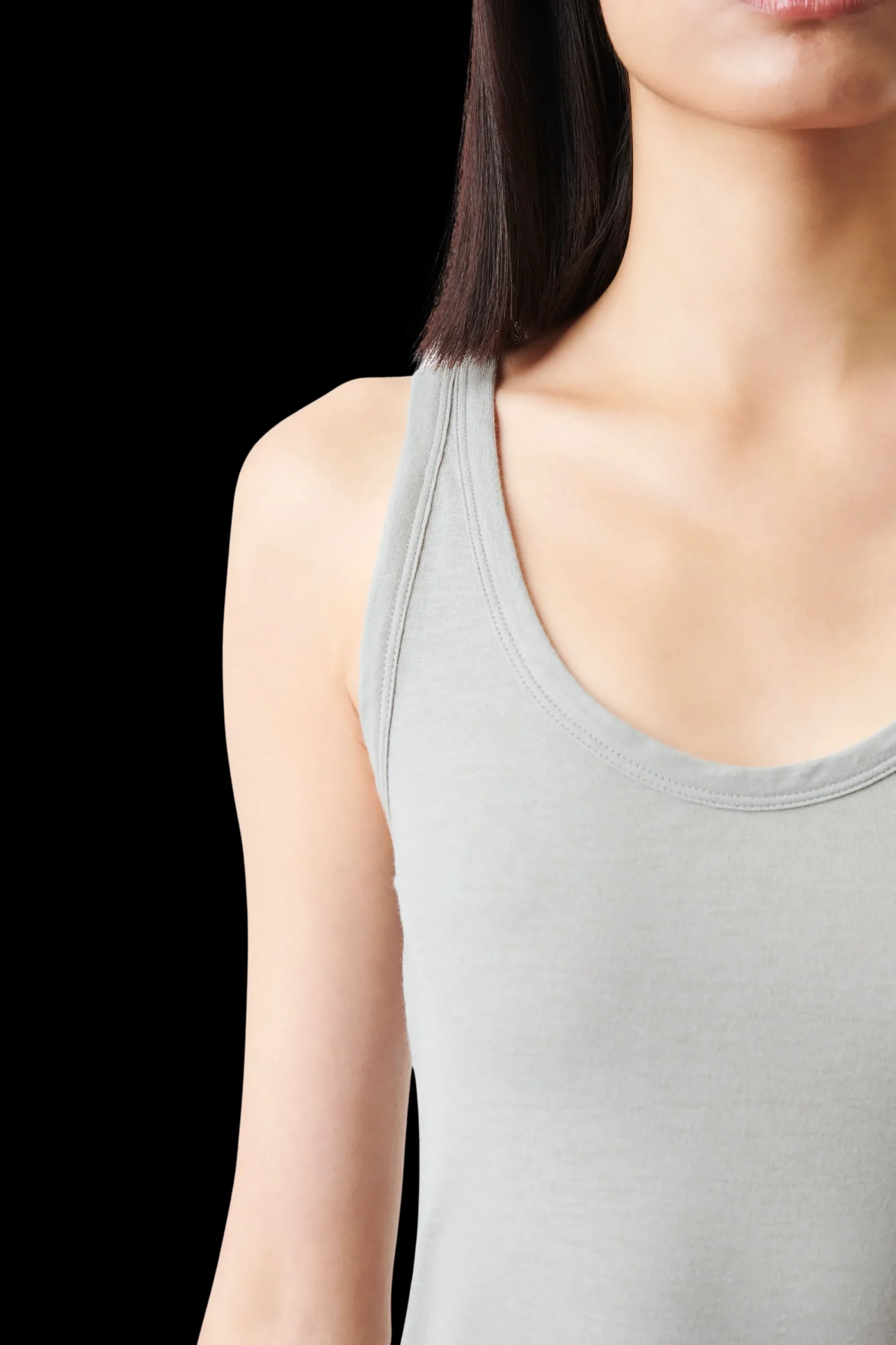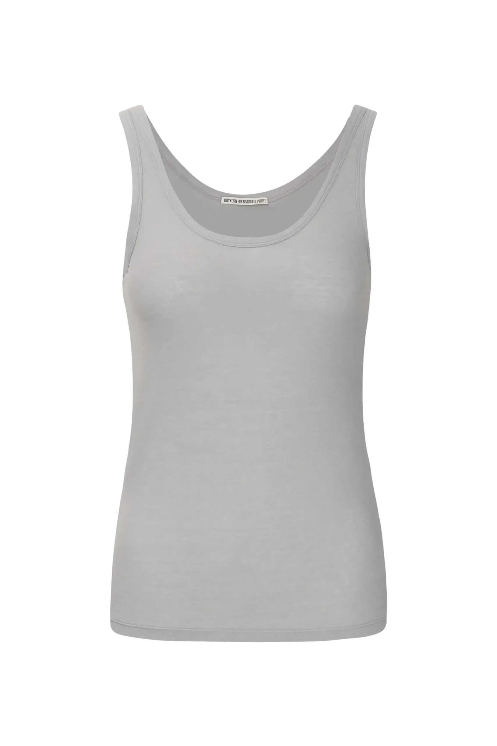 KINIA is een slanke en mouwloze jersey top met een ronde hals. Gemaakt van licht transparante katoenen jersey.