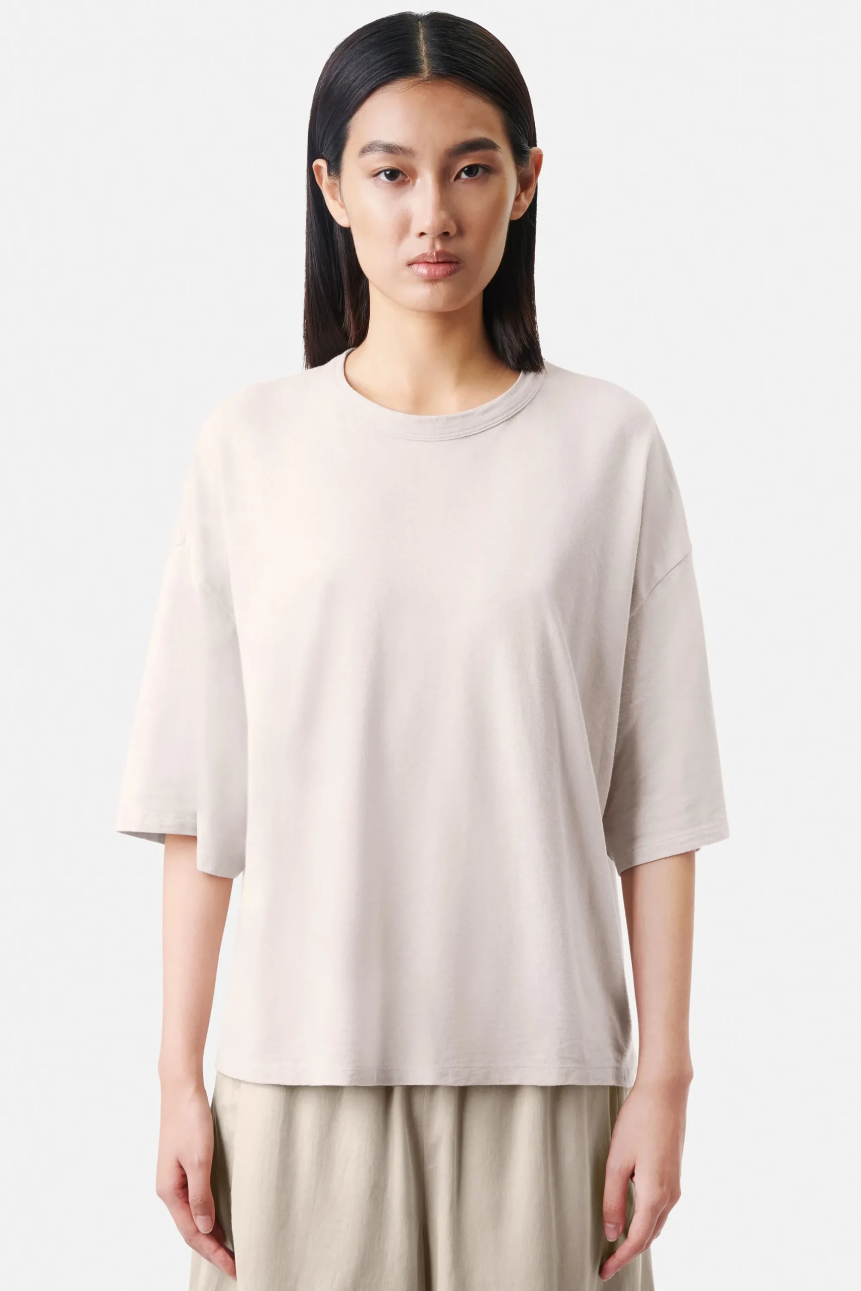 LILANI is een kort, casual shirt met loshangende mouwen. Het silhouet is oversized. Gemaakt van licht transparante katoenen jersey.