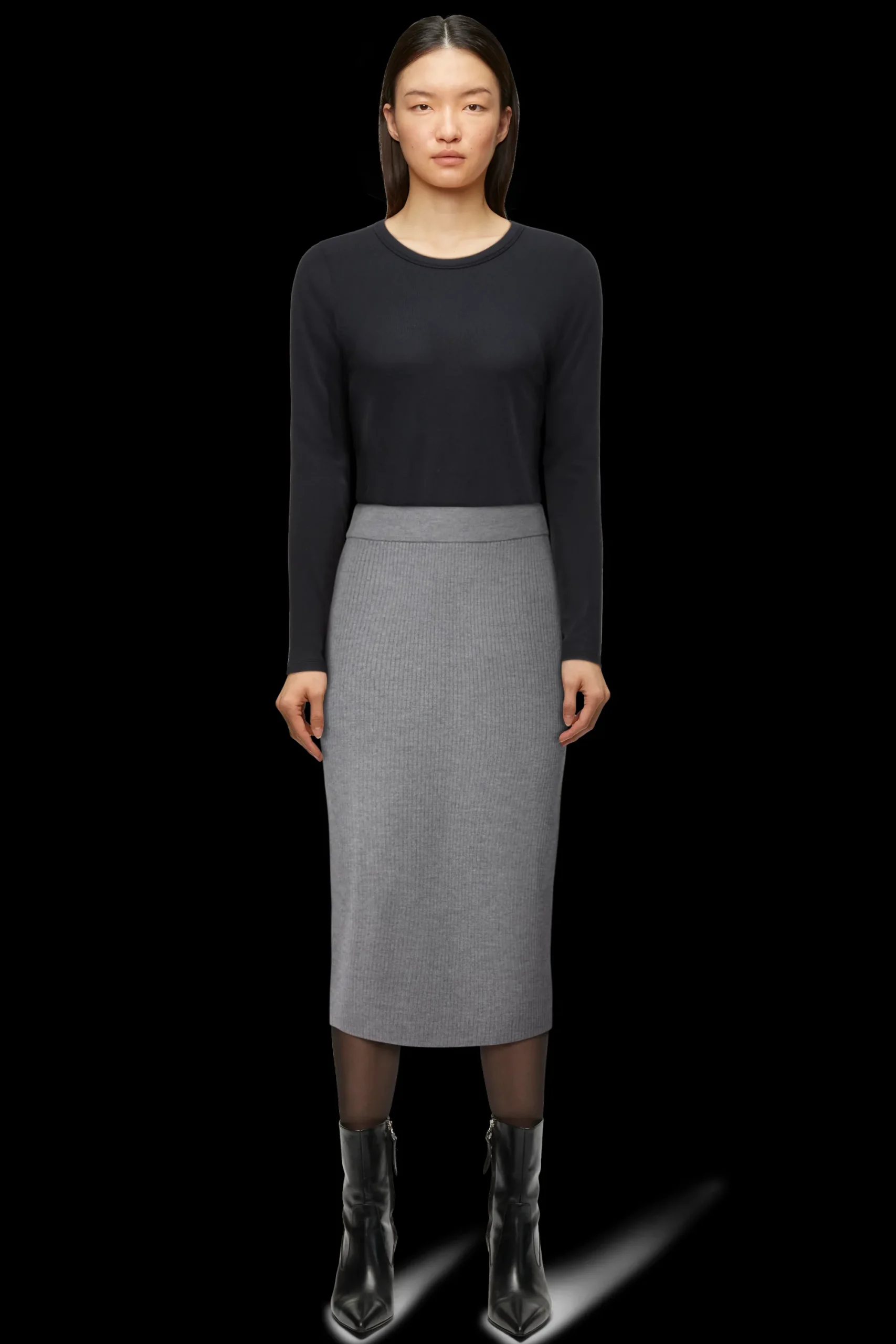 LUDIMI is een gebreide kokerrok met een split in midi lengte. De aansluitende rok wordt halverwege de taille gedragen. Het vrouwelijke silhouet maakt het een echte klassieker en de hoogwaardige en luxe merinowol biedt een tijdloze stijl en de hoogste kwaliteit.