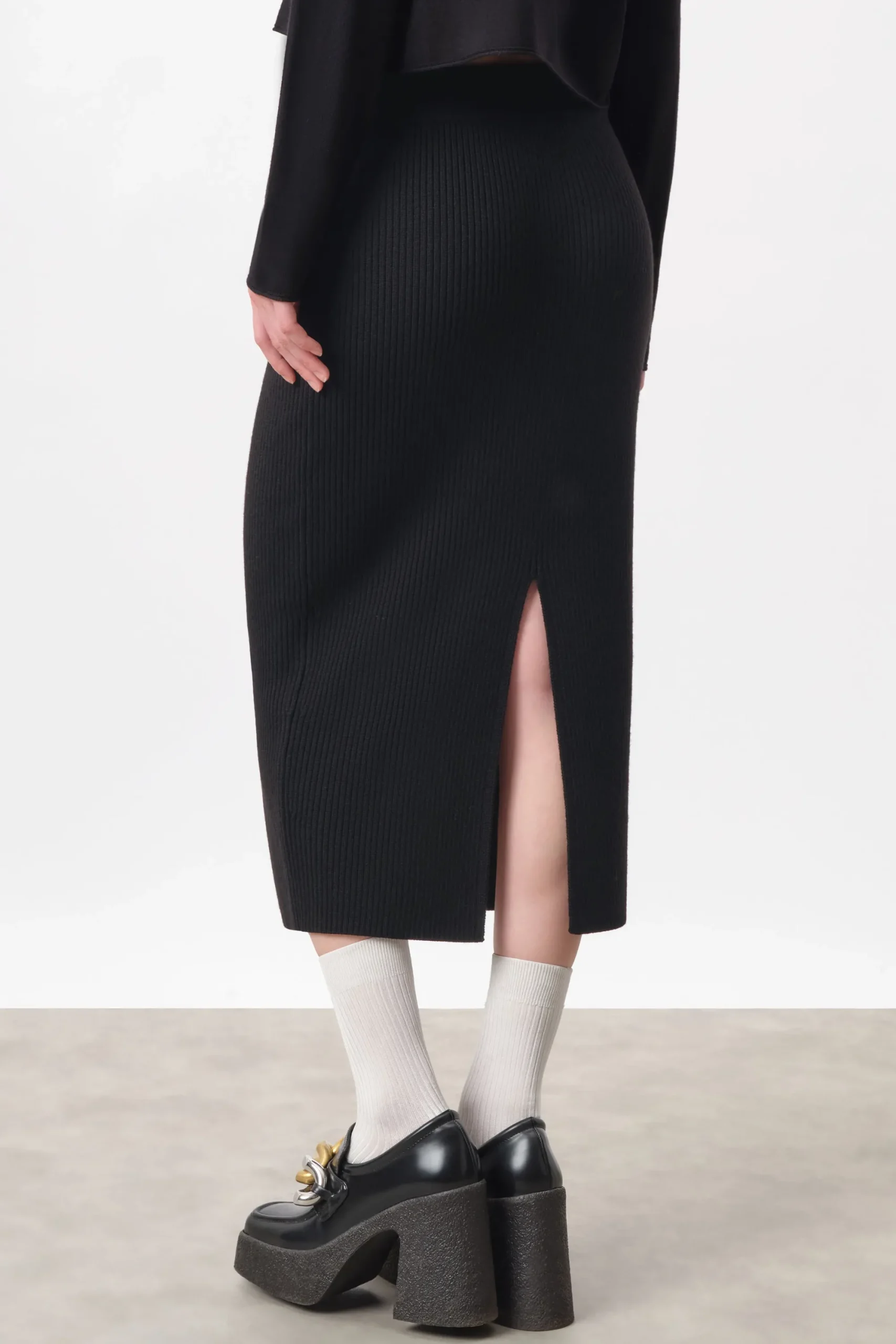 LUDIMI is een gebreide kokerrok met een split in midi lengte. De aansluitende rok wordt halverwege de taille gedragen. Het vrouwelijke silhouet maakt het een echte klassieker, terwijl de hoogwaardige en luxe merinowol een tijdloze stijl en de hoogste kwaliteit biedt.