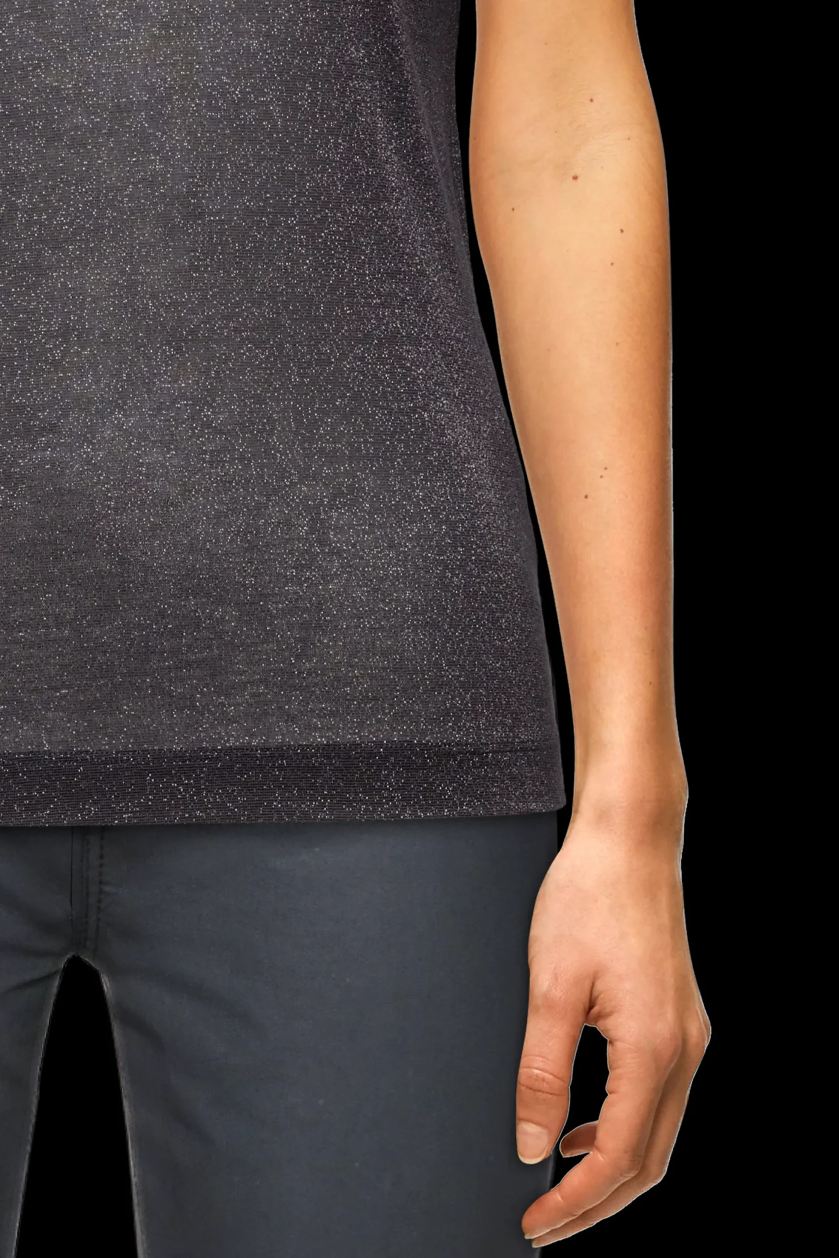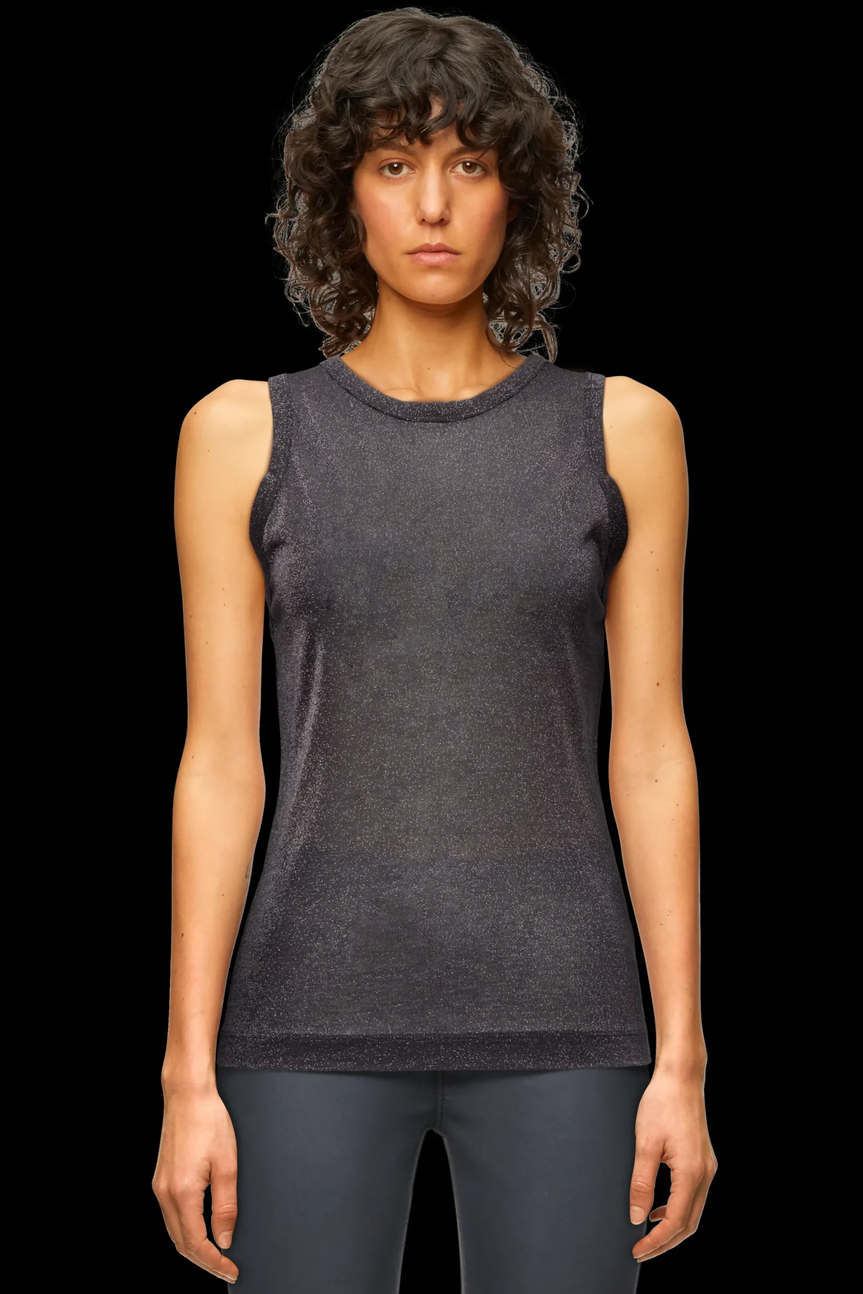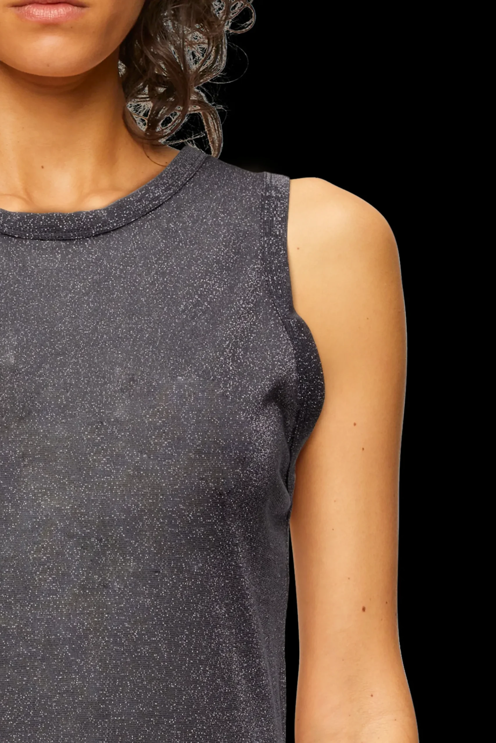 OLINA is een klassieke sportieve tanktop met een fijne geribbelde structuur. De aansluitende pasvorm en het tijdloze ontwerp maken het een perfecte dagelijkse essential. De licht transparante lurex-jersey zorgt voor een moderne en luxueuze uitstraling.