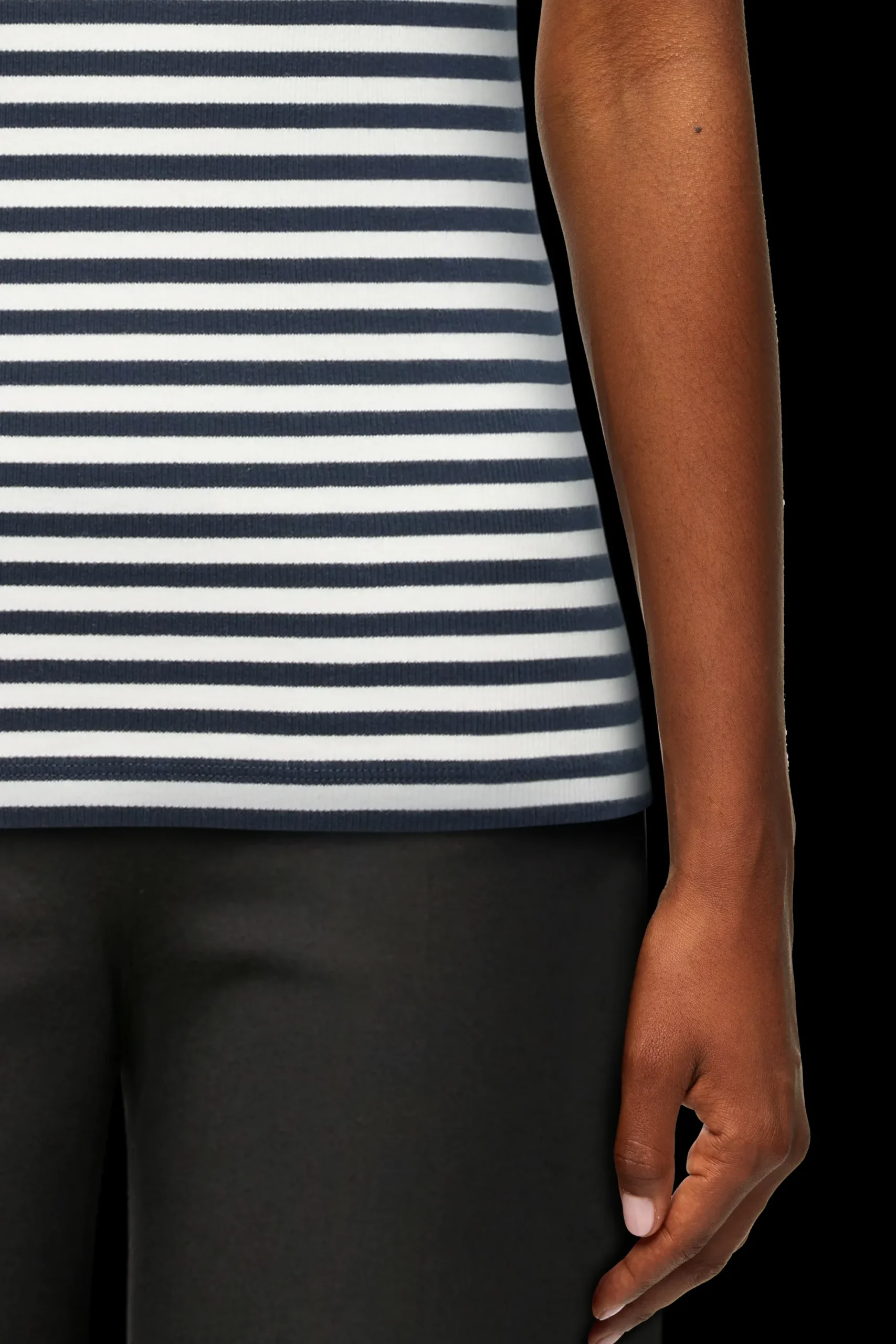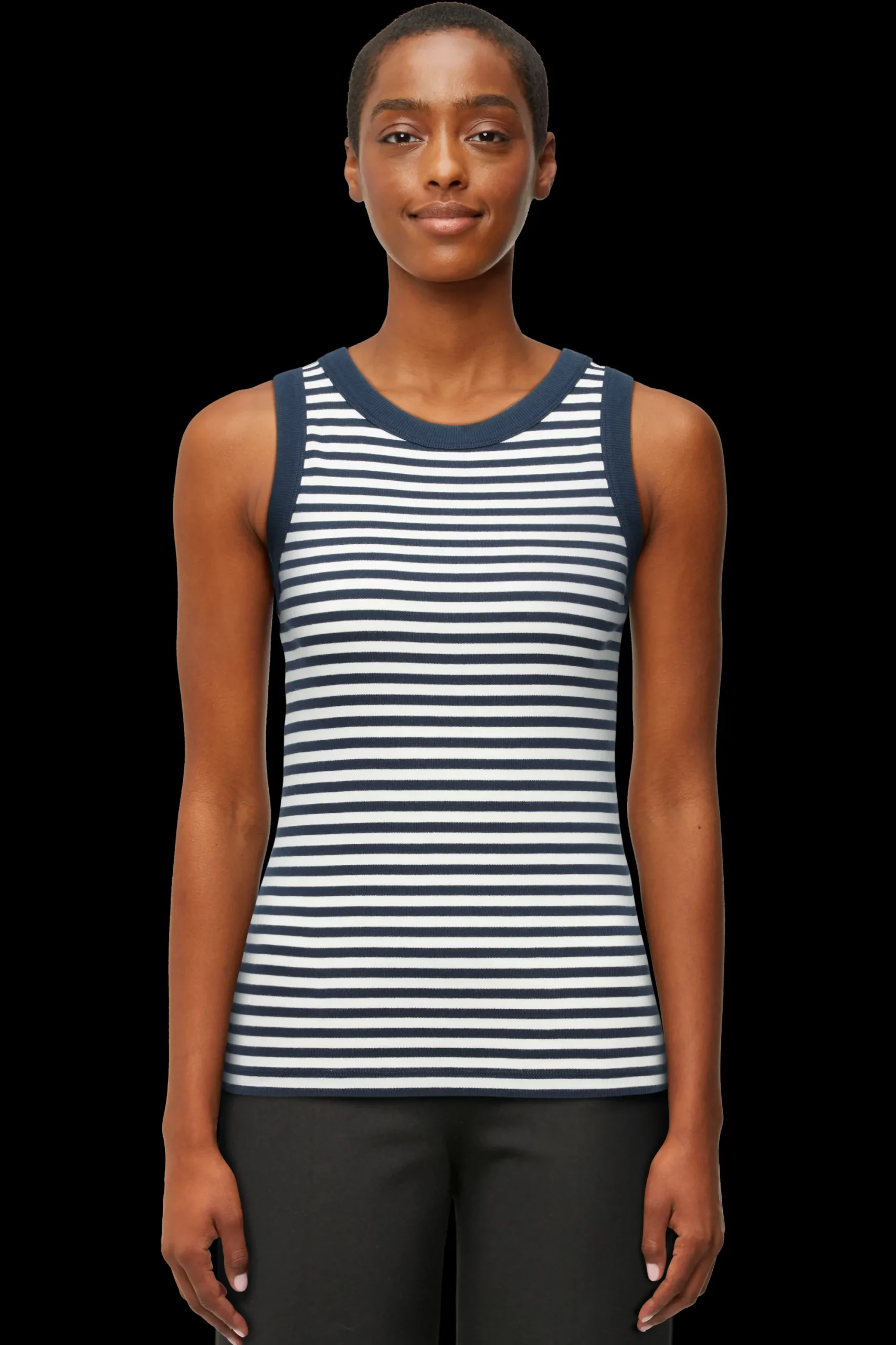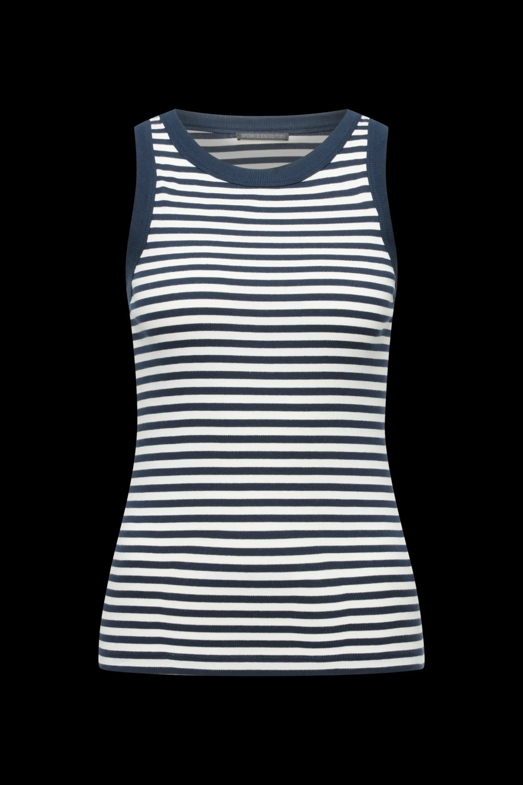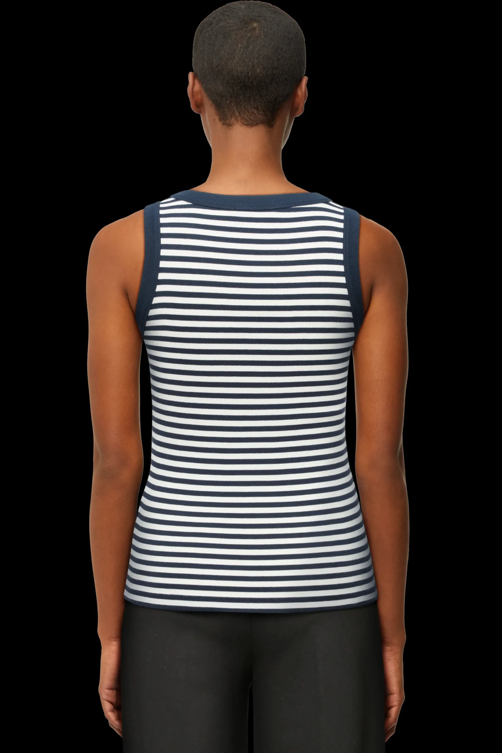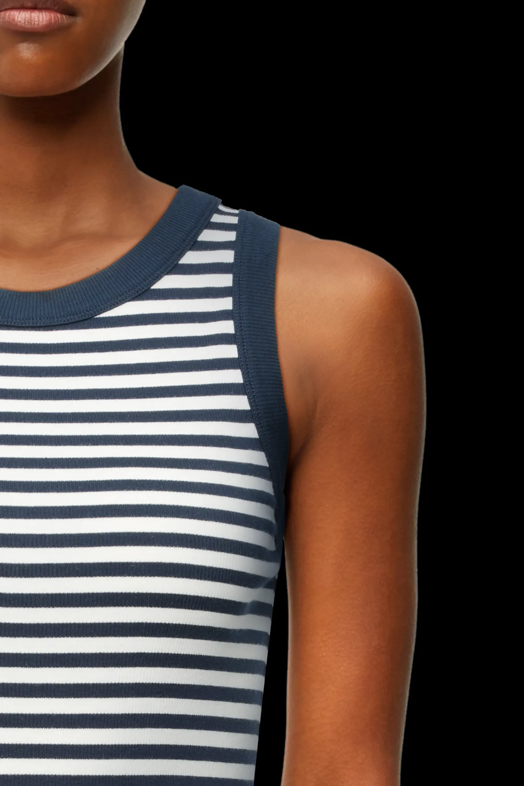 OLINA is een klassieke sportieve tanktop met een fijne geribbelde textuur. De aansluitende pasvorm en het tijdloze ontwerp maken het een perfecte dagelijkse essential. OLINA is gemaakt van gestreepte ribkatoen.
