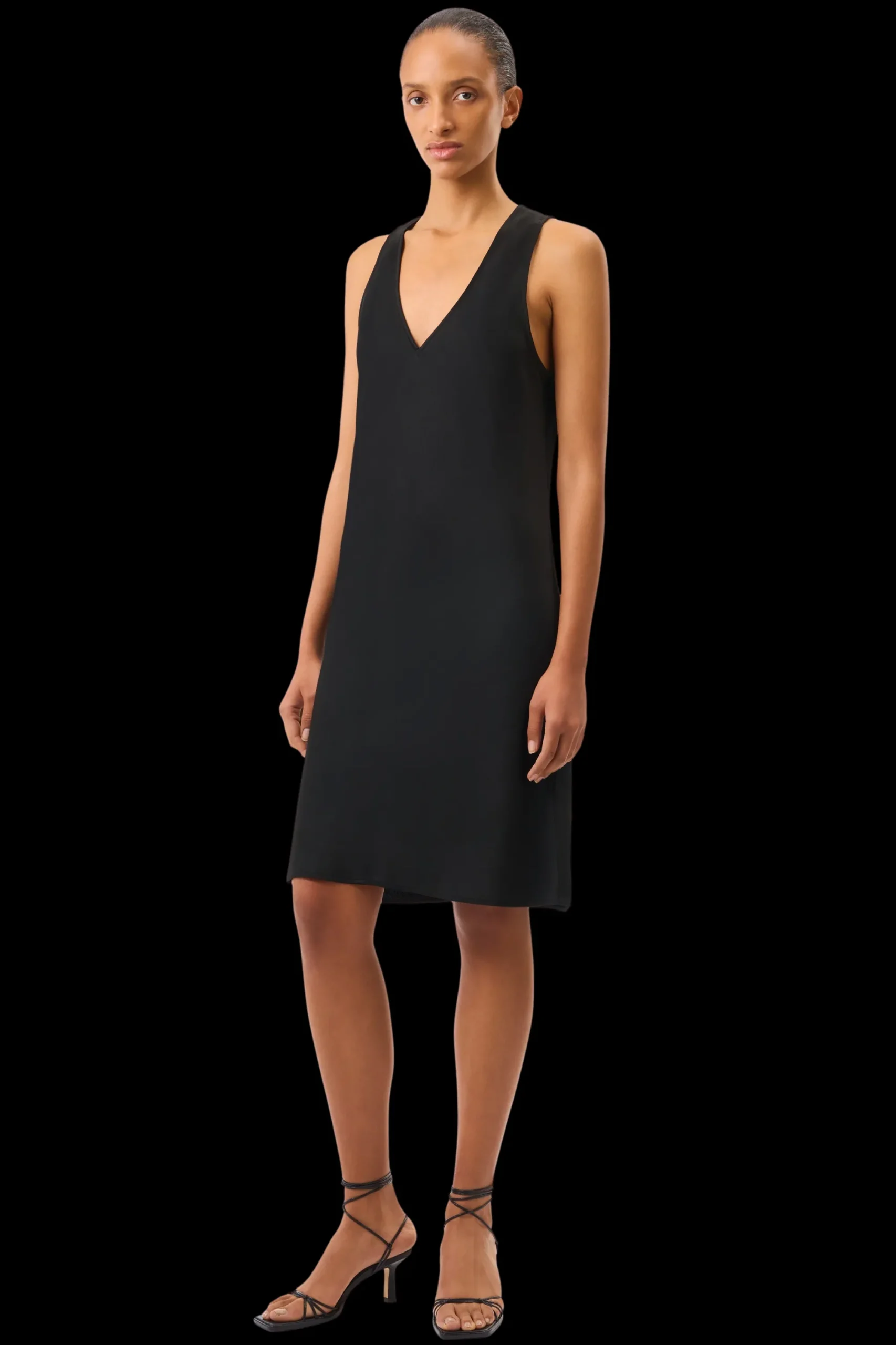 REASY is een mini-slipjurk met een V-hals voor en achter, gemaakt van vloeiend satijn van hoge kwaliteit.