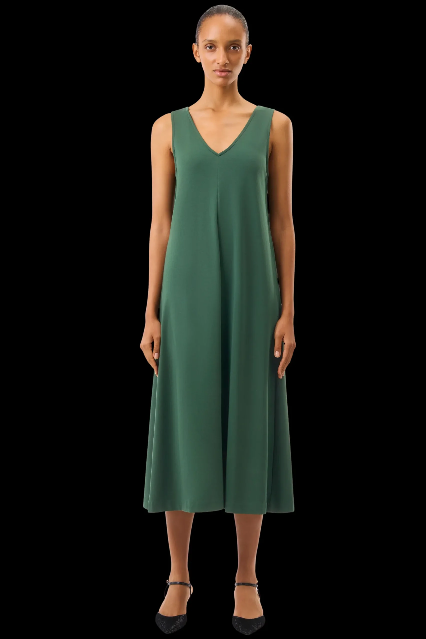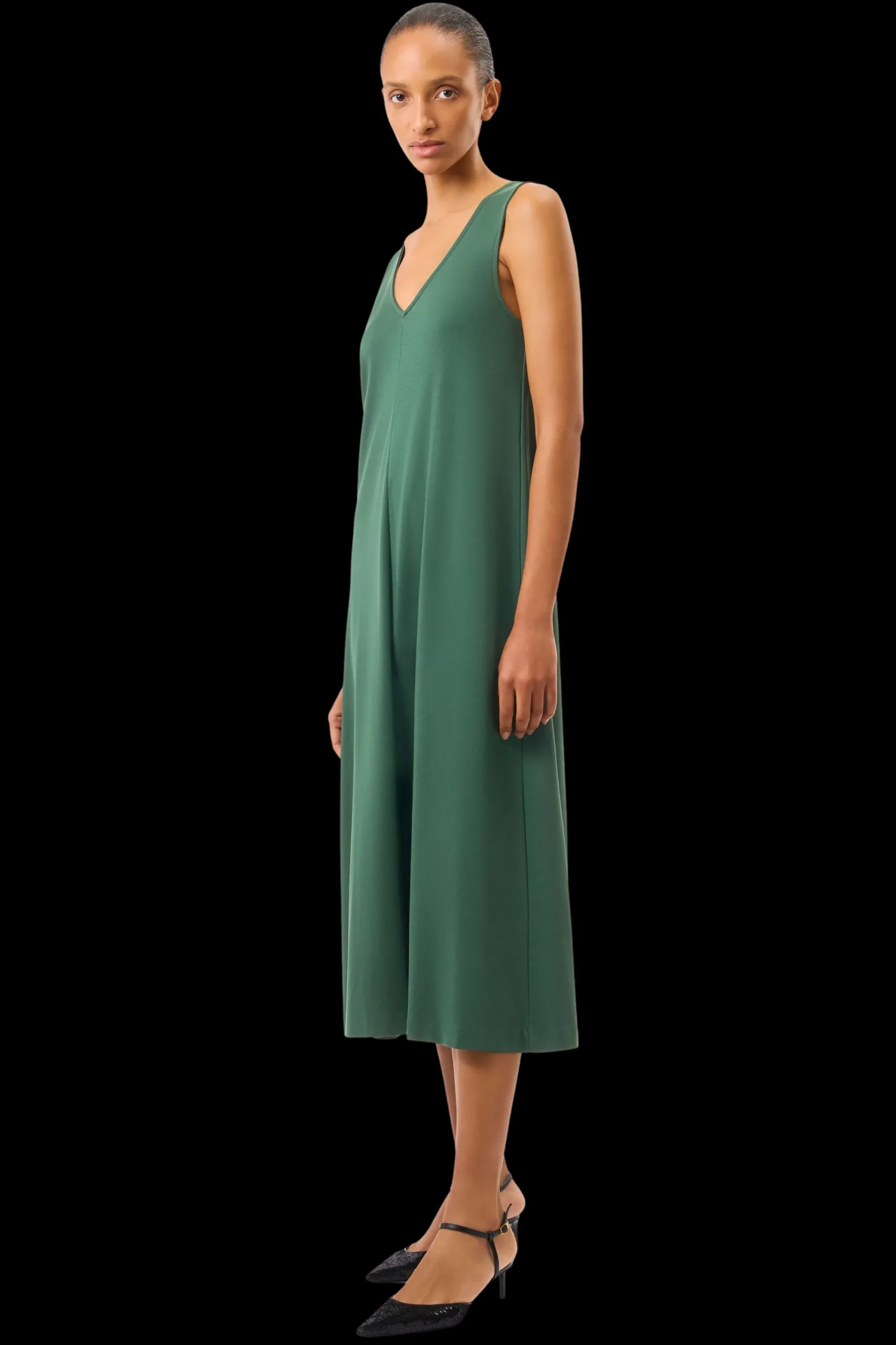 RESIMA is een mouwloze jersey jurk met een V-hals. De casual pasvorm geeft de jurk een modern silhouet. De hoogwaardige, zachte lyocellmix biedt een cleane look en is comfortabel om te dragen.