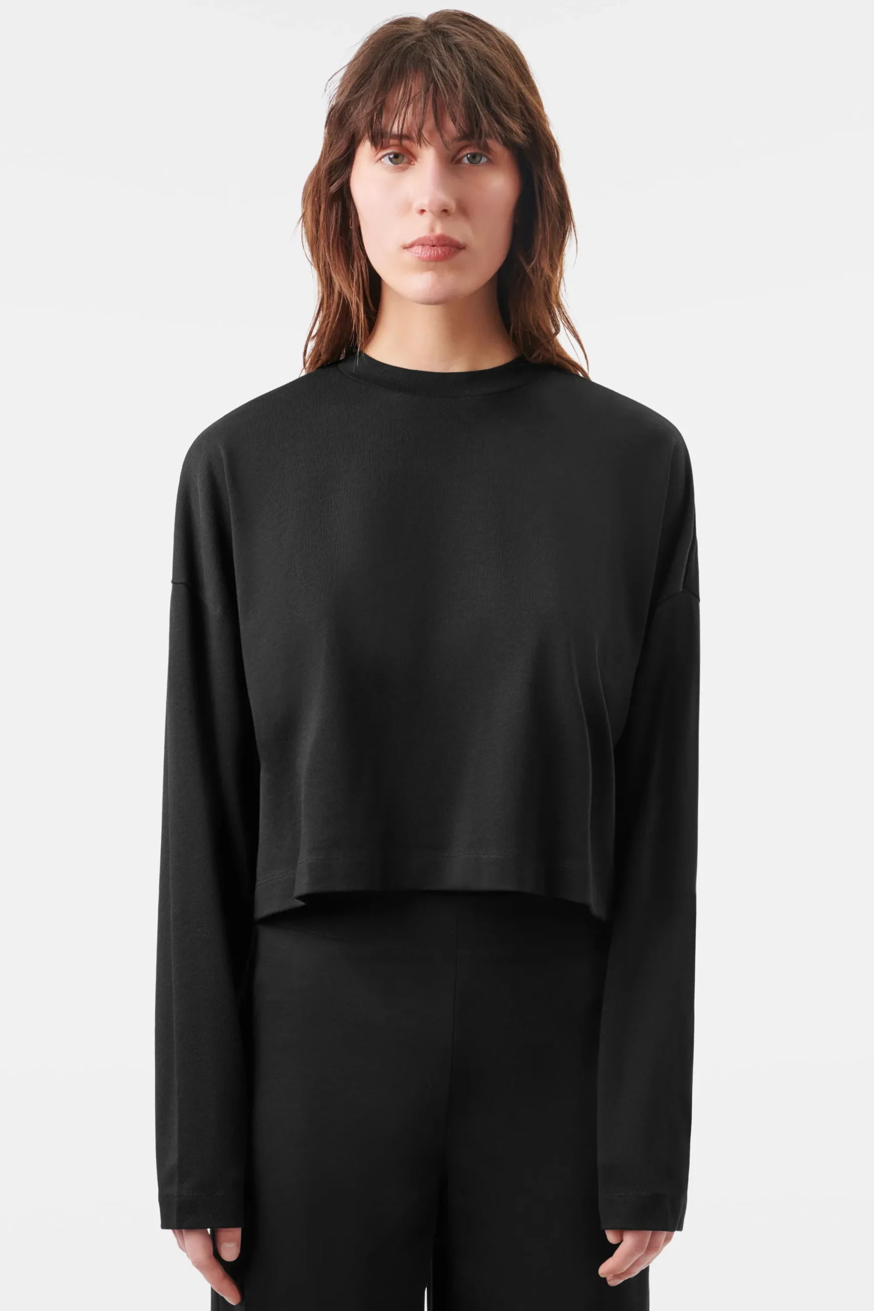 ROLIN is een casual top met lange mouwen in een relaxte pasvorm. Het heeft een cropped fit en dropped shoulders. Gemaakt van een zuivere lyocell/katoenmix.