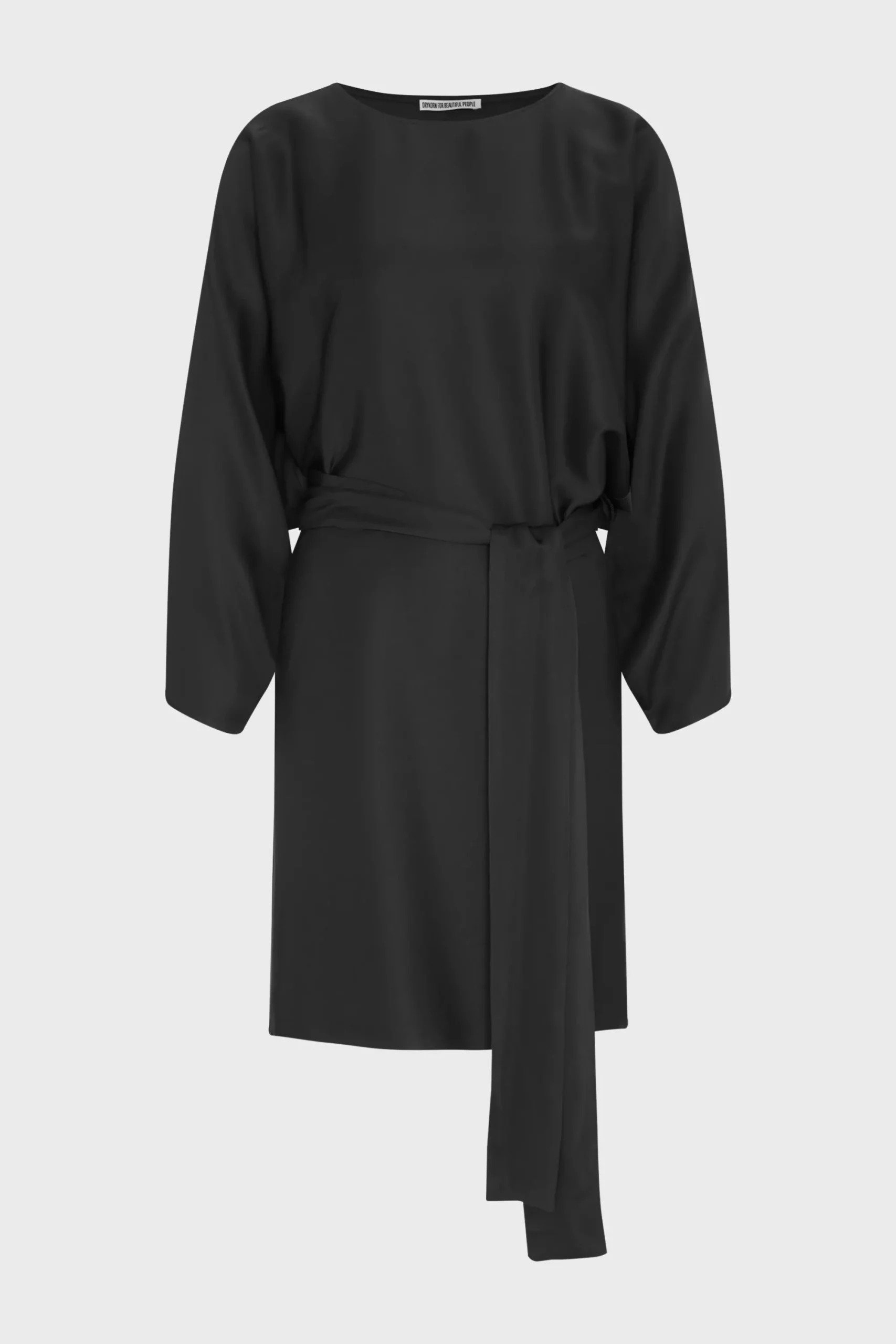 RURIKA is een modieuze mini jurk met vleermuismouwen en een strikceintuur. Deze jurk combineert op elegante wijze comfort en stijl. De vleermuismouwen zorgen voor een losse pasvorm en de strikceintuur creëert een vrouwelijk silhouet. Gemaakt van delicaat satijn.