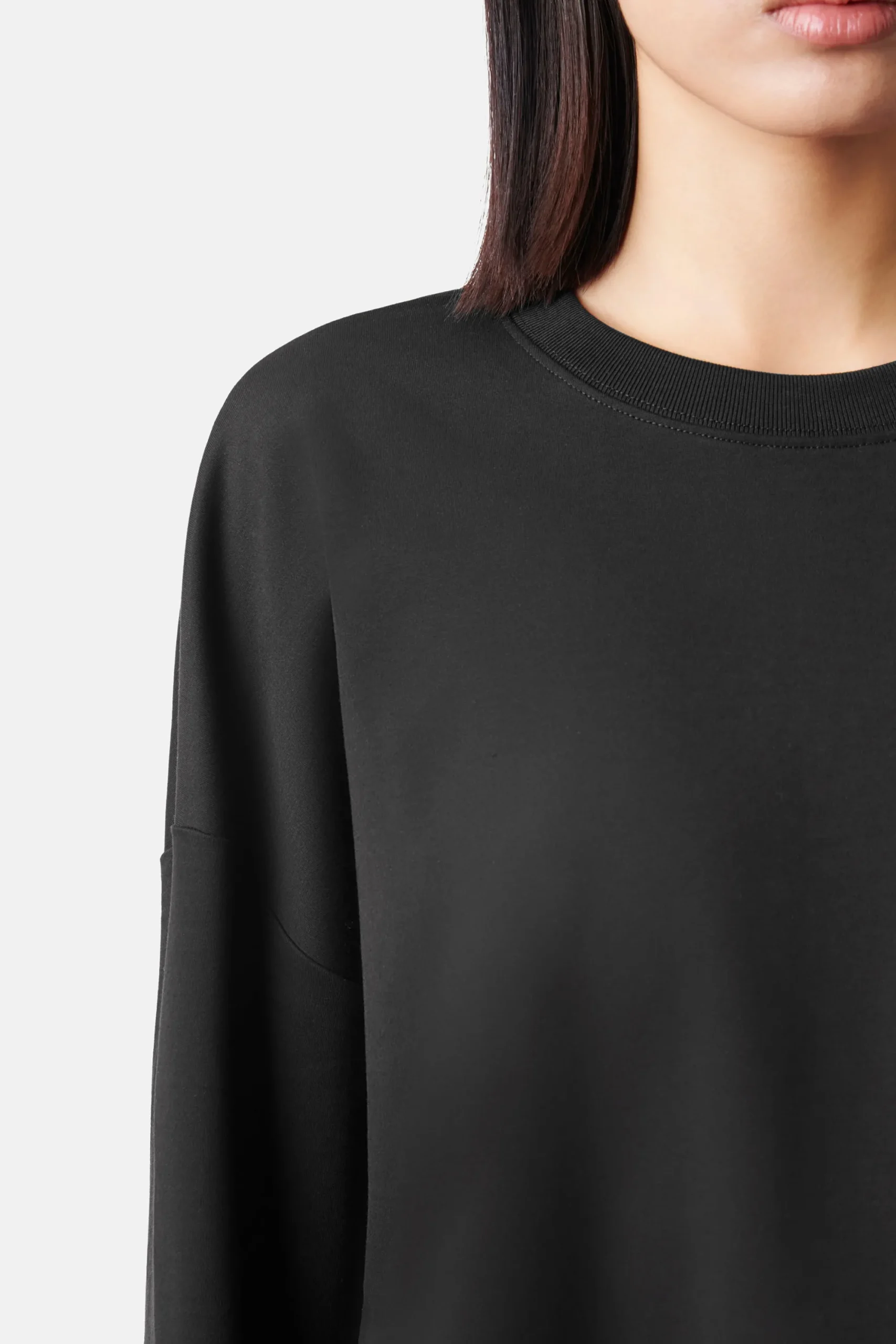VASSANI is een vrouwelijk en licht getailleerd sweatshirt met een ronde hals. De zachte interlockjersey is gemaakt van biologisch katoen.