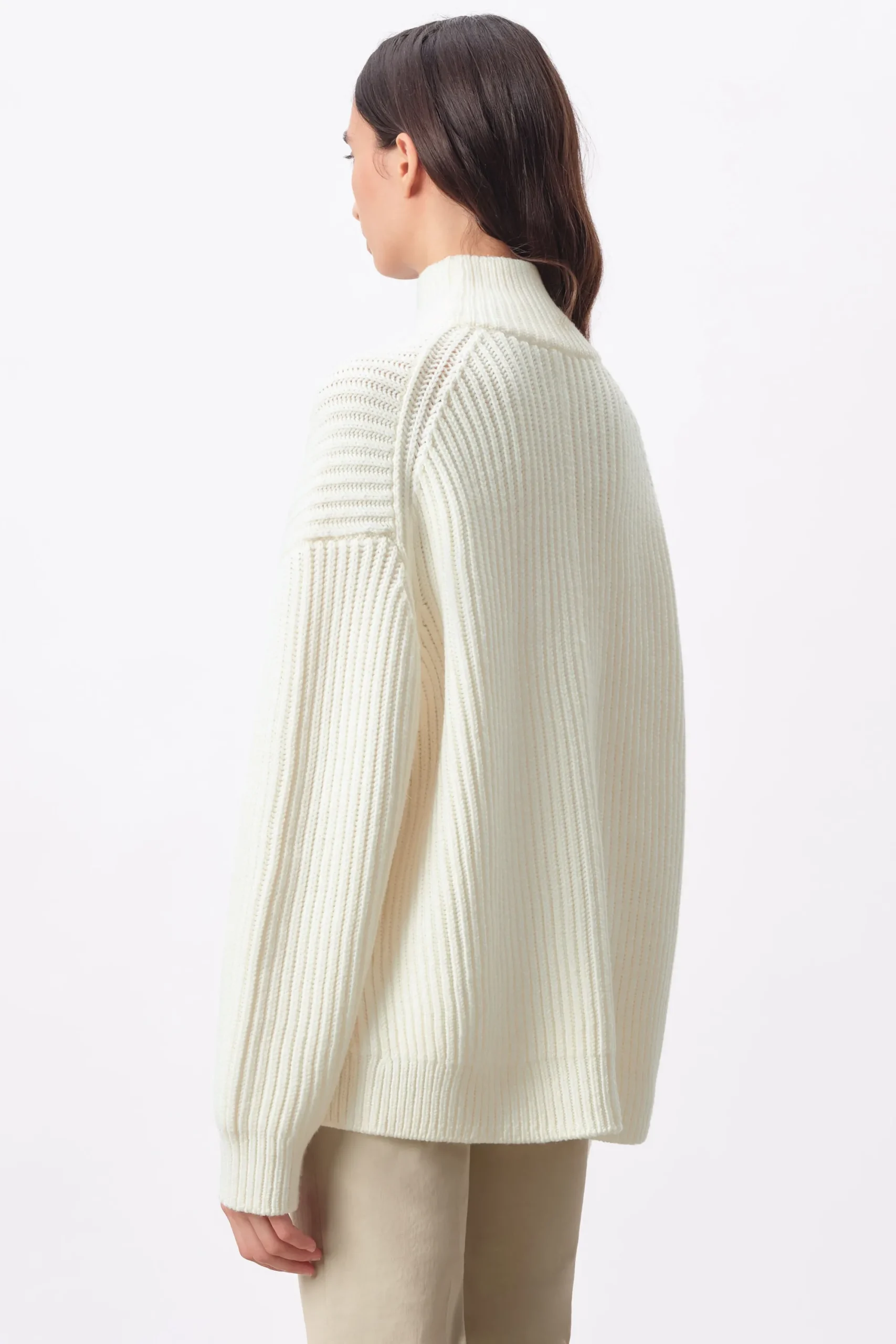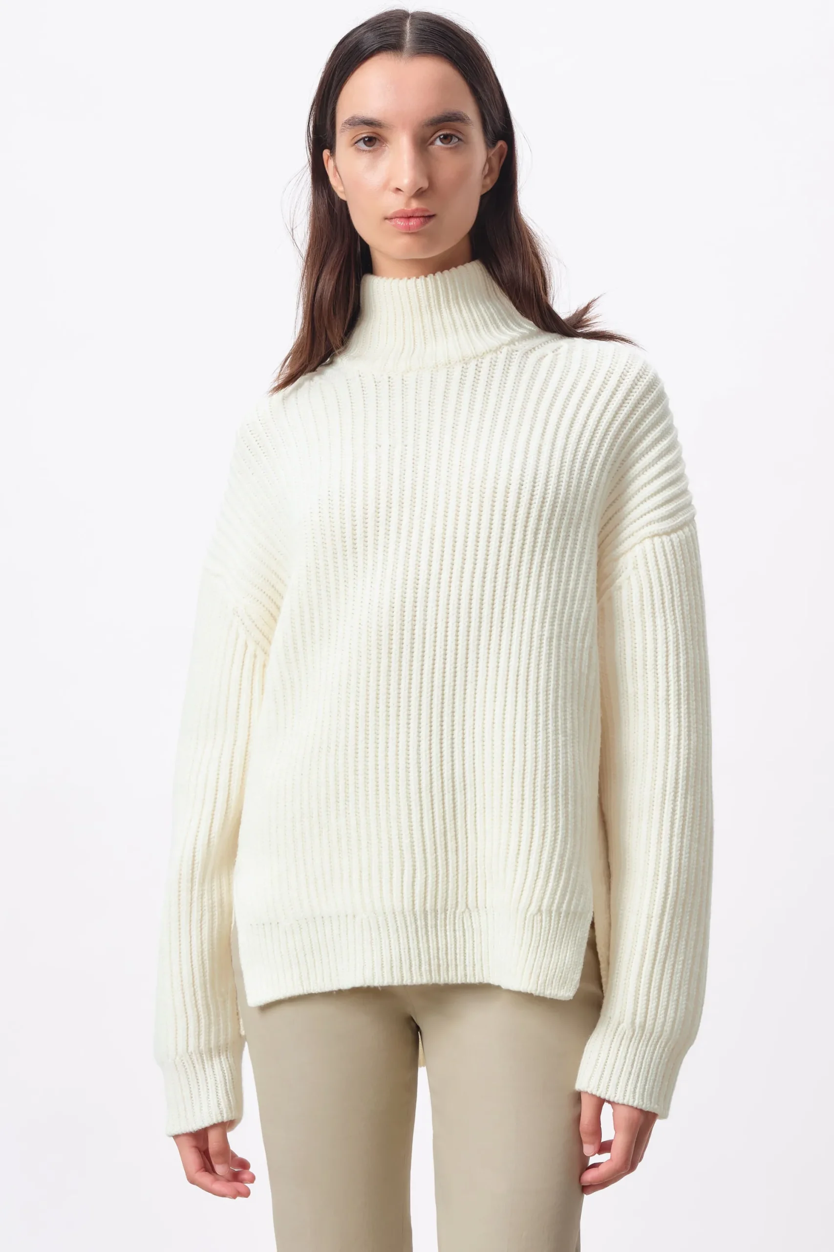 VIORIKA is een modieuze coltrui met zijsplitten. Deze trui combineert comfort en stijl op een elegante manier. Hij is veelzijdig en een must-have voor je herfst- en wintergarderobe. VIORIKA is gemaakt van grove scheerwol.