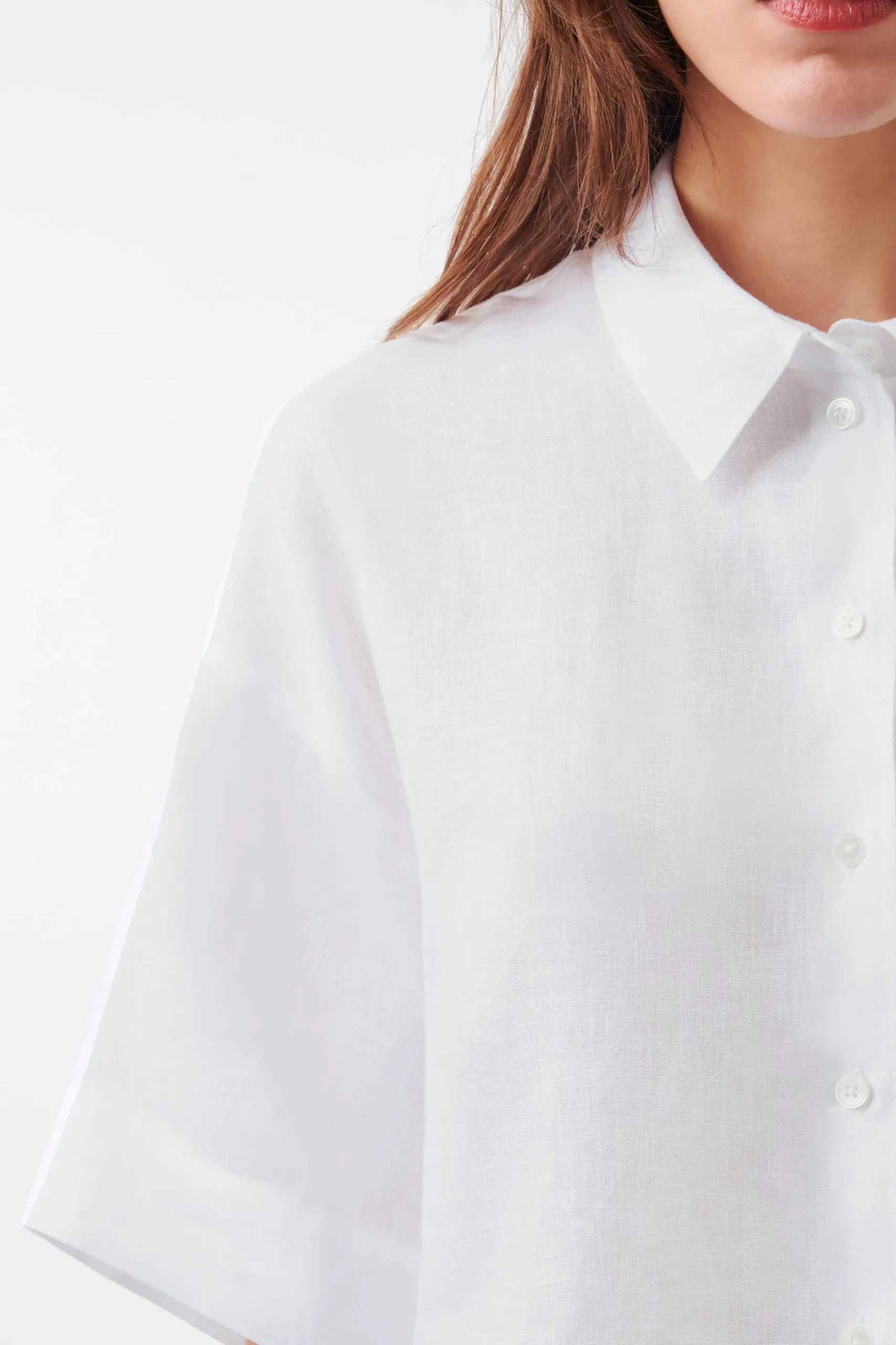 YARIKA is een boxy overhemdblouse in een oversized pasvorm. Hij heeft 3/4 mouwen, een knoopsluiting en splitjes in de zijnaad als detail. YARIKA is gemaakt van zomers linnen.