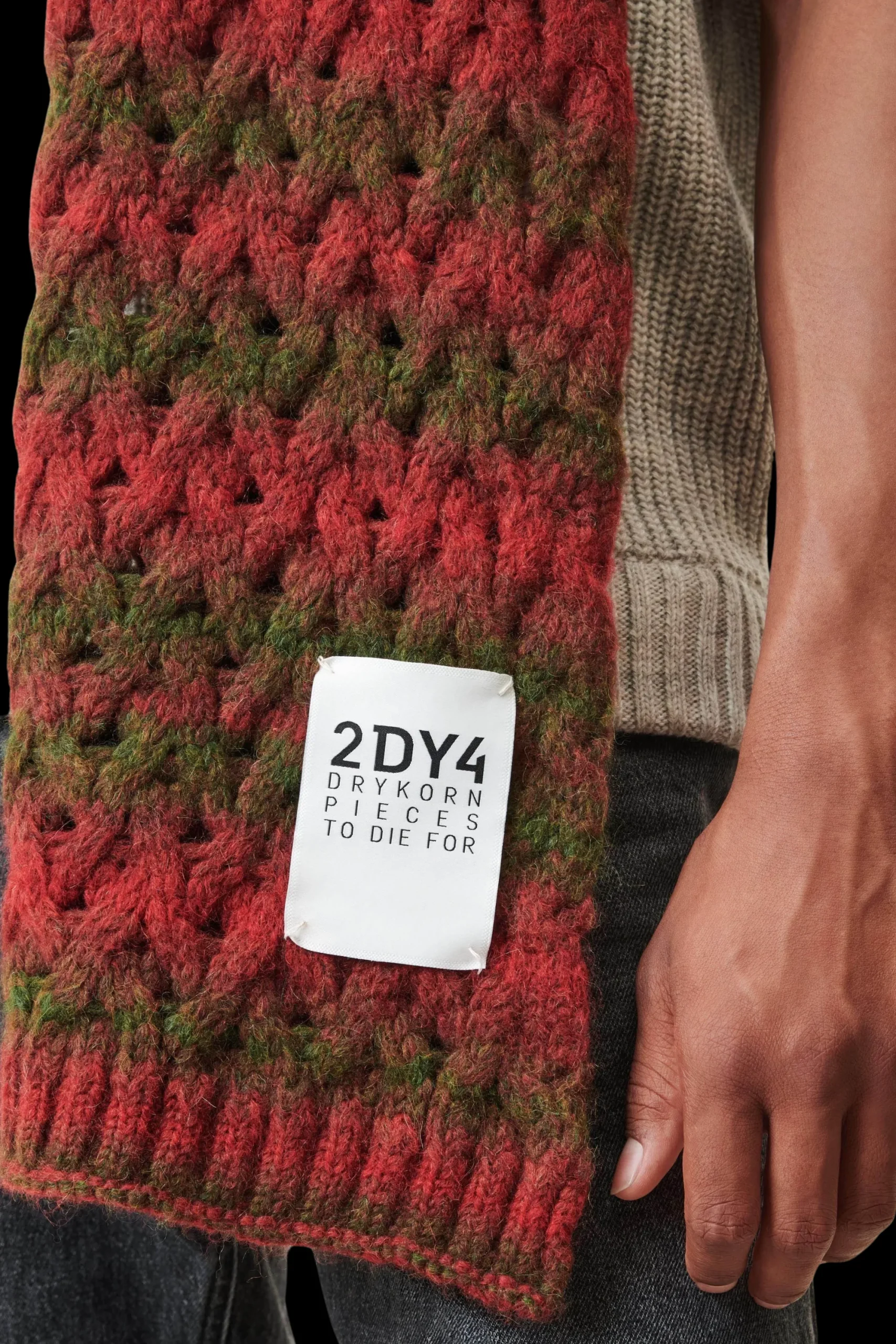 De klassieke gebreide sjaal CRONICA wordt geleverd met een DRYKORN logo. Afmetingen 220 x 60 cm.CRONICA is gemaakt van hoogwaardige alpacamix.