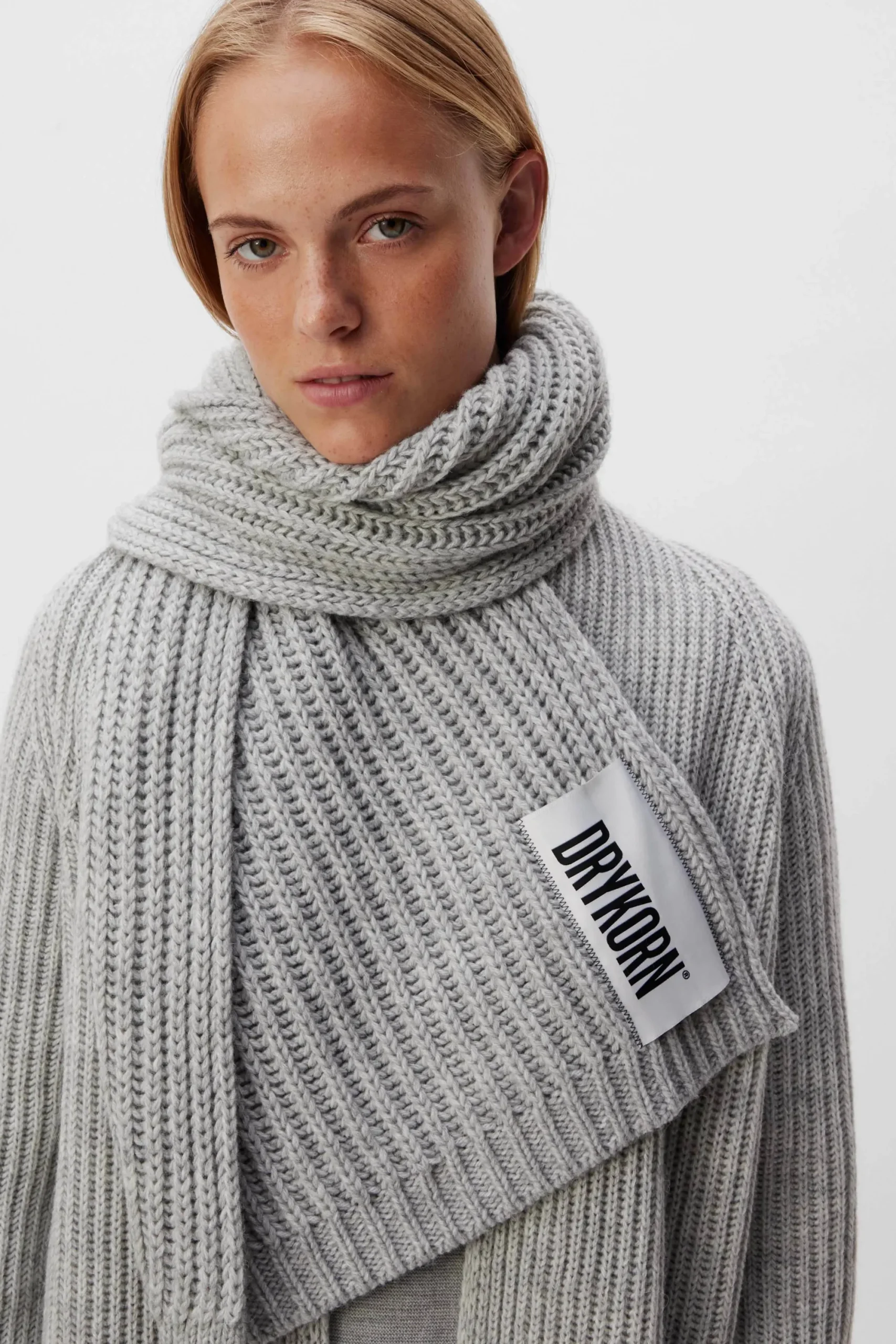 Sjaal gebreid van zacht wol-alpacamengaren. Afmetingen ongeveer: 220 x 60 cm.