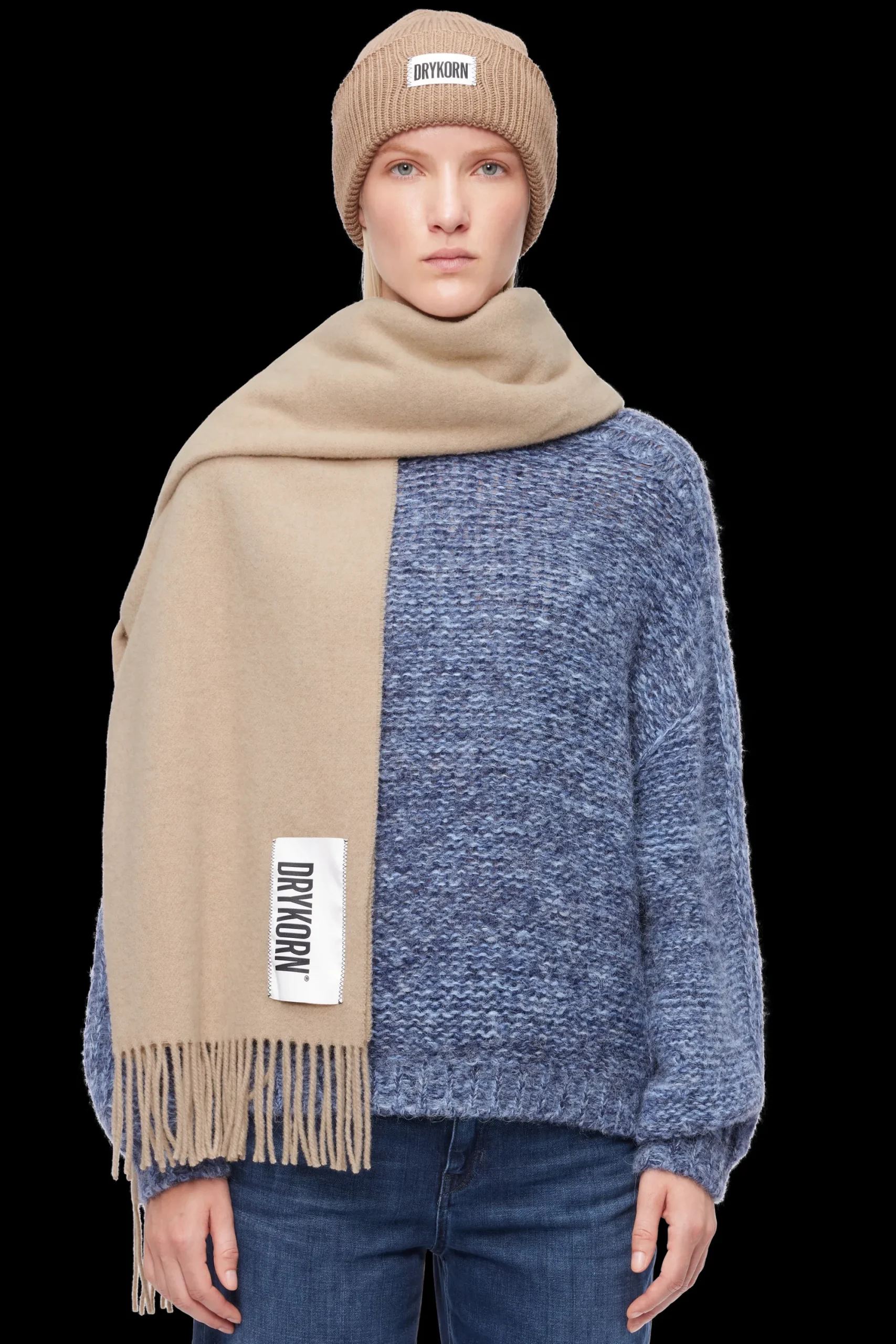 De klassieke wollen sjaal GAZE_2 is voorzien van ons DRKORN logo en franjes. Afmetingen: 220 x 60 cm. GAZE_2 is gemaakt van extra zacht wollen fleece, waardoor het de perfecte metgezel is voor koude dagen.